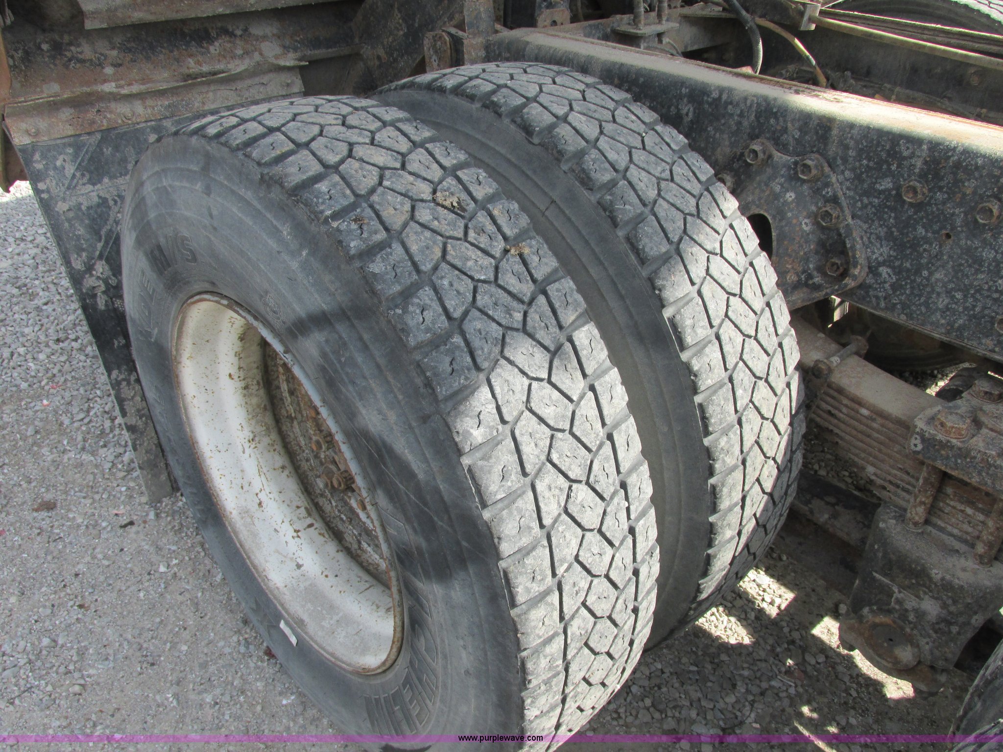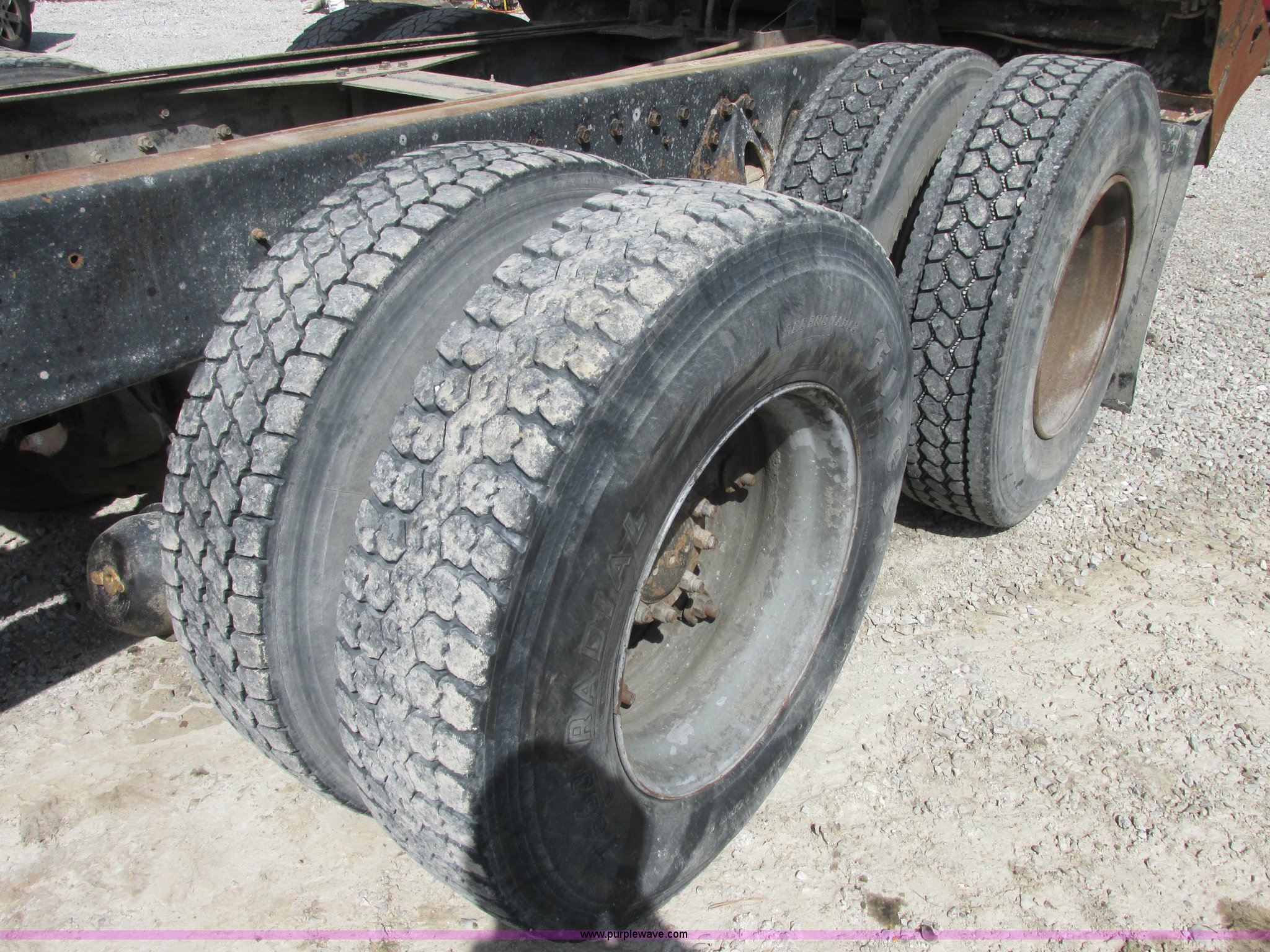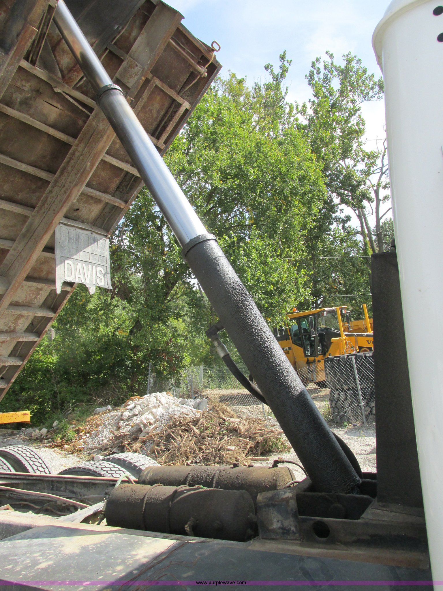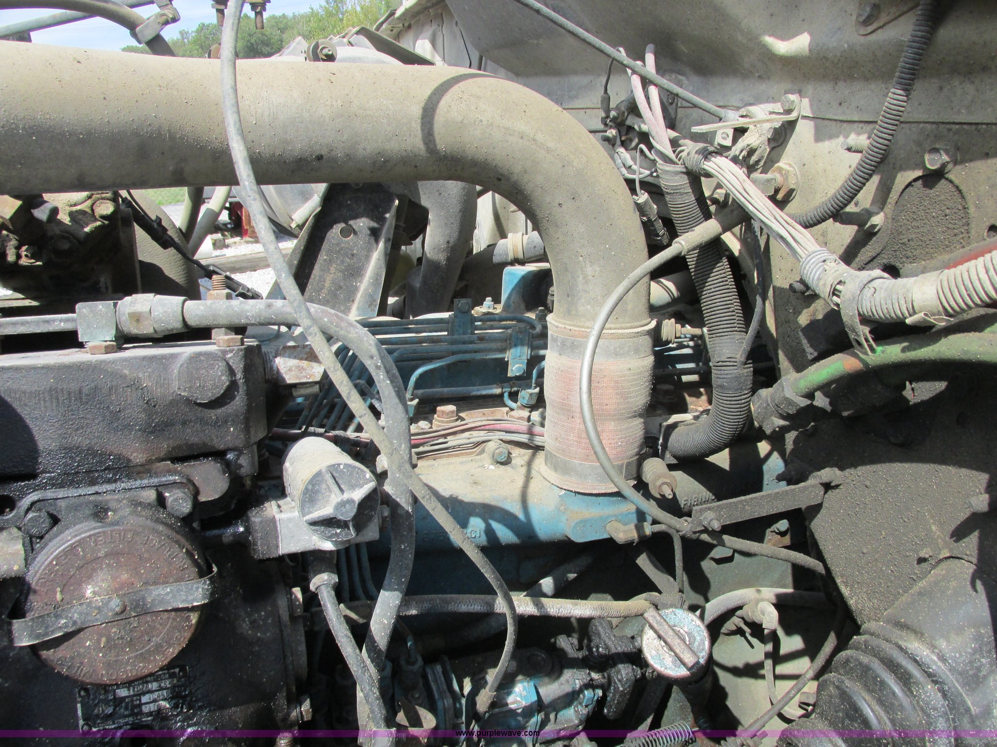 Purple Wave is selling a used Construction Dump Truck in Missouri. This item is a 1990 International 4900 dump truck with the following: 293,620 miles on odometer, International DT466 7.6L L6 diesel engine, 13 speed manual transmission, Heat, Exterior visor, Block heater, Pintle hitch, Air end gate, Manual rollover tarp, Three stage single ram, WeatherGuard 48" under body toolbox, Does not latch correctly, Dual 45 gallon fuel tanks, PTO, Spring over walking beam suspension, Air brakes, Double framed, 192" wheelbase, 385/65R22.5 front tires, 11R22.5 rear tires, GVWR 54,000 lbs, Cosmetic damage, Bed rust, Bed needs repainted