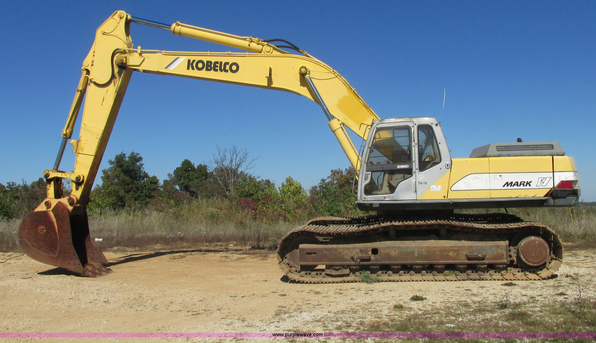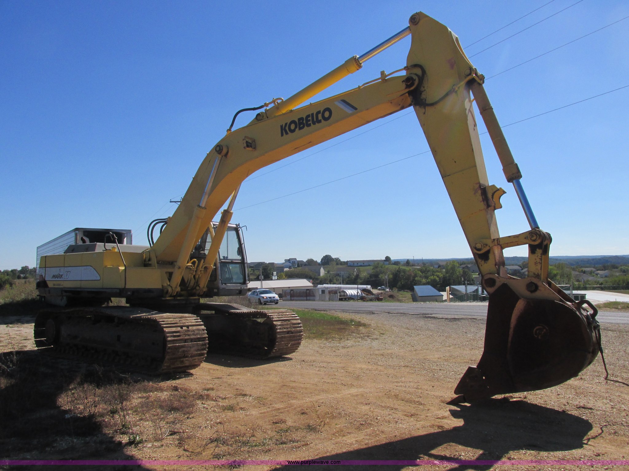 1995 Kobelco SK400LC Mark IV excavator. Mitsubishi diesel engine, Hydrostatic transmission, EROPS, AC and heat Unknown AC operating condition, Joystick controls, 11' stick, Exterior mirror bracket No mirror, Work lights, Plumbed for breaker, (7) bottom rollers, 36" bucket Side cutting edge, Twist on teeth, Chain loop, Built-in lube system Reel gun, Storage, 35.5" triple grouser track pads, 101,684 lbs. base operating weight, Recently replaced batteries, Leaks, Interior/exterior cosmetic damage, Serial YSJ-00003. Villa Ridge, MO 63089