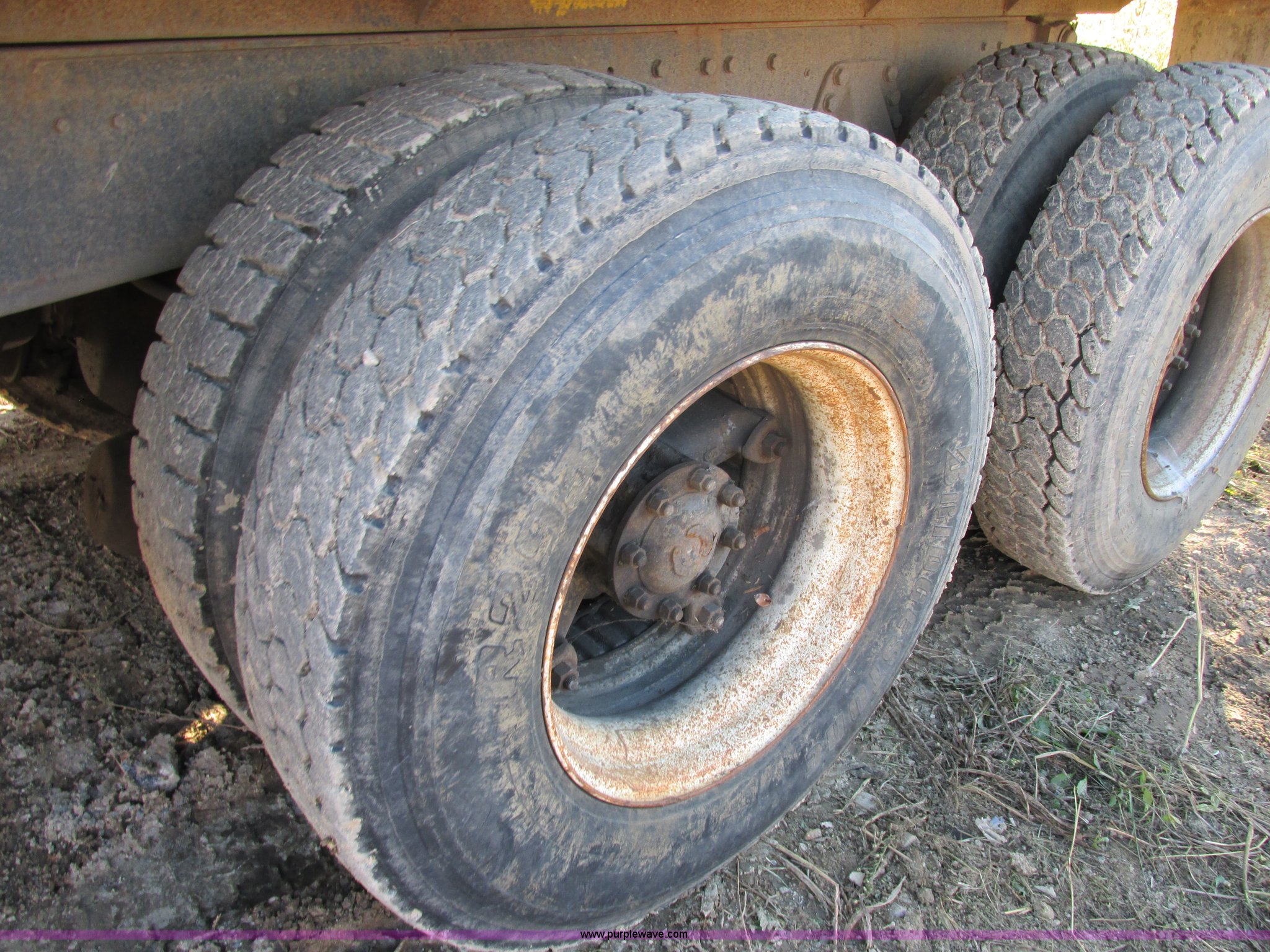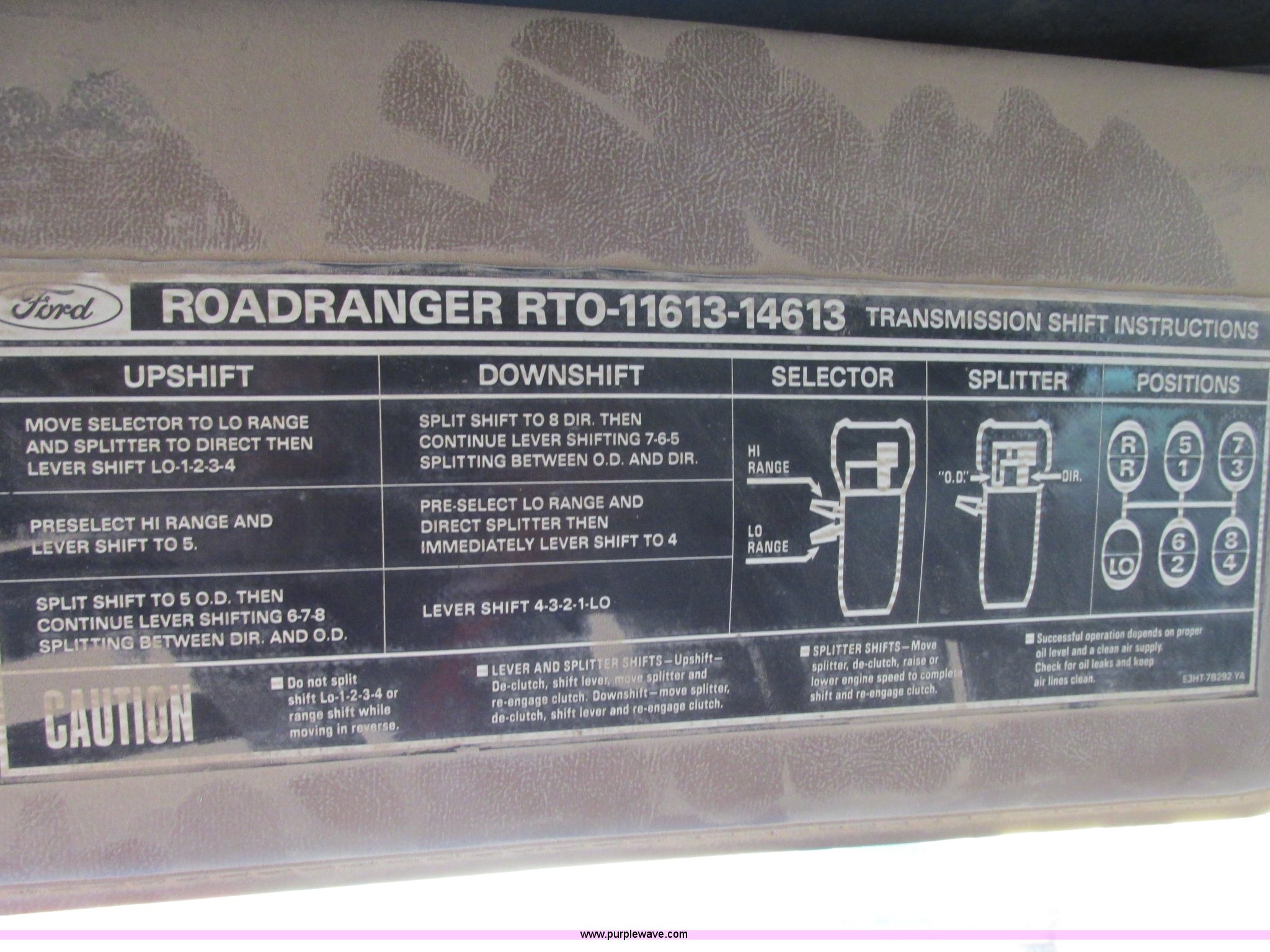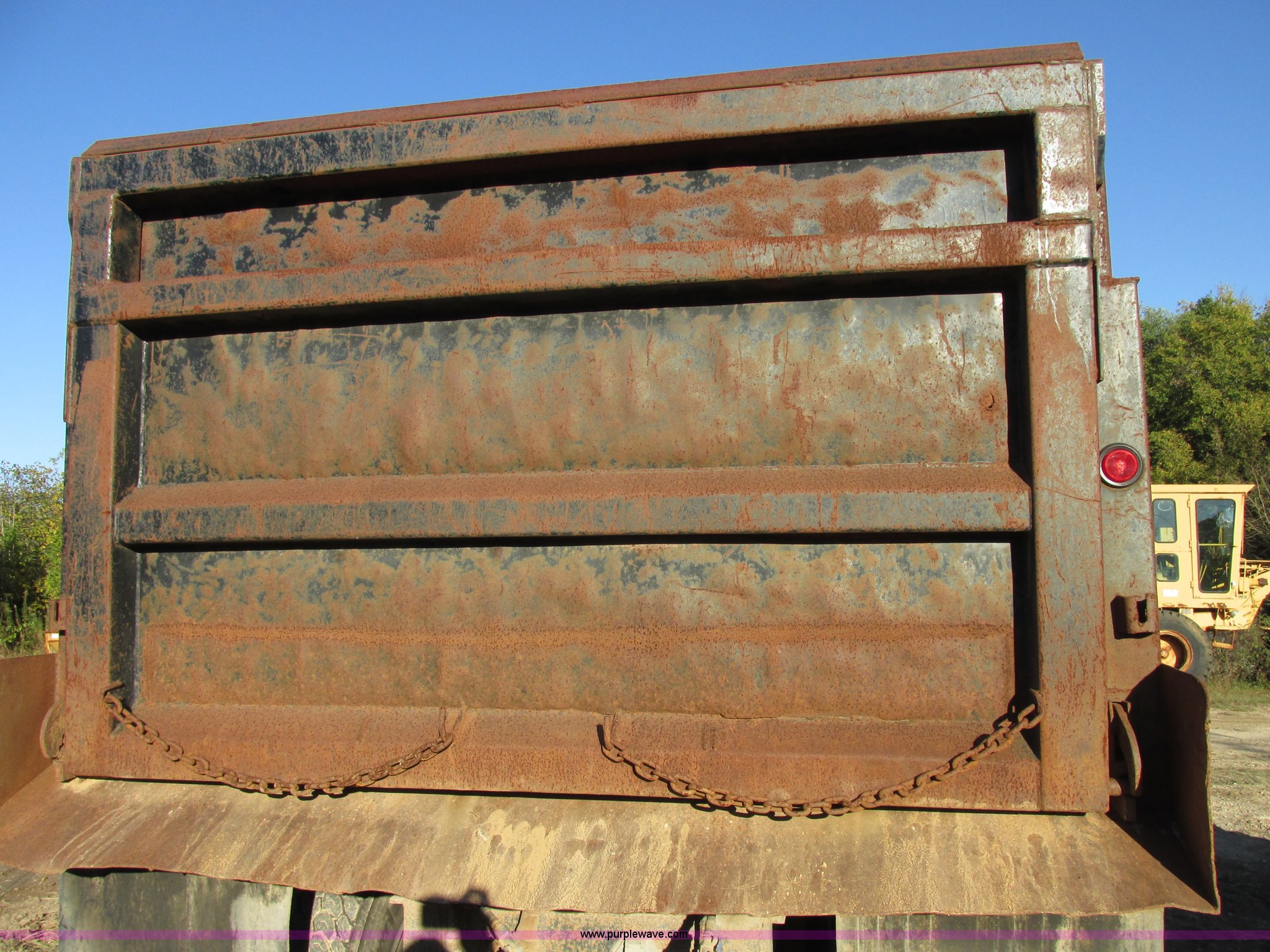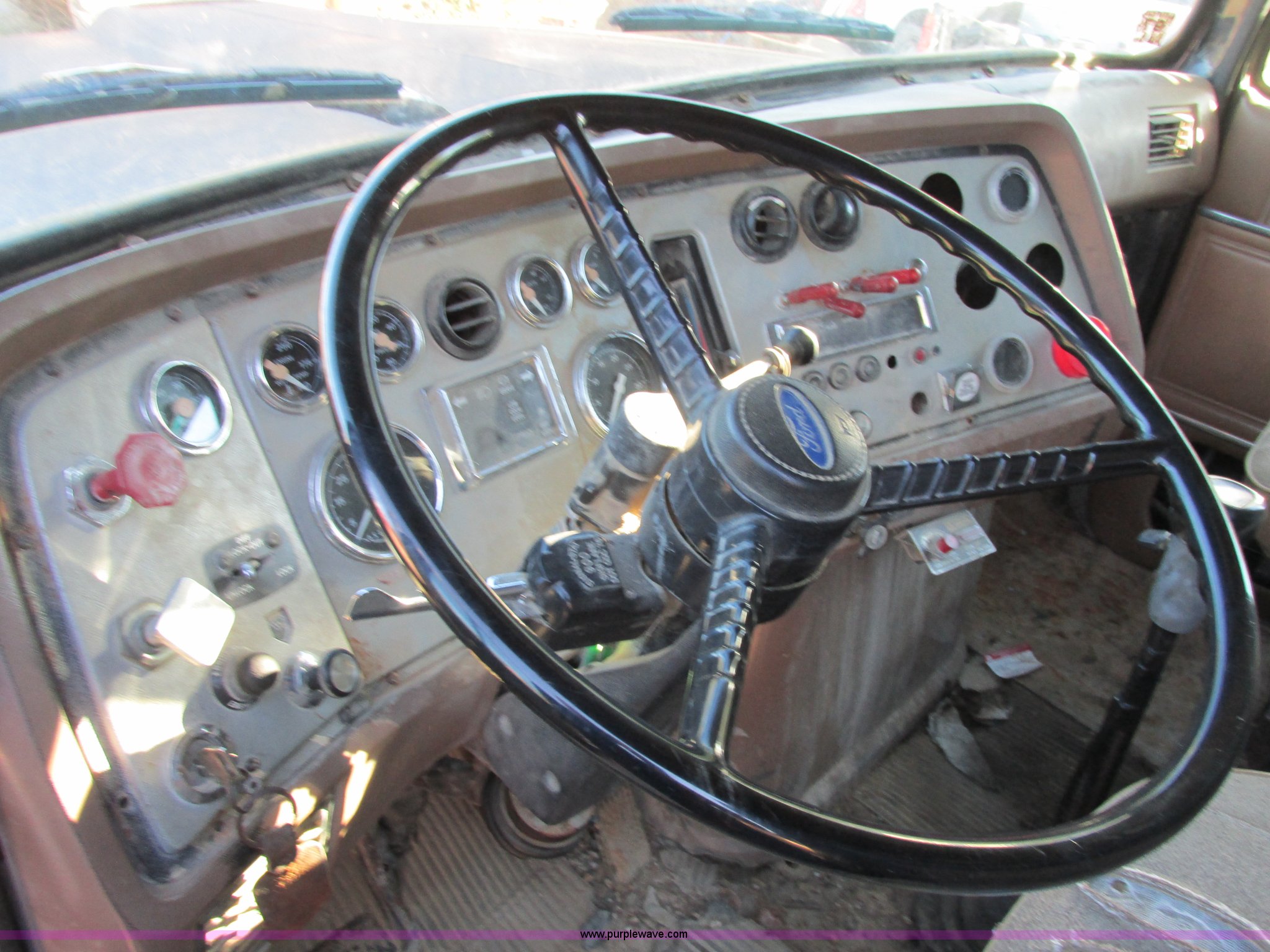 Purple Wave is selling a used Construction Dump Truck in Missouri. This item is a 1988 Ford L9000 dump truck with the following: 658,406 miles on odometer, Cummins N14 14.0L L6 diesel engine, Eaton Fuller RTO-11613-14613 eight speed manual transmission, Locking differential, Heat, AM/FM/cassette, Manual windows and locks, Air suspension seat, 15'L x 8'W x 55"H dump bed, Air operated end gate, Exterior visor, PTO, Air brakes, 204" wheelbase, 315/80R22.5 front tires, 11R22.5 rear tires, GVWR 50,000 lbs