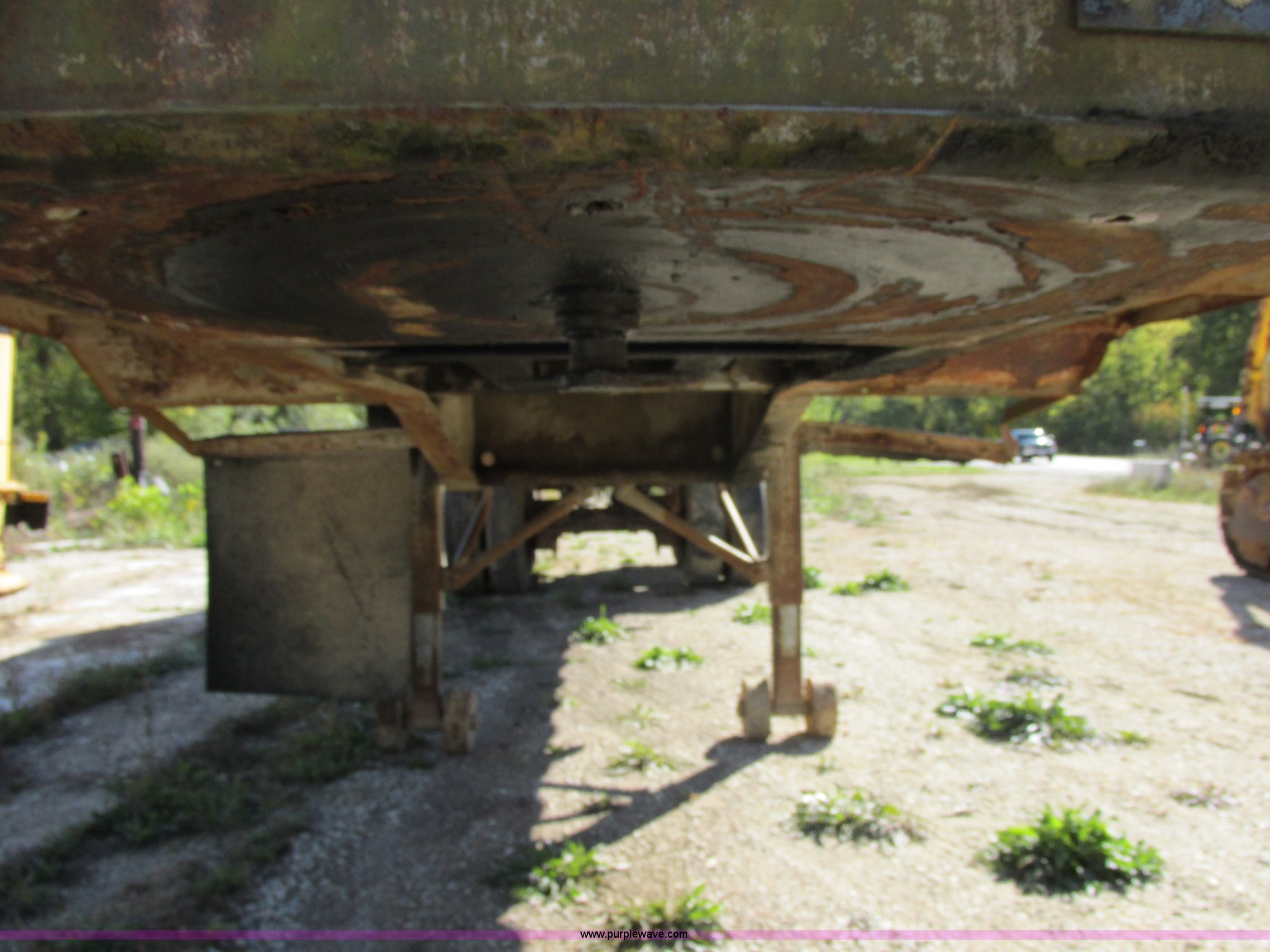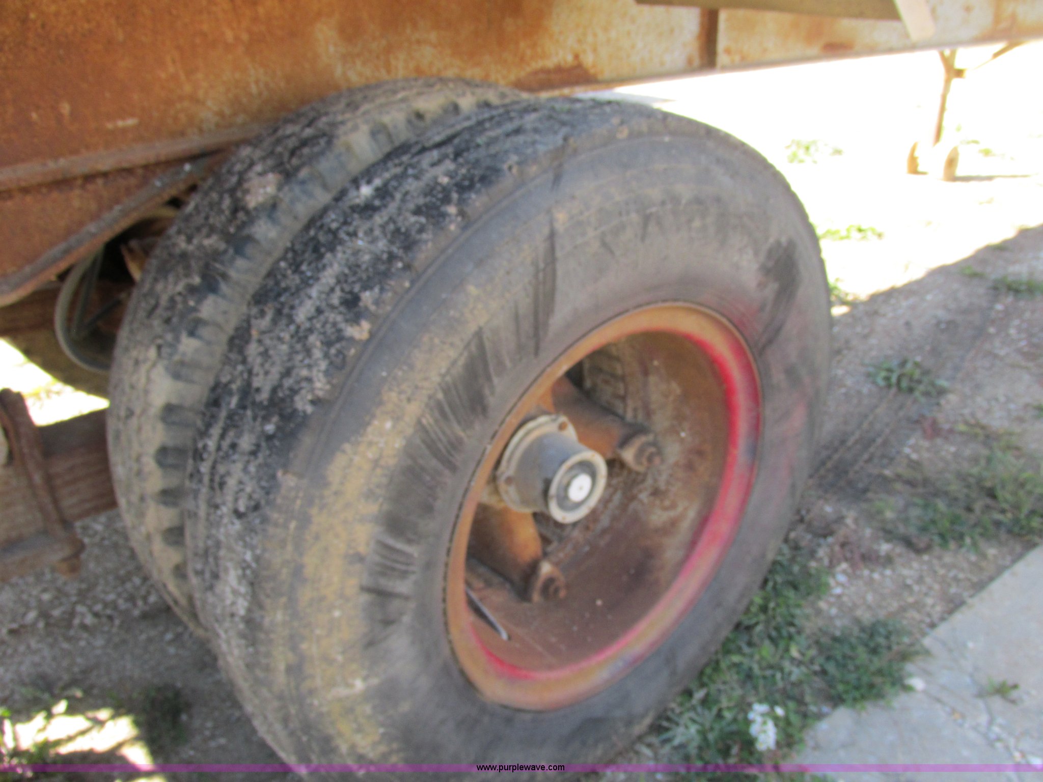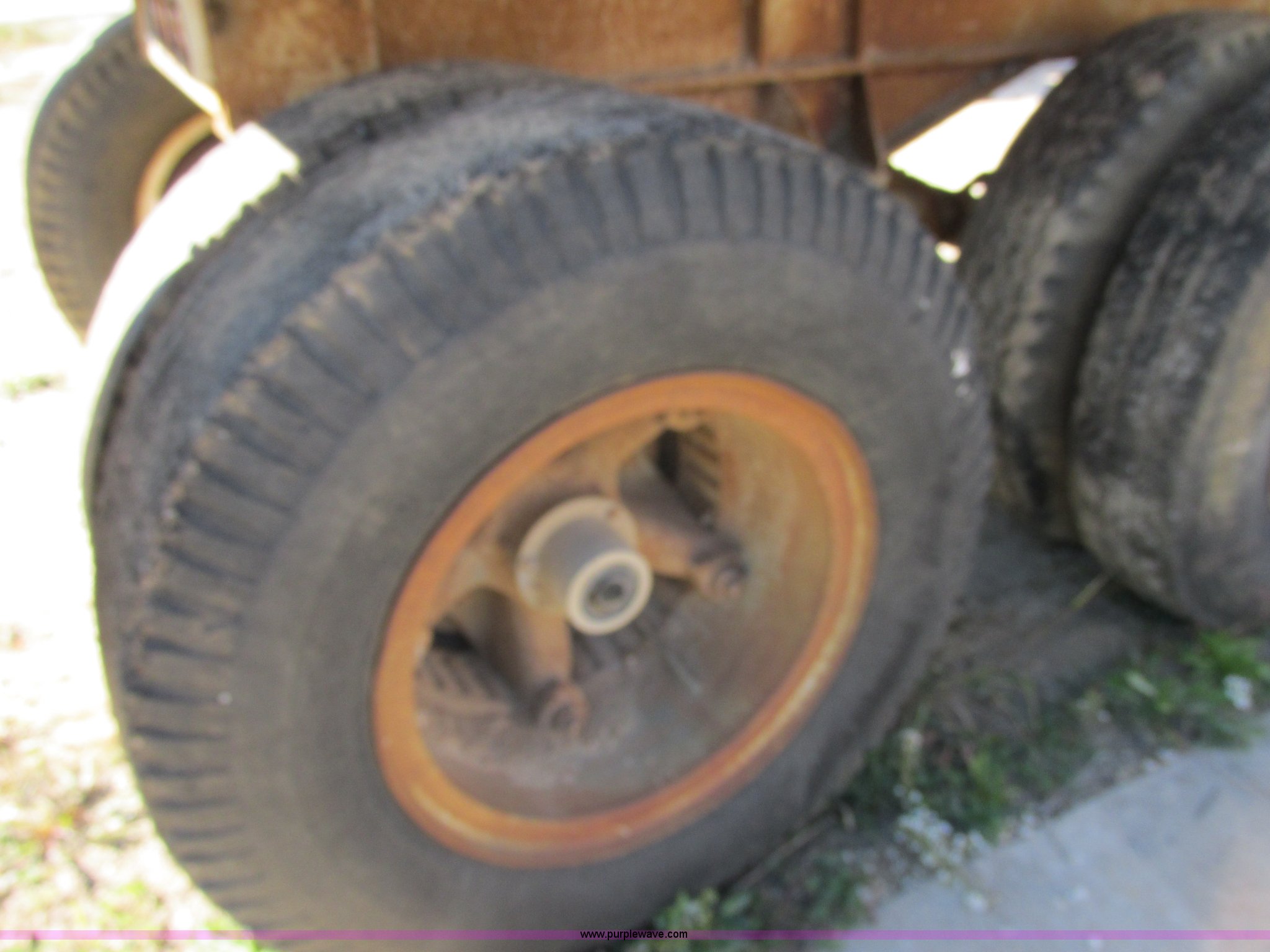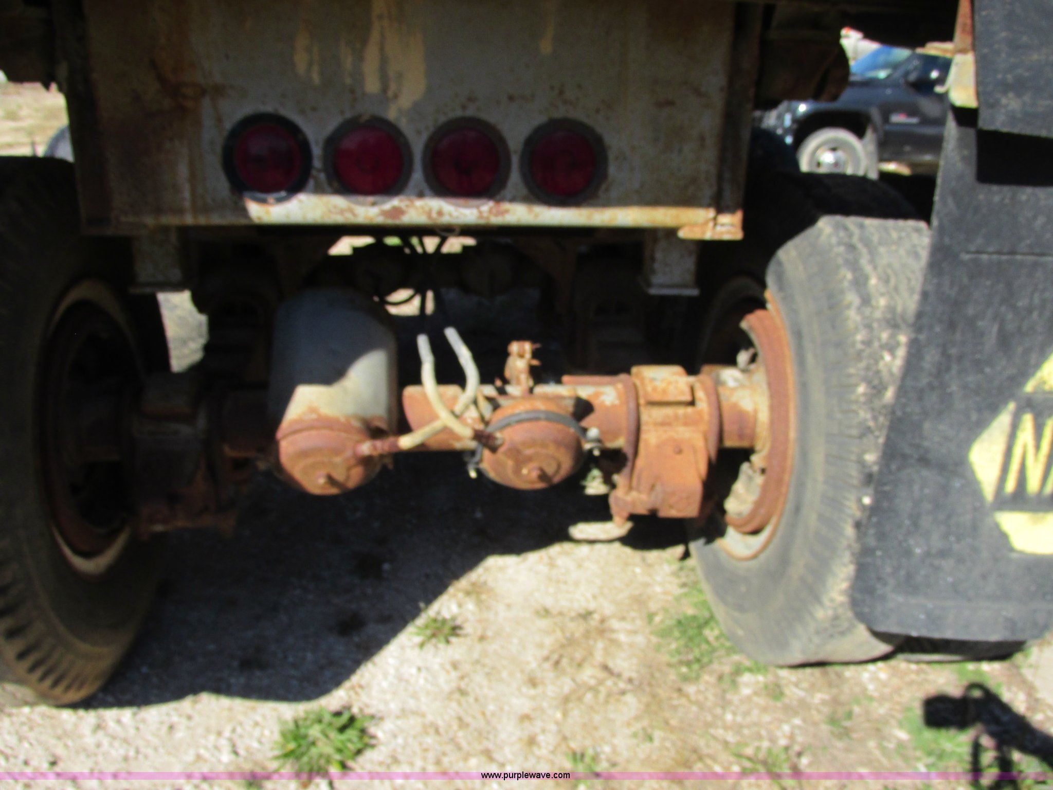 Purple Wave is selling a used End Dump Rock Trailer in Missouri. This item is a 1966 Fruehauf aluminum dump trailer with the following: 28'L x 8'W, Steel sideboards, Air operated tailgate, Rear gate grain door, Dual leg jacks, Spring suspension, Air brakes, 10.00R20 tires, Tread separated on one tire, Fenders bent, Damaged air fitting, Dented, Weld repairs