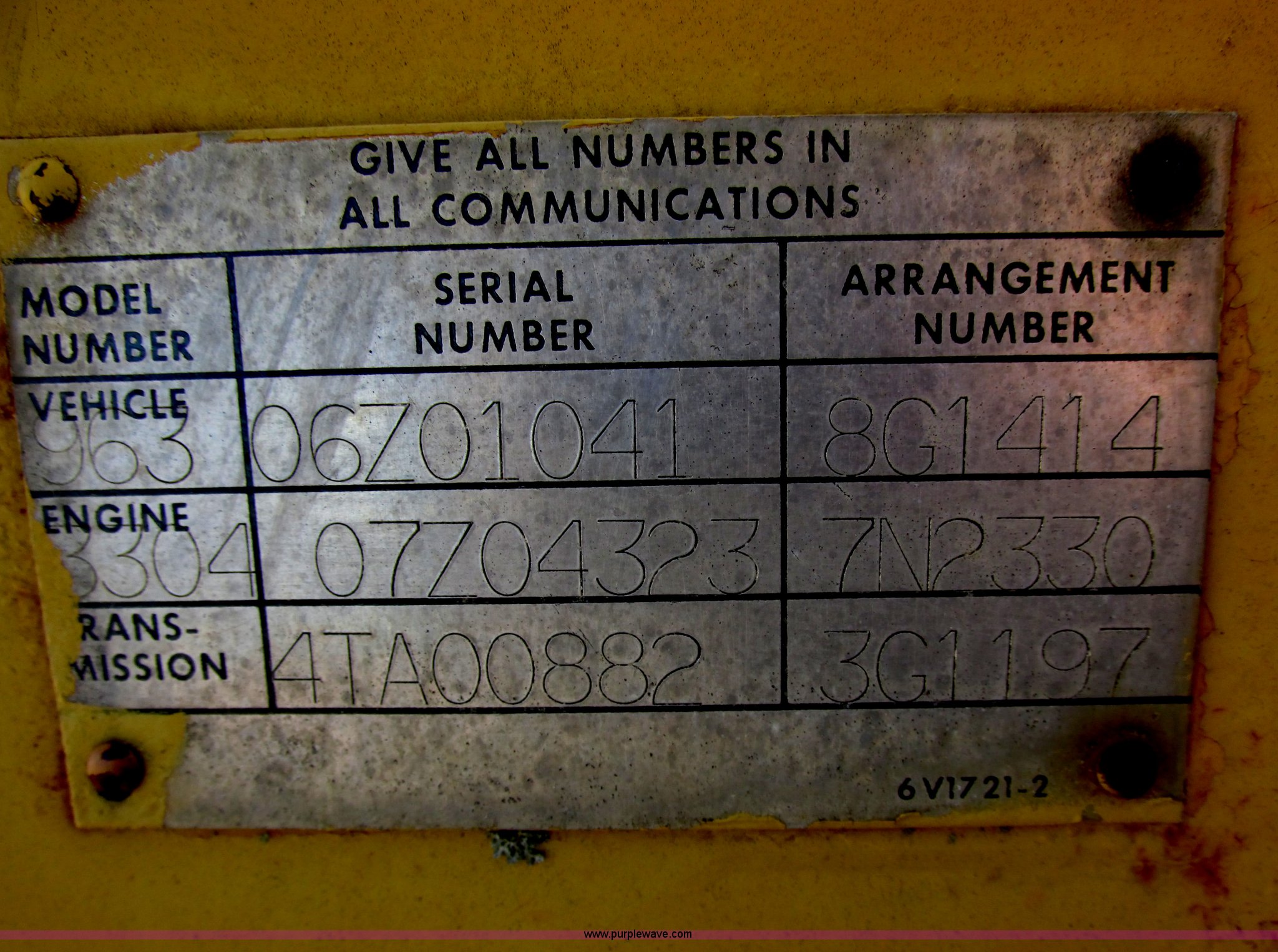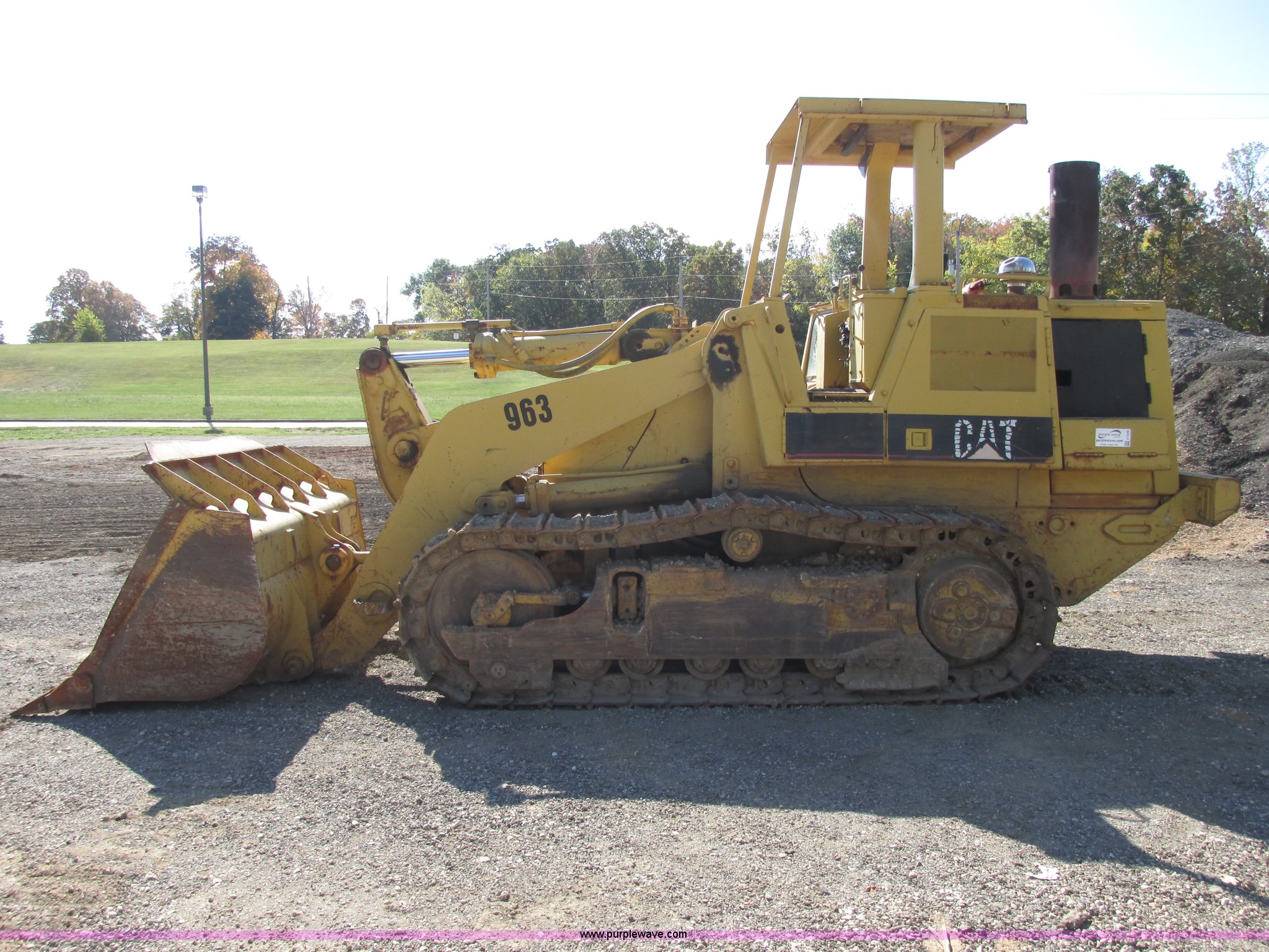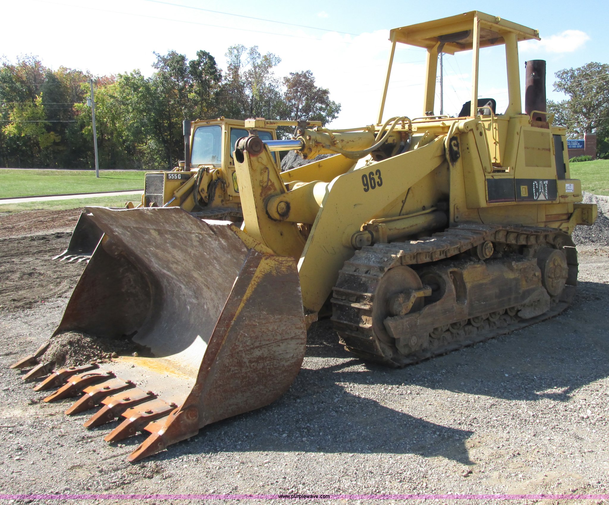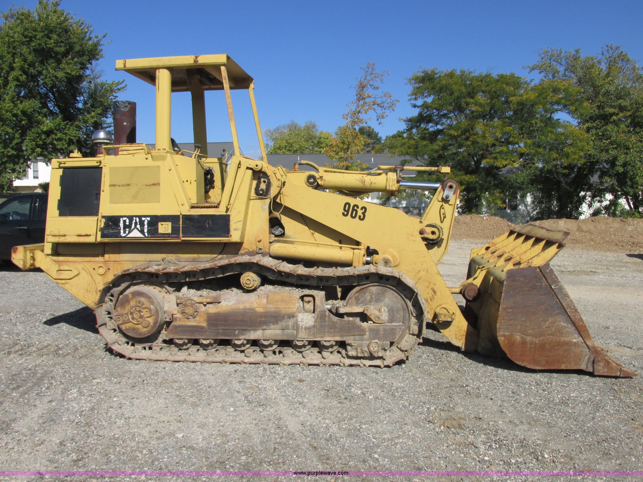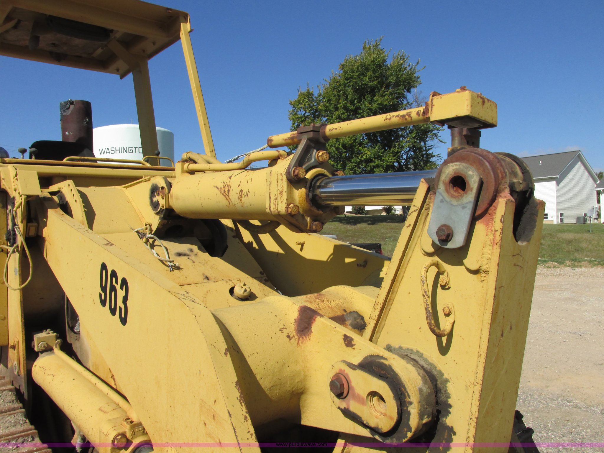Purple Wave is selling a used Crawler Loader in Missouri. This item is a Caterpillar 963 track loader with the following: Caterpillar 3304 four cylinder diesel engine, Serial 07704323, Hydrostatic transmission, Transmission serial 4TA00882, OROPS, Two lever control, 8'W eight tooth bucket, Automatic buck leveler present but disconnected, Rear hitch, Vandalism control cover, Auxiliary brake system, 18"W double grouser track pads, Seat torn, Missing door latch, Serial 06701041