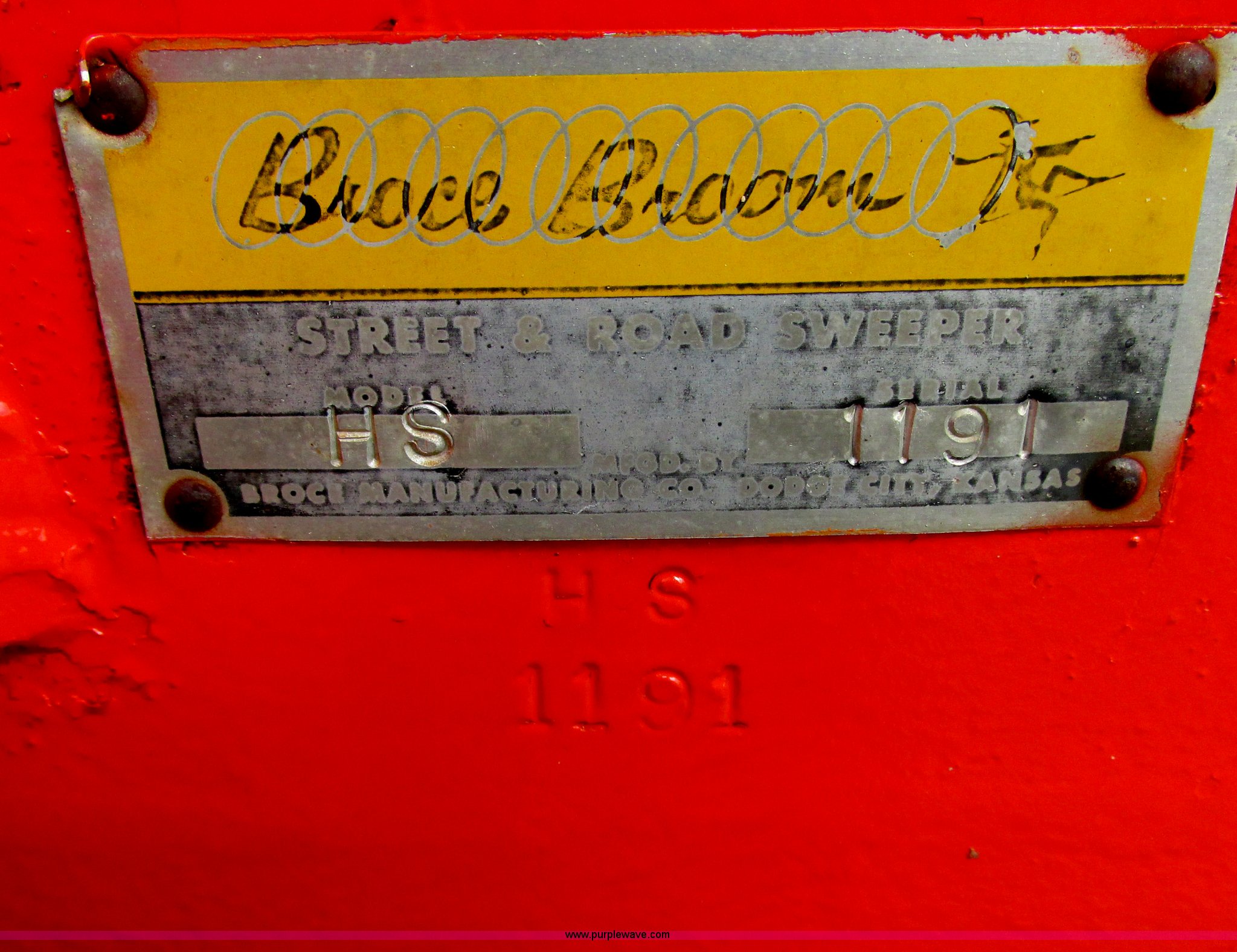 Purple Wave is selling a used Broom in Missouri. This item is a Broce HS broom with the following: 337 hours on meter, Four cylinder gas engine, Hydrostatic transmission, 2F-2R gears, 7'W angle broom, Poly and steel brushes, Front mounted PTO, 2 5/16" tow system, 215/75R15 tires, Serial 1191