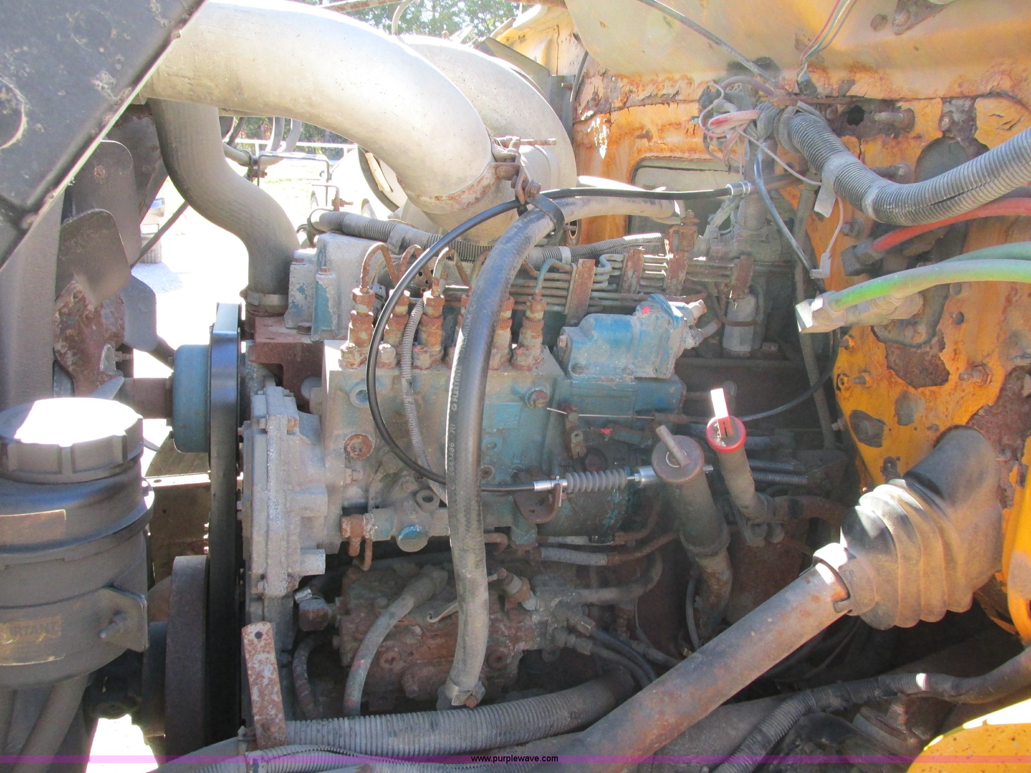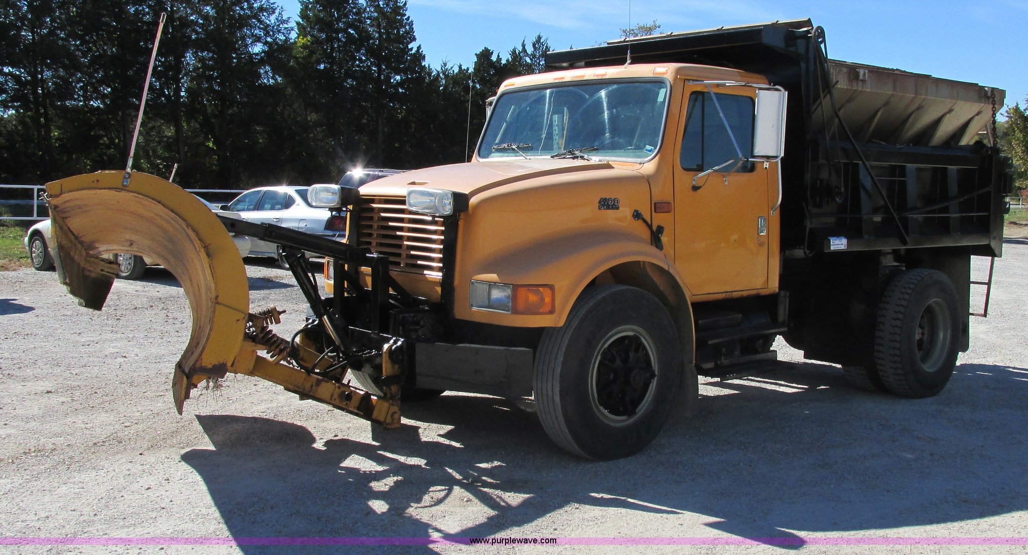 Purple Wave is selling a used Construction Dump Truck in Missouri. This item is a 1995 International 4900 dump truck with the following: Unknown miles on odometer, International DT466 7.6L L6 diesel engine, Automatic transmission, Heat, AM/FM, Air suspension seat, Heated mirrors, In-cab plow and spreader controls, 9'L dump bed, Manual end gate, Three stage single ram, Rollover tarp, Weston six-way plow, 11'W, Flink 8609-V-08 stainless steel spreader, Five cu. yd. capacity, Serial 6742, Block heater, Pintle hitch, Front mount PTO, Spring suspension, Air brakes, 140" wheelbase, 11R22.5 tires, GVWR 34,000 lbs, FAWR 12,000 lbs, RAWR 22,000 lbs