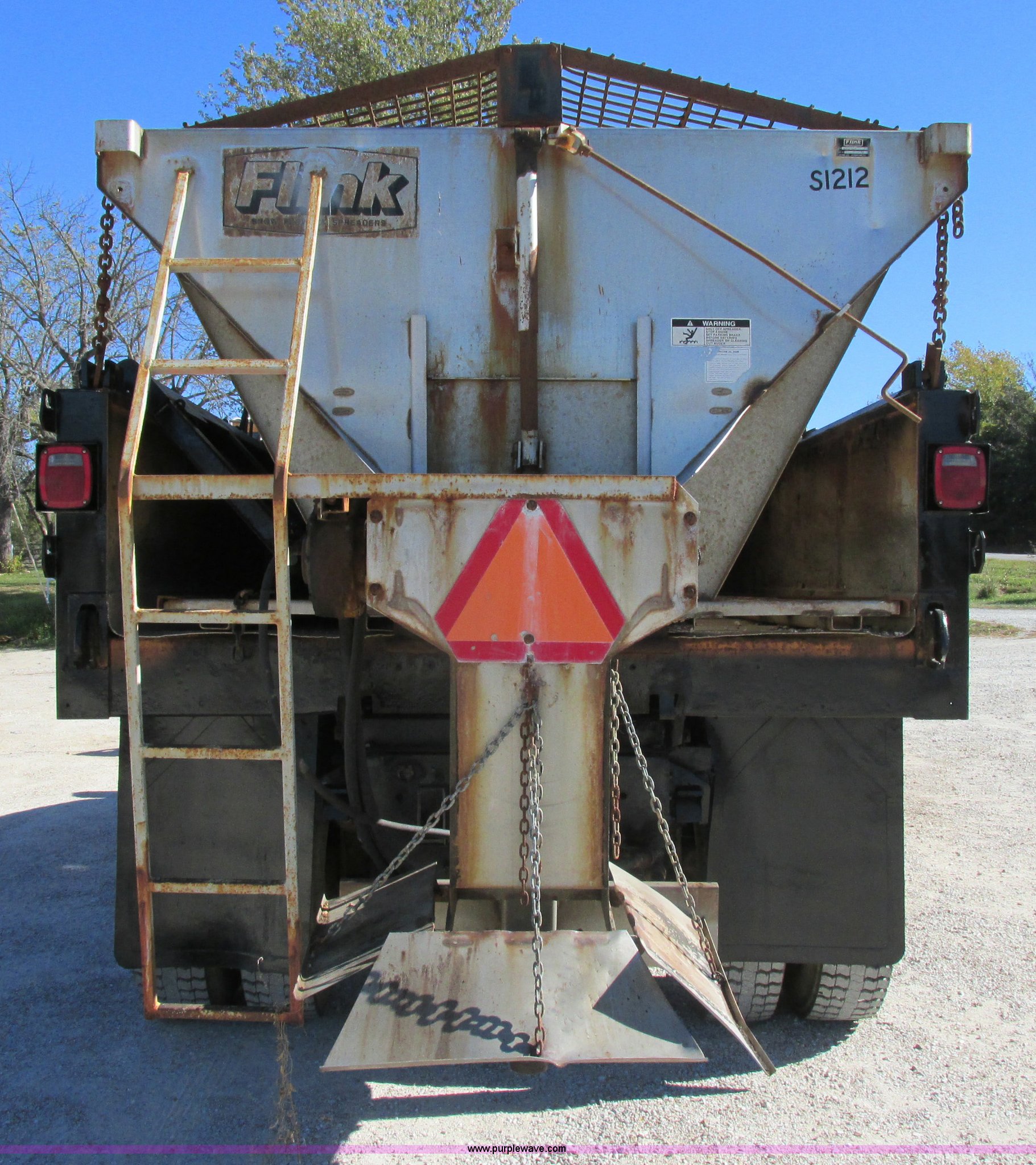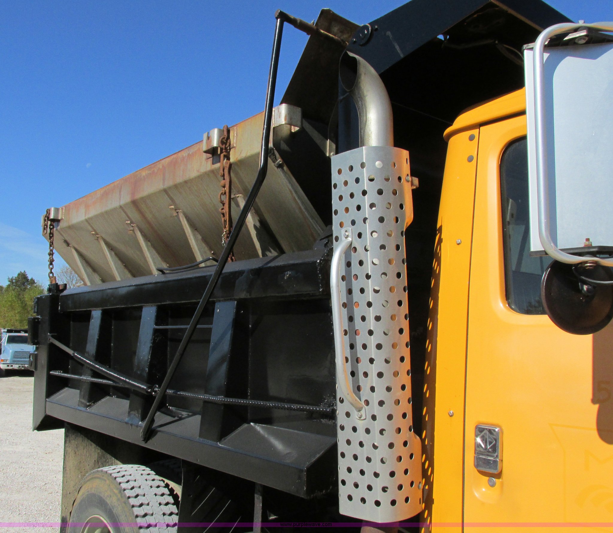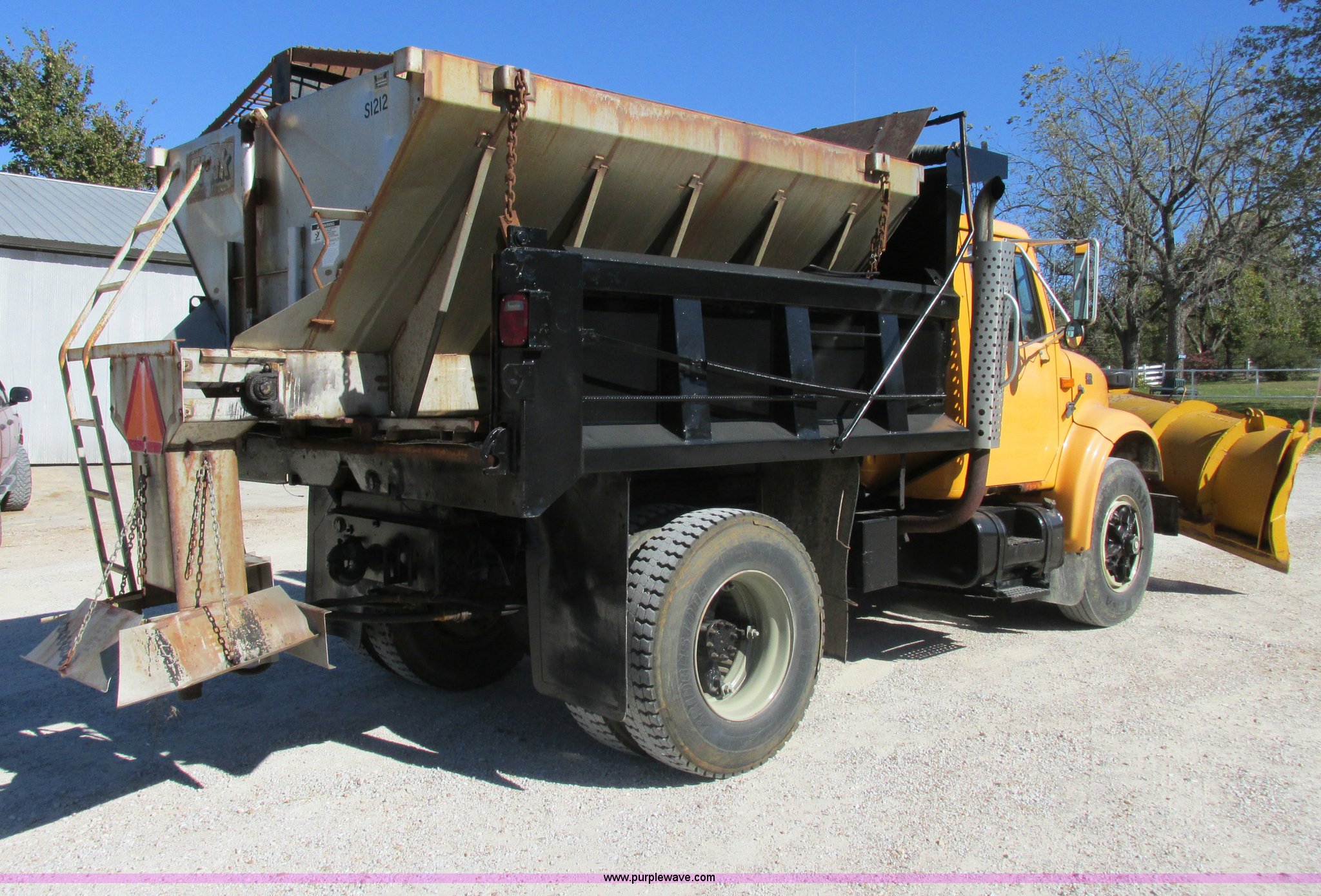 1995 International 4900 dump truck. Unknown miles on odometer, International DT466 7.6L L6 diesel engine, Automatic transmission, Heat, AM/FM, Air suspension seat, Heated mirrors, In-cab plow and spreader controls, 9'L dump bed Manual end gate, Three stage single ram, Rollover tarp, Weston six-way plow 11'W, Flink 8609-V-08 stainless steel spreader Five cu. yd. capacity, Serial 6742, Block heater, Pintle hitch, Front mount PTO, Spring suspension, Air brakes, 140" wheelbase, 11R22.5 tires, GVWR 34,000 lbs, FAWR 12,000 lbs, RAWR 22,000 lbs. Title distribution may be delayed up to 14 days from verification of funds. 1HTSDAAN7SH633745. Benton County Road One District. 30503 Hwy MM. Warsaw , MO 65355