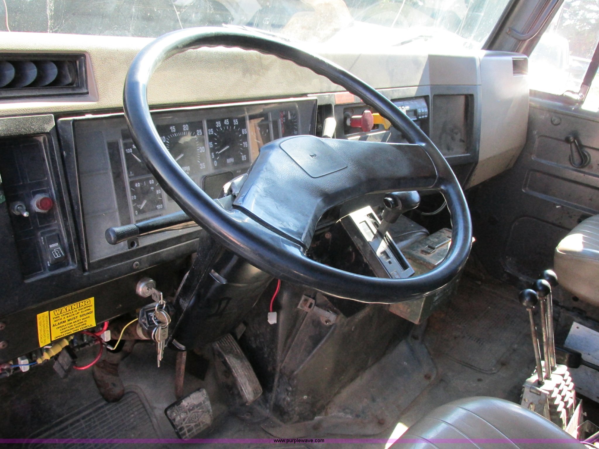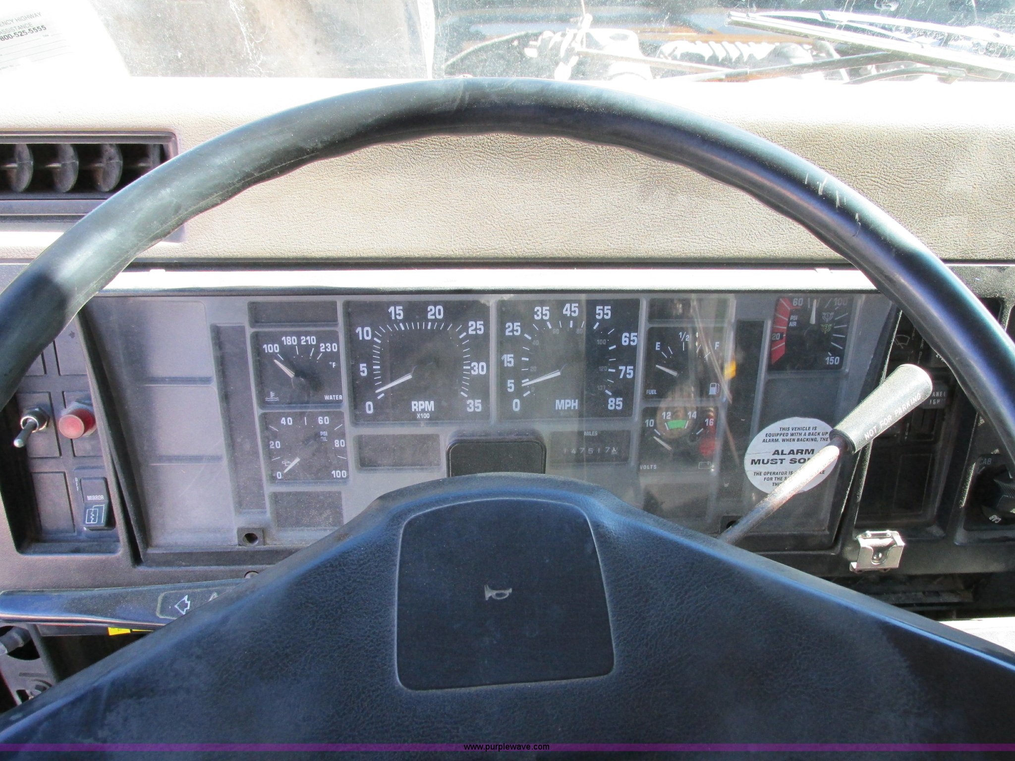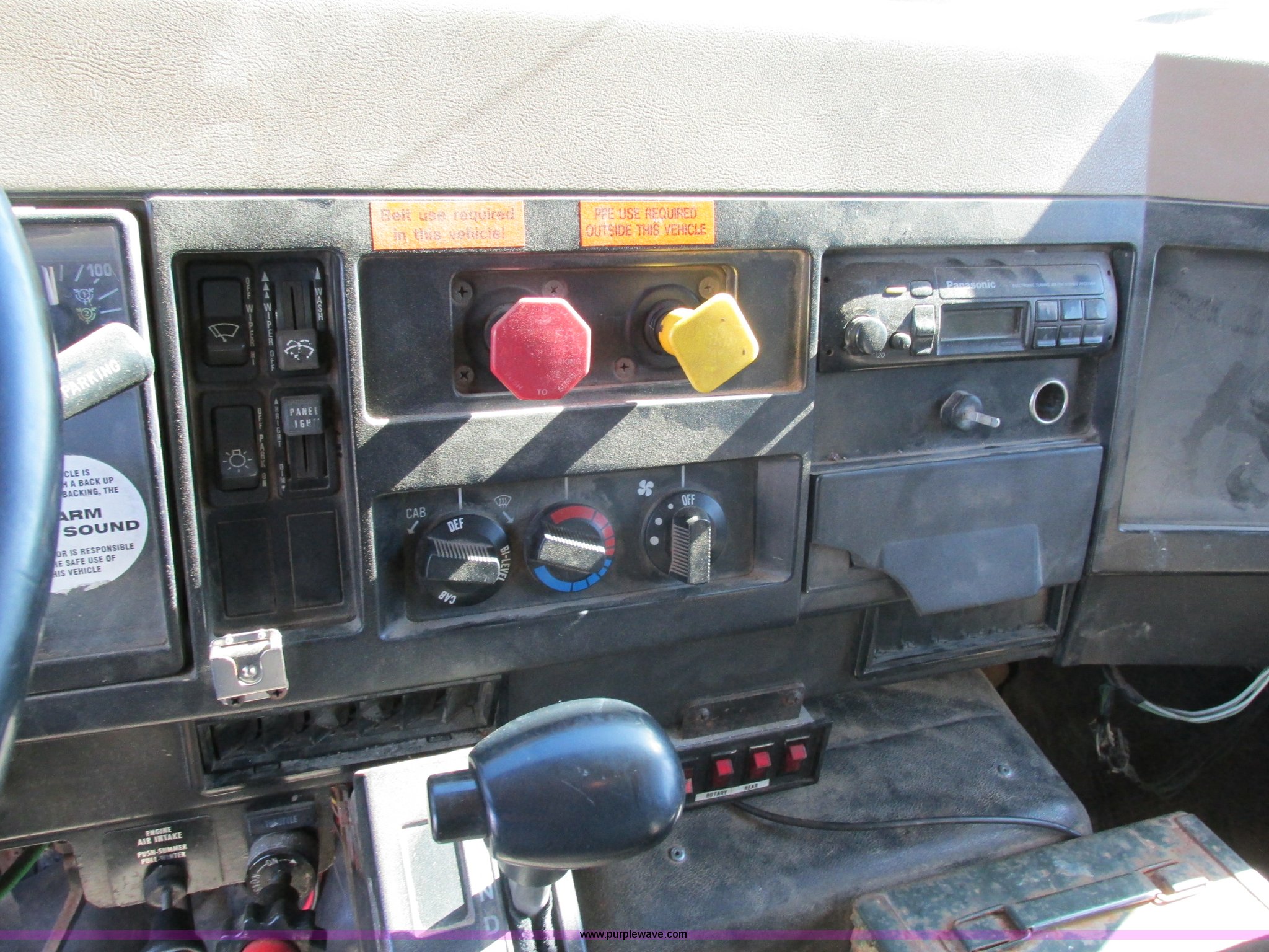 1995 International 4900 dump truck. Unknown miles on odometer, International DT466 7.6L L6 diesel engine, Automatic transmission, Heat, AM/FM, Air suspension seat, Heated mirrors, In-cab plow and spreader controls, 9'L dump bed Manual end gate, Three stage single ram, Rollover tarp, Weston six-way plow 11'W, Flink 8609-V-08 stainless steel spreader Five cu. yd. capacity, Serial 6742, Block heater, Pintle hitch, Front mount PTO, Spring suspension, Air brakes, 140" wheelbase, 11R22.5 tires, GVWR 34,000 lbs, FAWR 12,000 lbs, RAWR 22,000 lbs. Title distribution may be delayed up to 14 days from verification of funds. 1HTSDAAN7SH633745. Benton County Road One District. 30503 Hwy MM. Warsaw , MO 65355