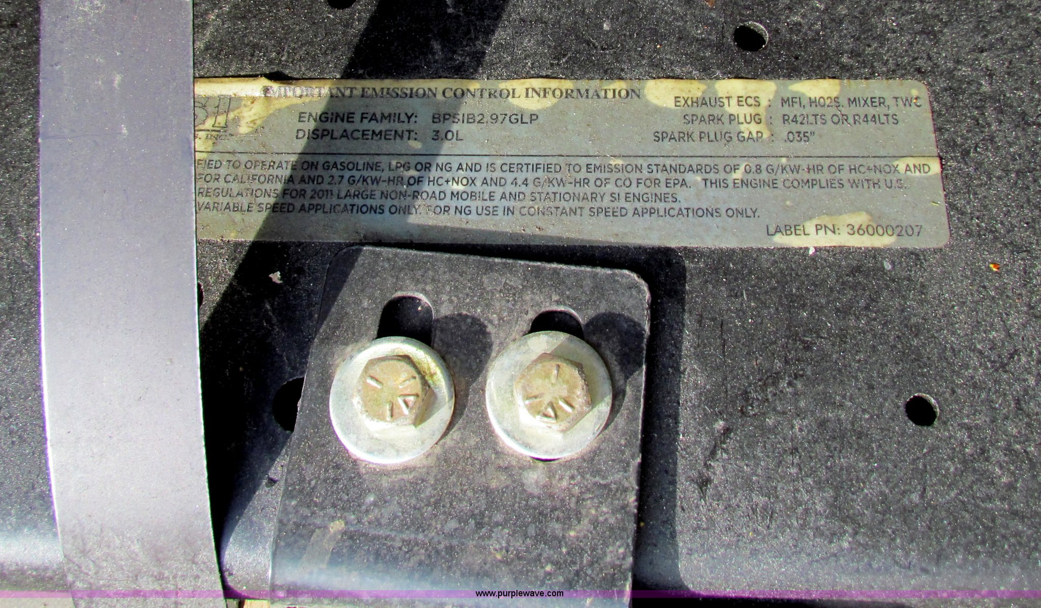 Purple Wave is selling a used Automotive Parts or Acces. in Kansas. This item is a 2011 GM Vortec 3.0L gas power skid with the following: Dual fuel gas or LP capability, Hydraulic pump, Removed from a JLG 600A basket lift, Approximately five hours on engine