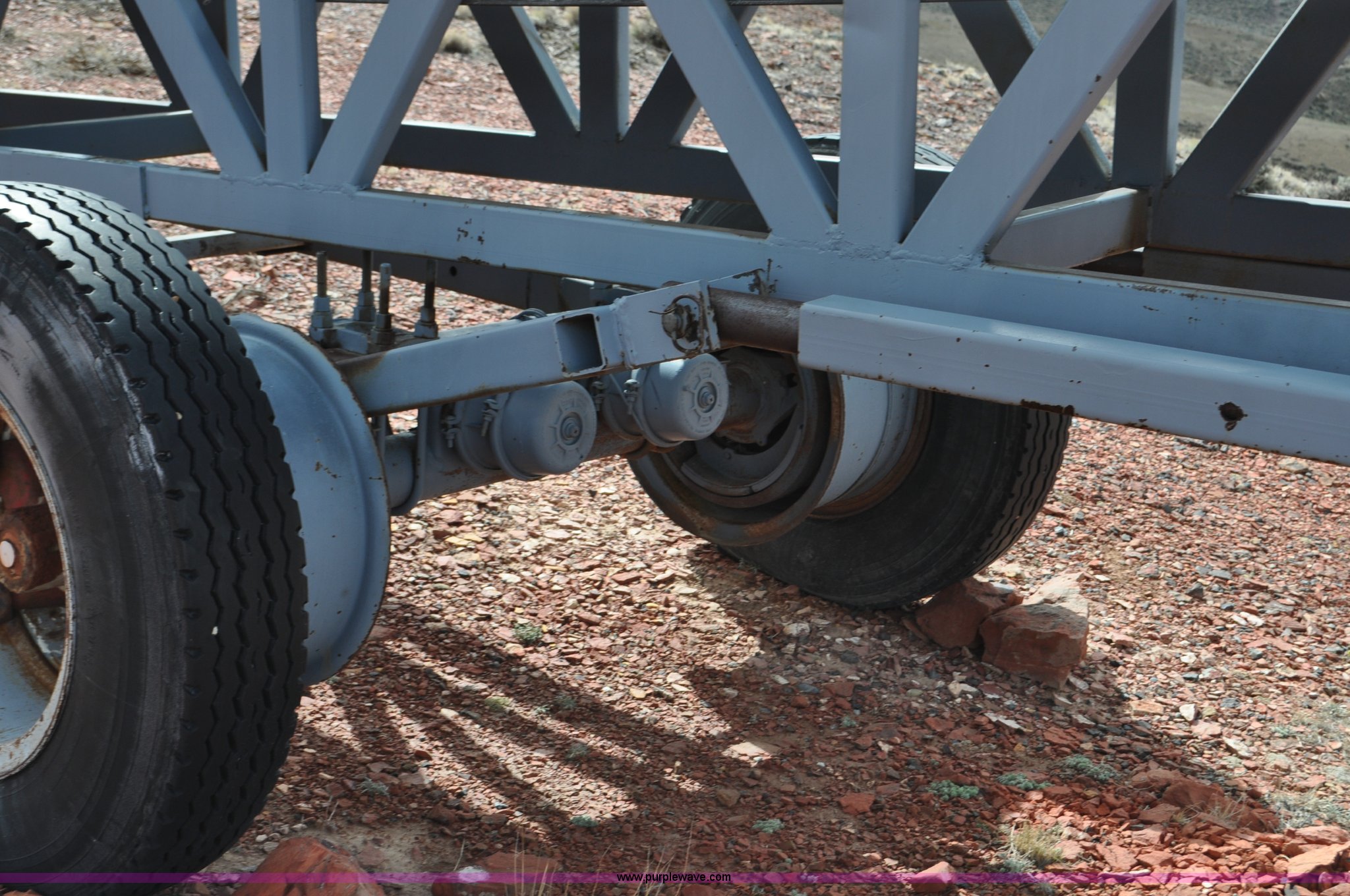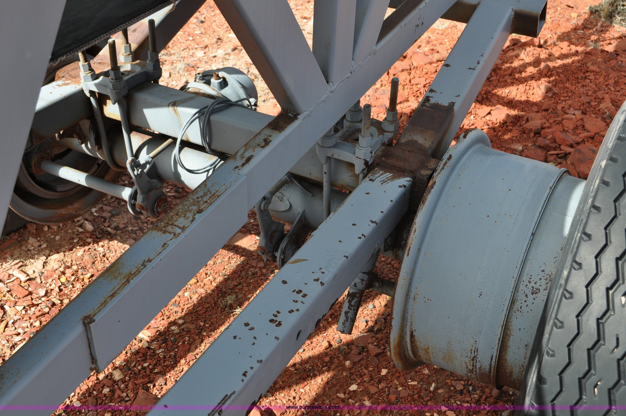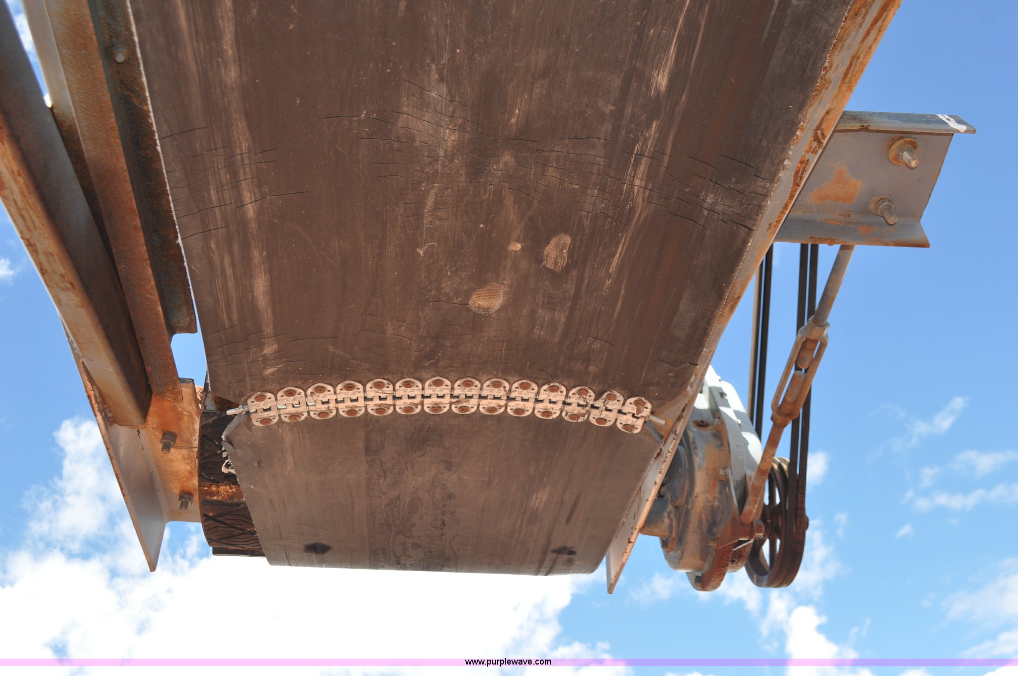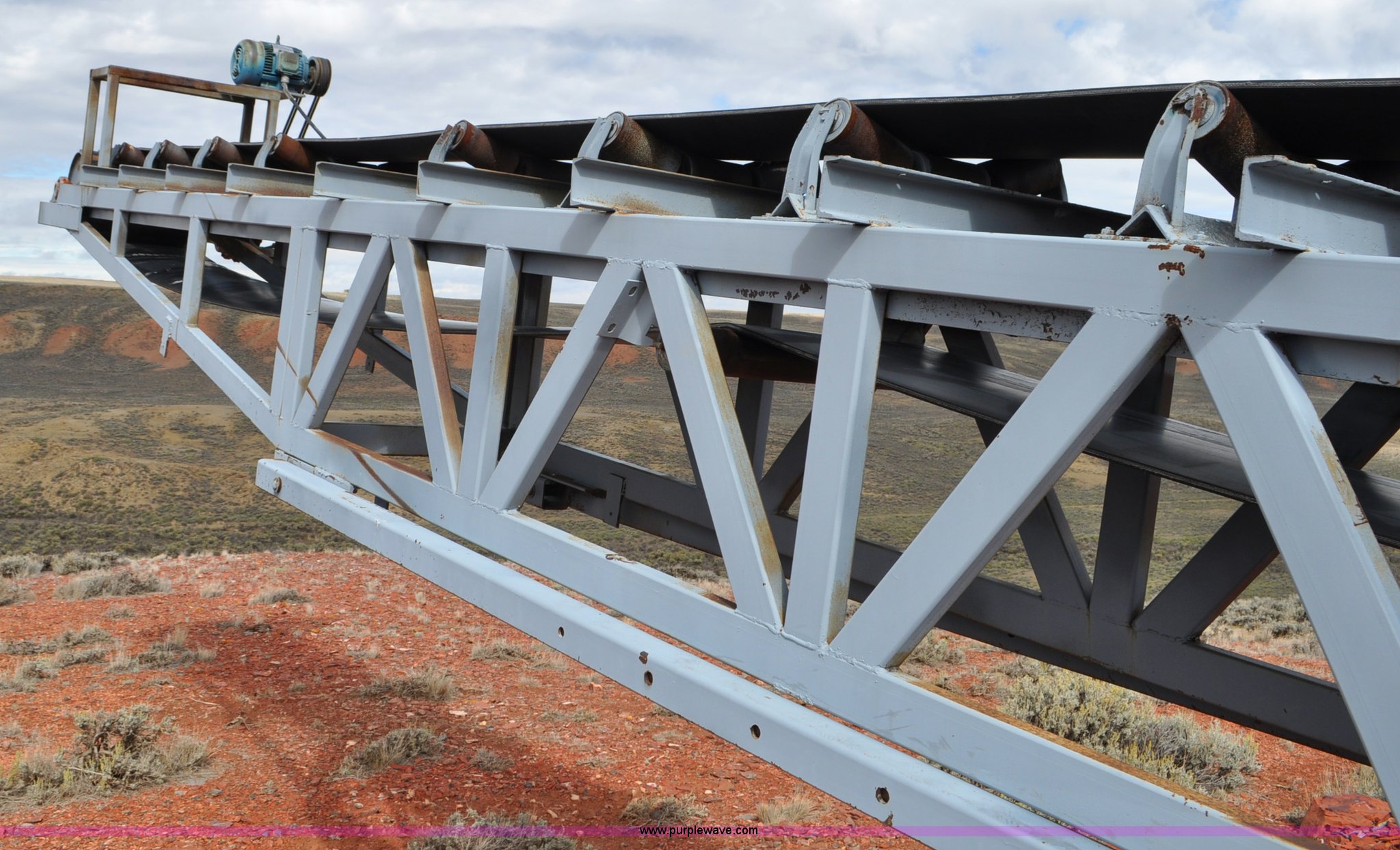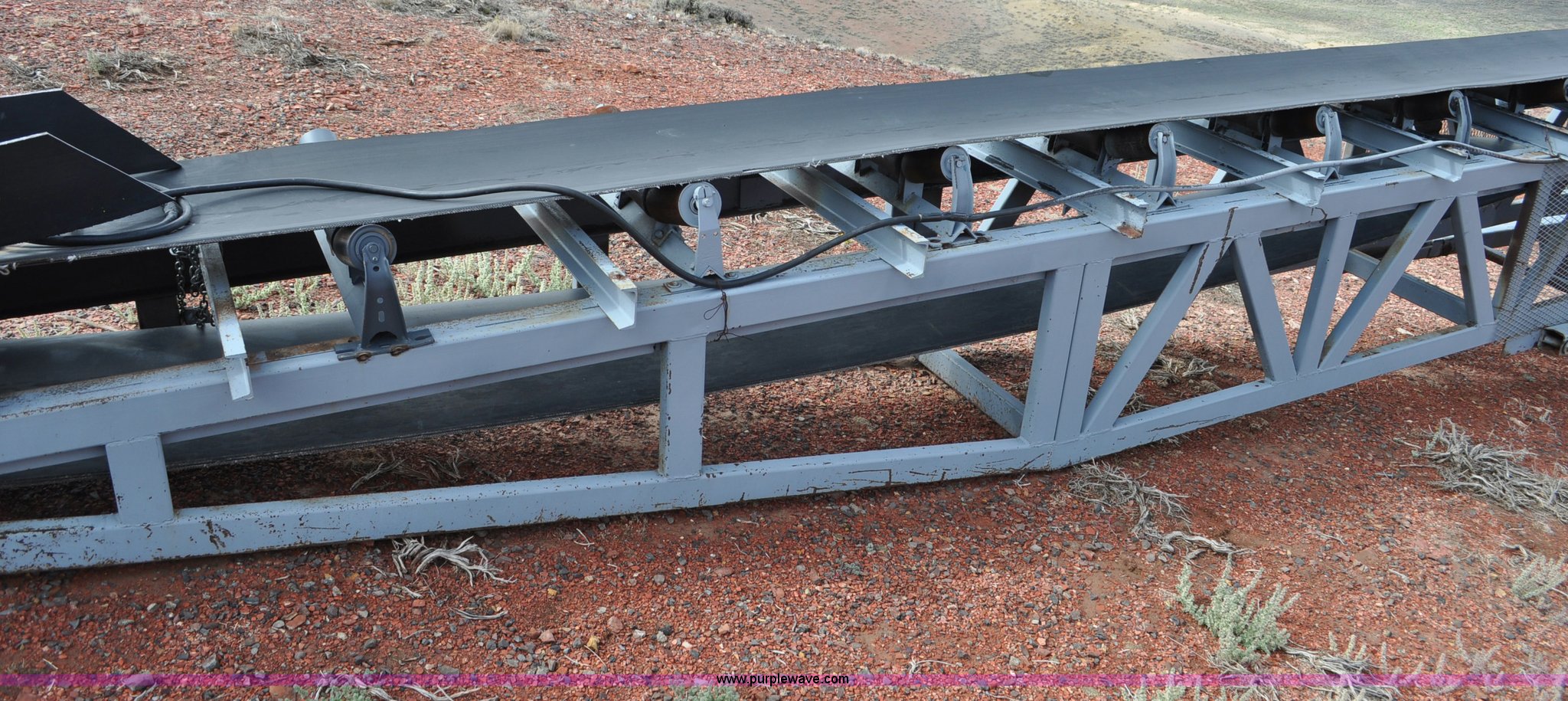 Purple Wave is selling a used Auger or Conveyor in Wyoming. This item is a Stacking conveyor with the following: 63'L, 24" belt, 7.5 HP, Manual lift, Air brakes, Pintle hitch, 10.00R22 tires