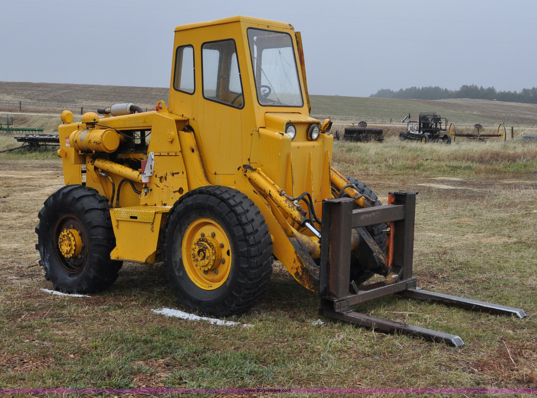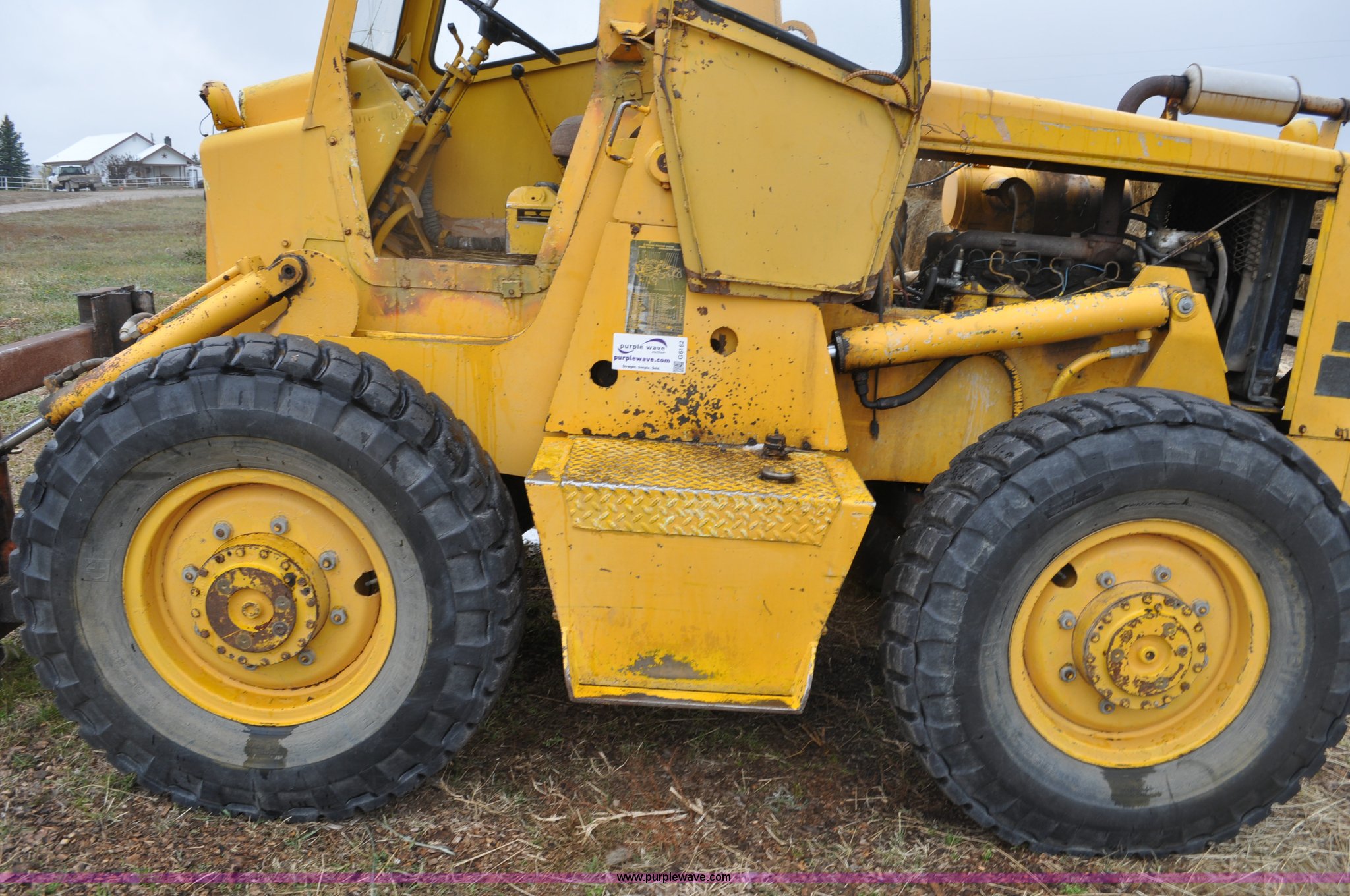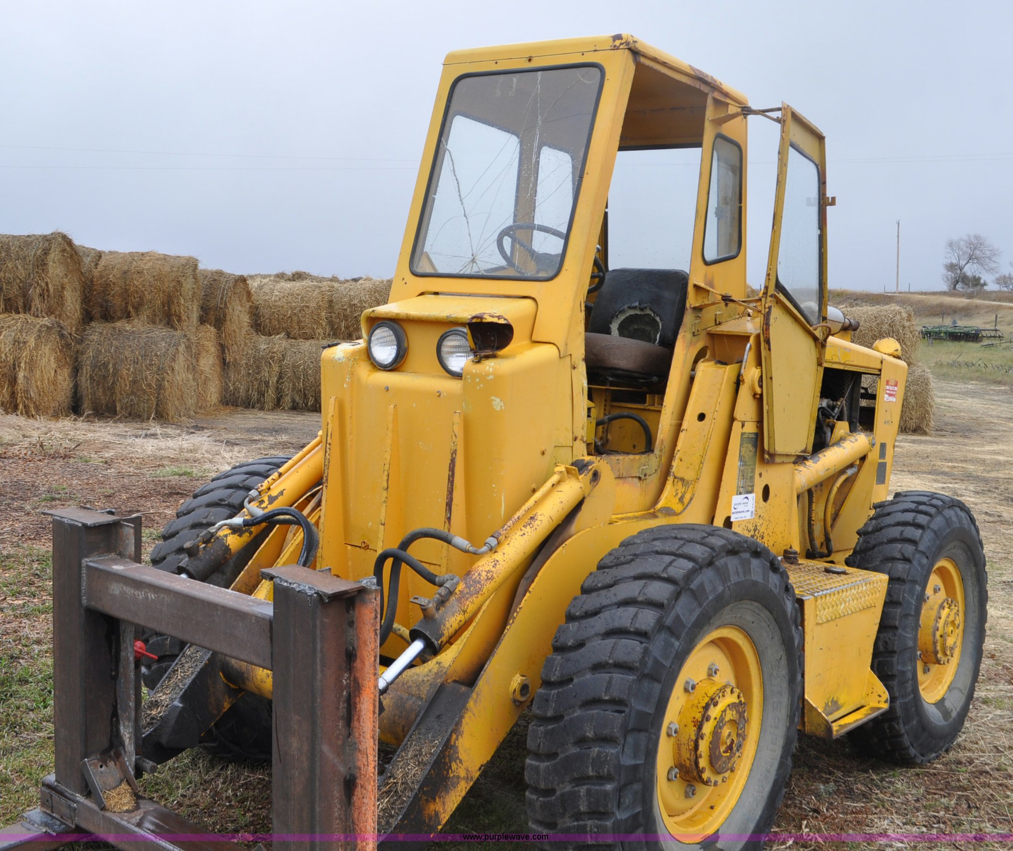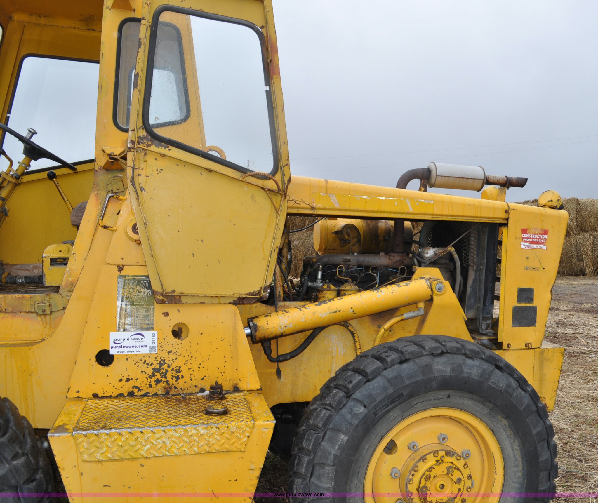 Purple Wave is selling a used Wheel Loader in Nebraska. This item is a 1963 Trojan wheel loader with the following: 6,749 hours on meter, Hours may vary, still in use, International Harvester UD-282 diesel engine, Rear wheel steer, Four wheel drive, Enclosed cab, Heat, Work lights, 94" pin-on bucket, 5' hay forks, 9,000 lbs maximum lift capacity, Rear hitch, 13.00 x 24 tires, Serial 61-1083
