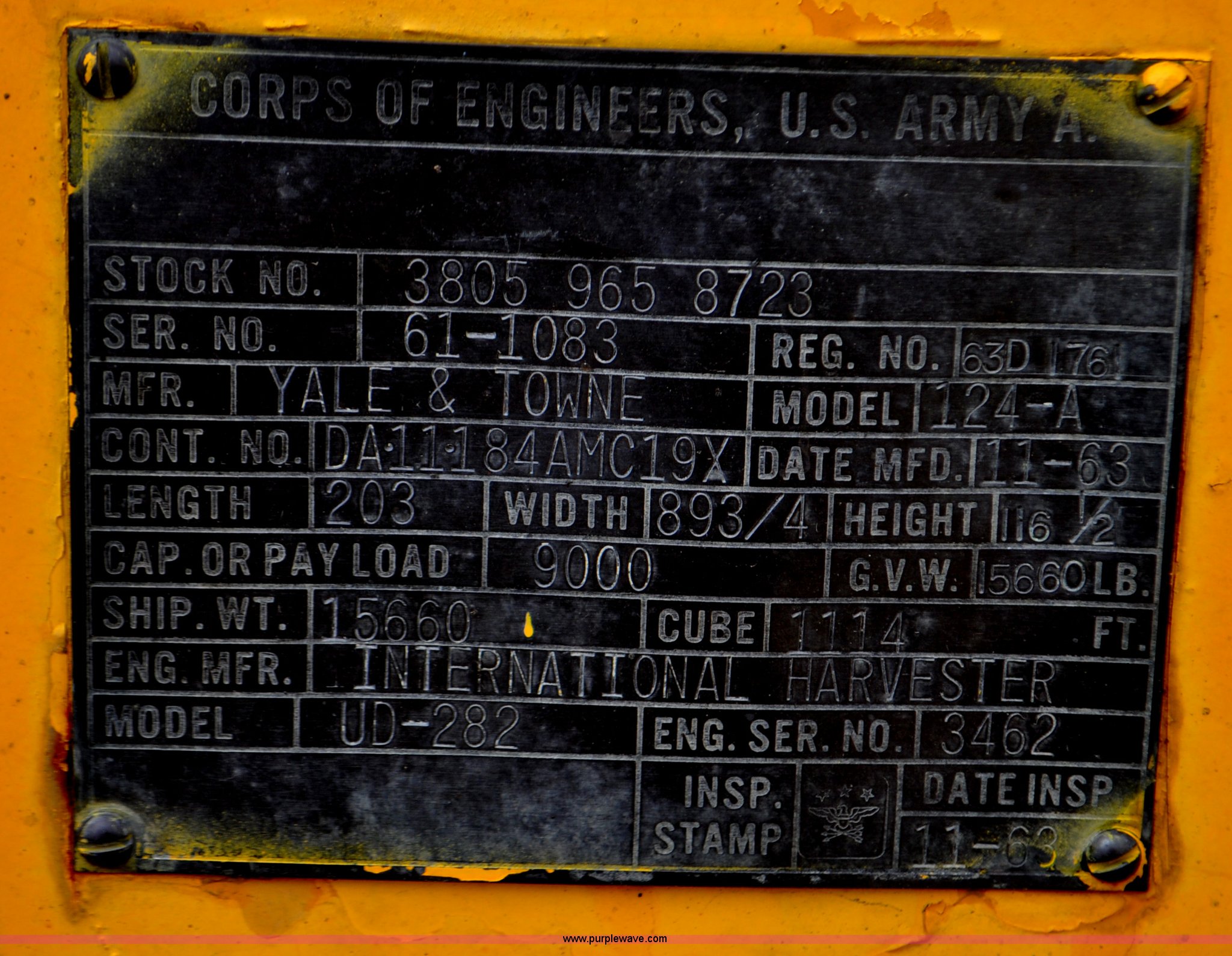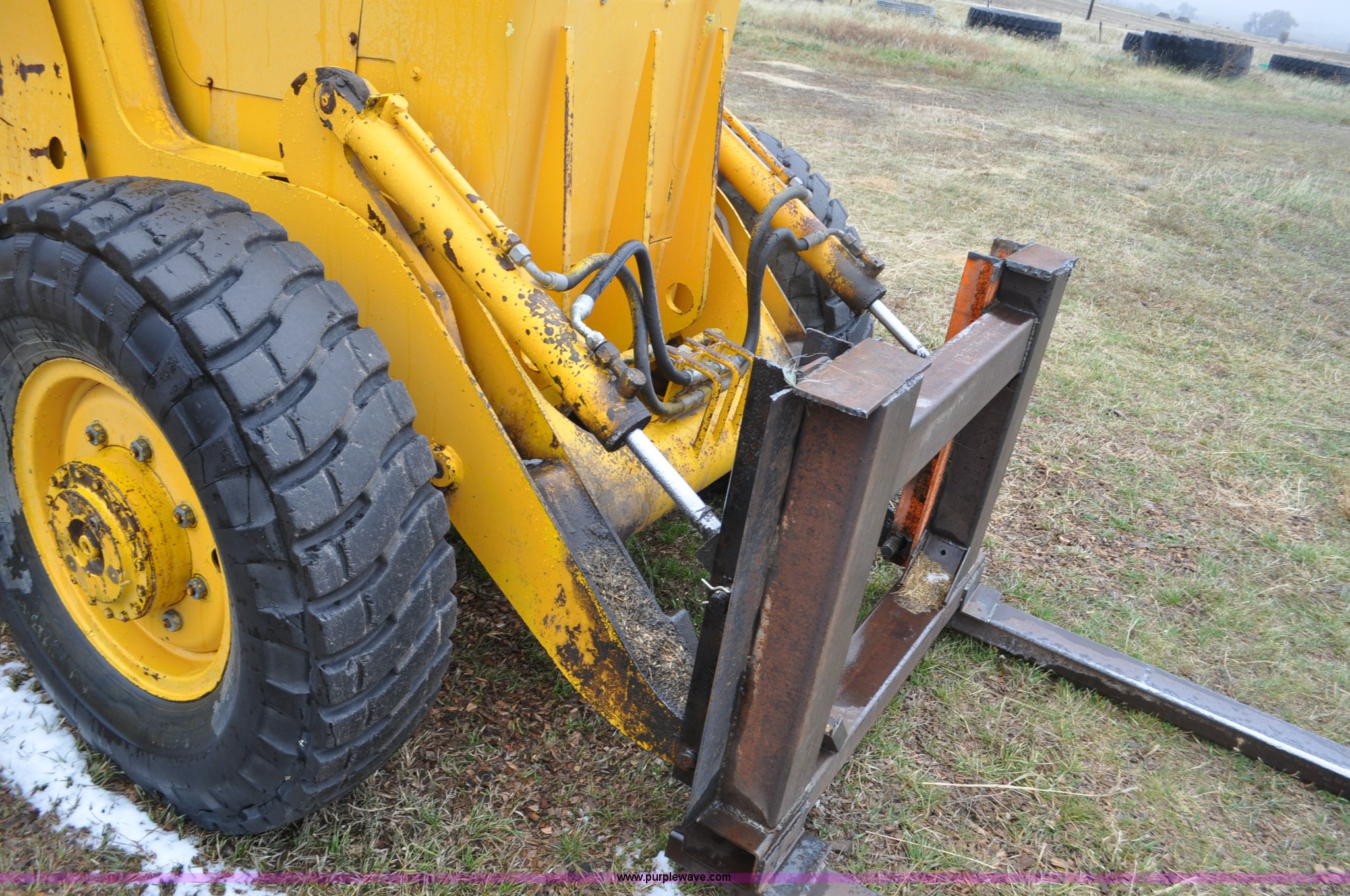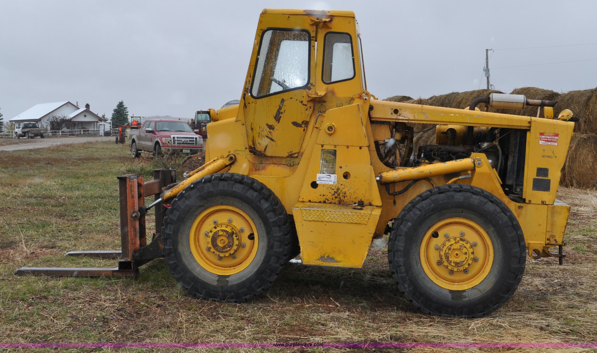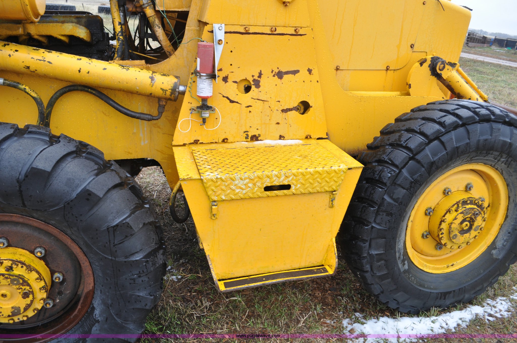 Purple Wave is selling a used Wheel Loader in Nebraska. This item is a 1963 Trojan wheel loader with the following: 6,749 hours on meter, Hours may vary, still in use, International Harvester UD-282 diesel engine, Rear wheel steer, Four wheel drive, Enclosed cab, Heat, Work lights, 94" pin-on bucket, 5' hay forks, 9,000 lbs maximum lift capacity, Rear hitch, 13.00 x 24 tires, Serial 61-1083