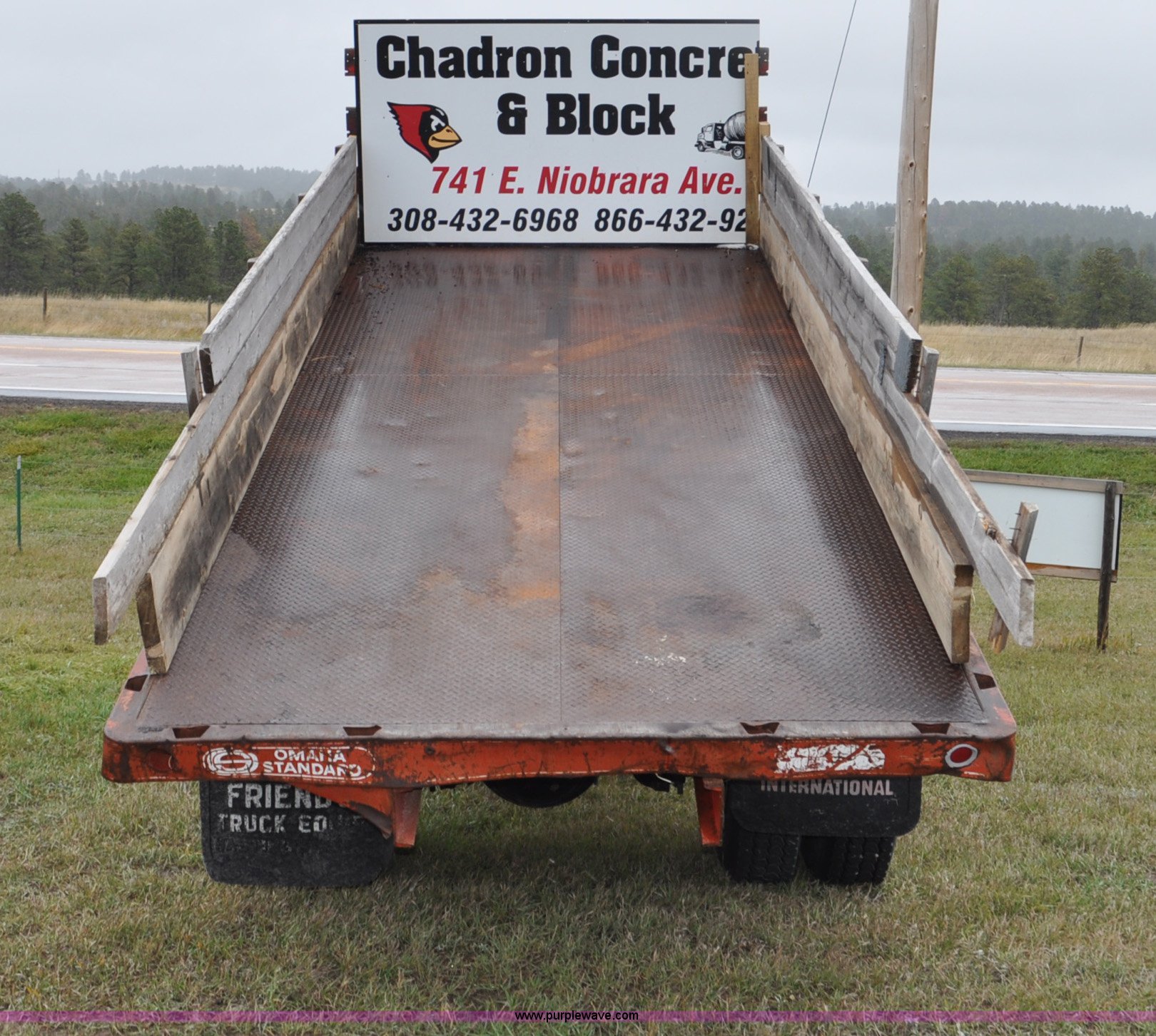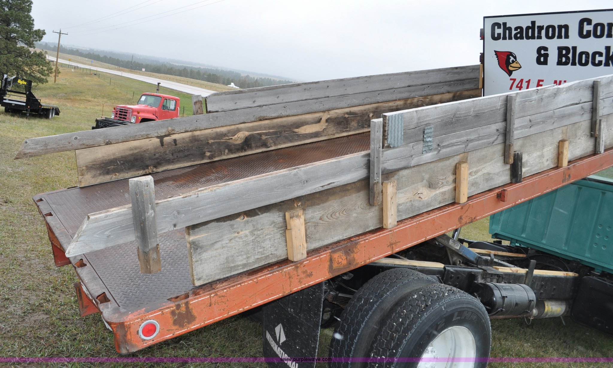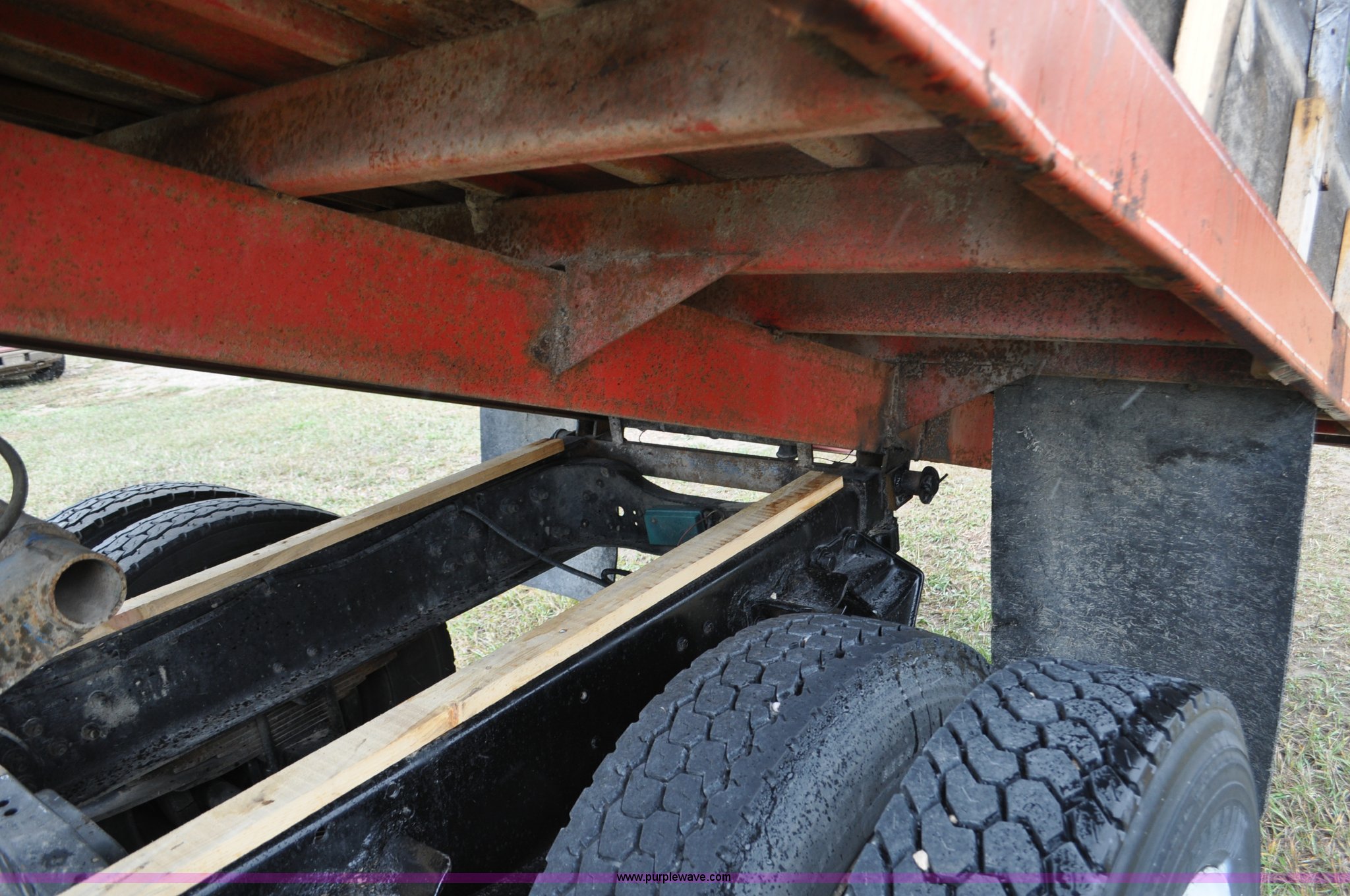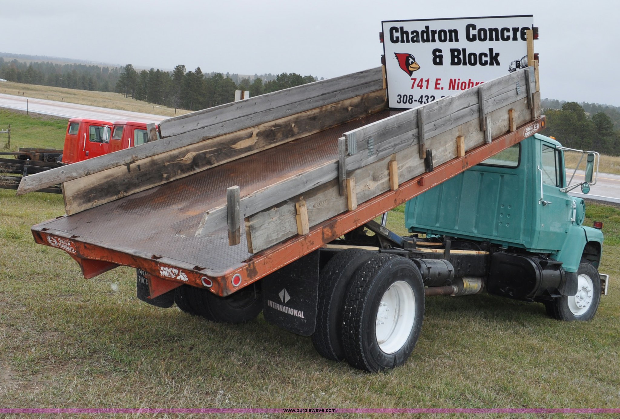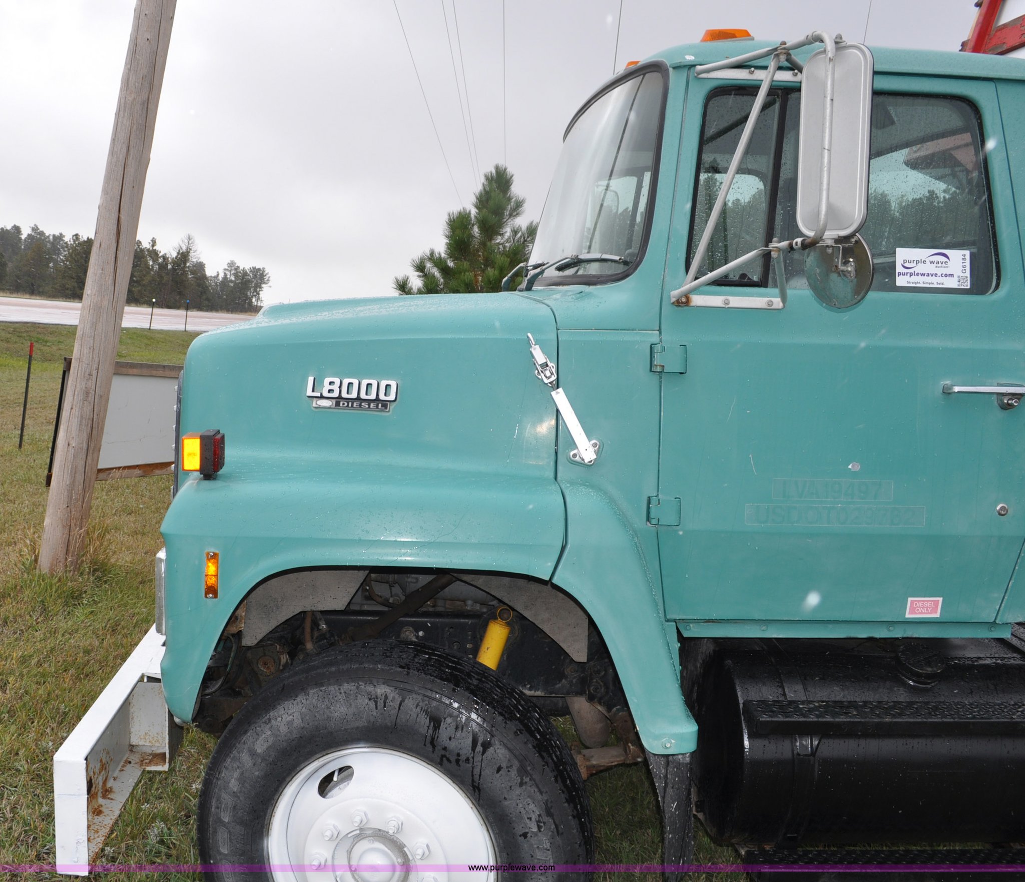 Purple Wave is selling a used Flat Bed Truck in Nebraska. This item is a 1990 Ford L8000 dump bed truck with the following: 148,955 miles on odometer, Ford 7.8L six cylinder turbo diesel engine, Six speed manual transmission, AC and heat, AM/FM, Manual windows and locks, Omaha 18'L bed, Wood side boards, Steel floor, Harsh R-105 twin cylinder hoist, Dual 75 gallon fuel tanks, Air brakes, 275/80R24.5 tires, Back edge of cab dented