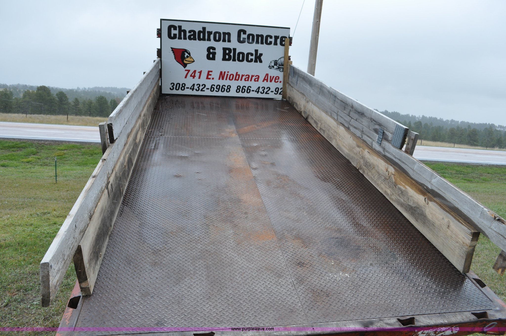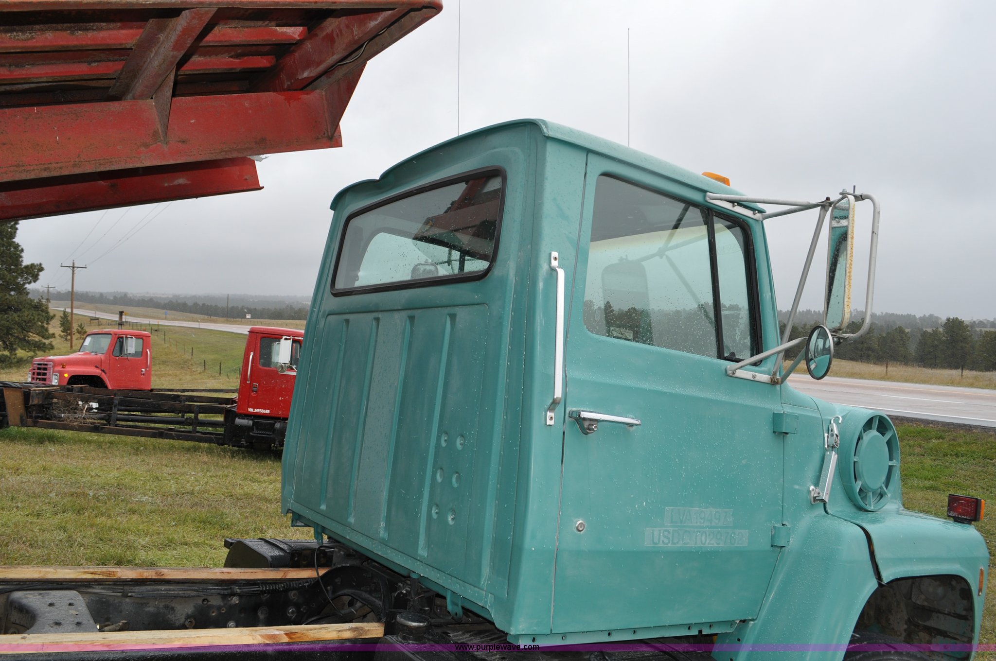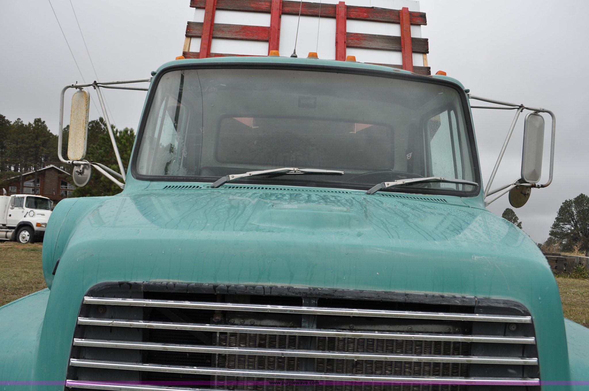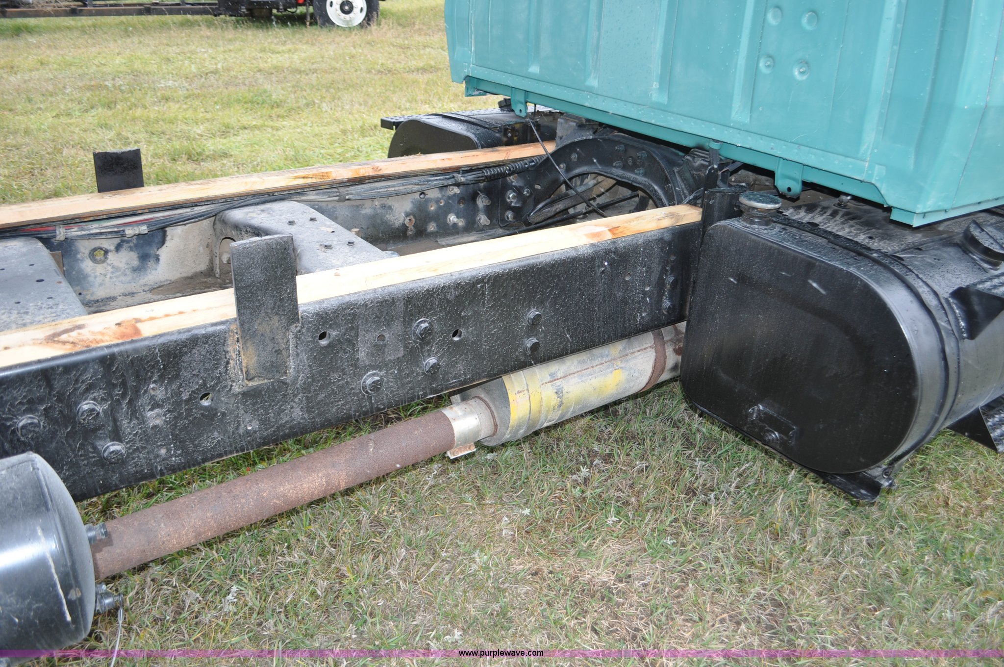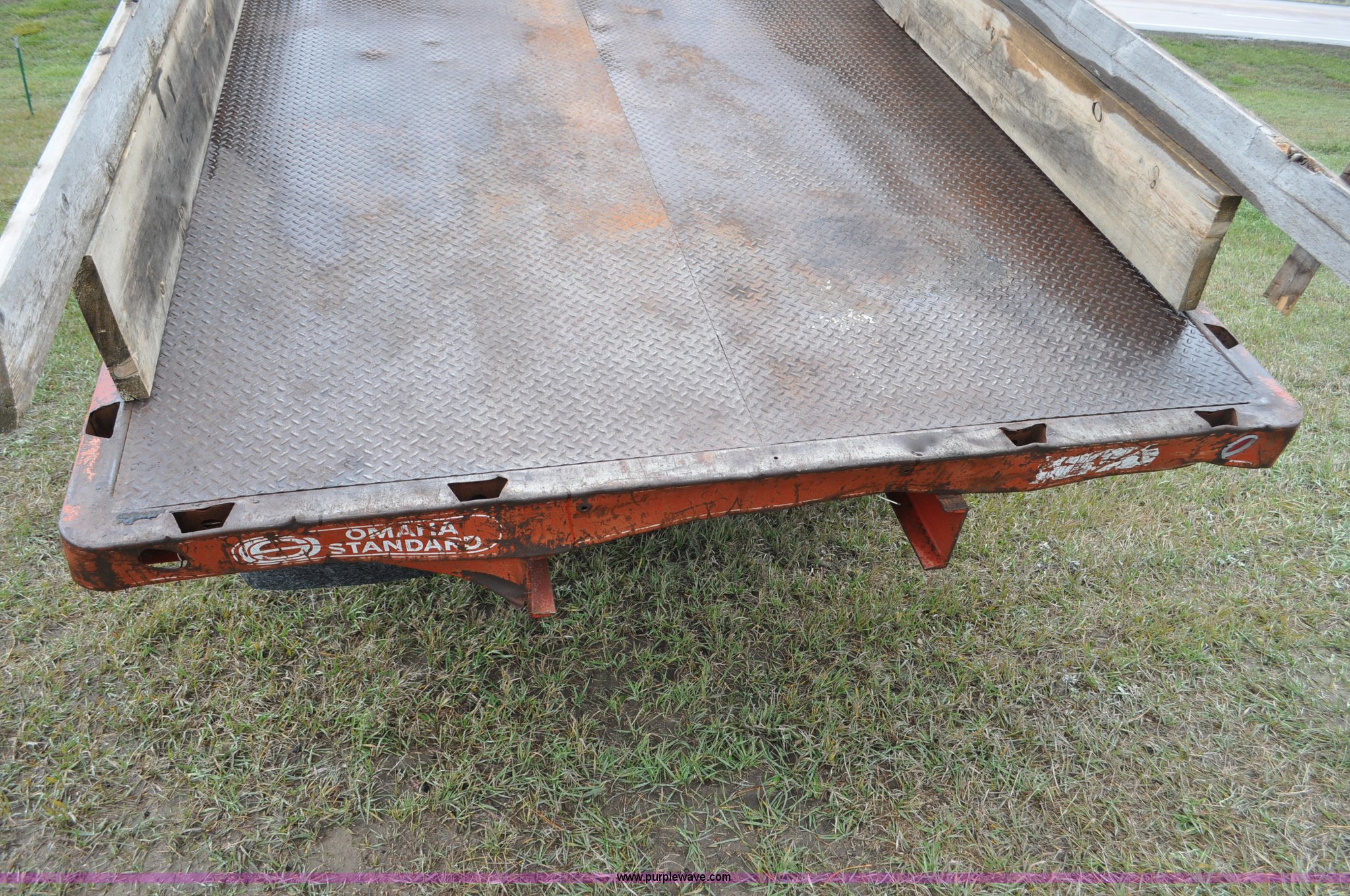 Purple Wave is selling a used Flat Bed Truck in Nebraska. This item is a 1990 Ford L8000 dump bed truck with the following: 148,955 miles on odometer, Ford 7.8L six cylinder turbo diesel engine, Six speed manual transmission, AC and heat, AM/FM, Manual windows and locks, Omaha 18'L bed, Wood side boards, Steel floor, Harsh R-105 twin cylinder hoist, Dual 75 gallon fuel tanks, Air brakes, 275/80R24.5 tires, Back edge of cab dented