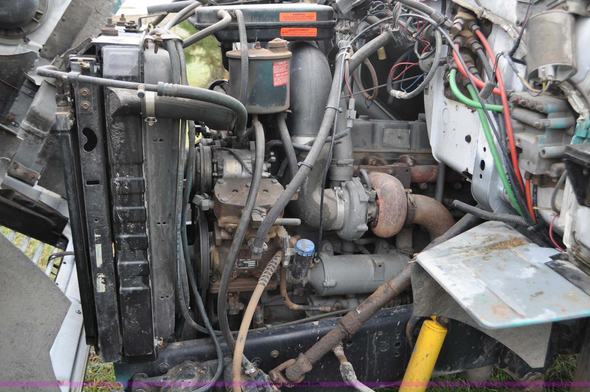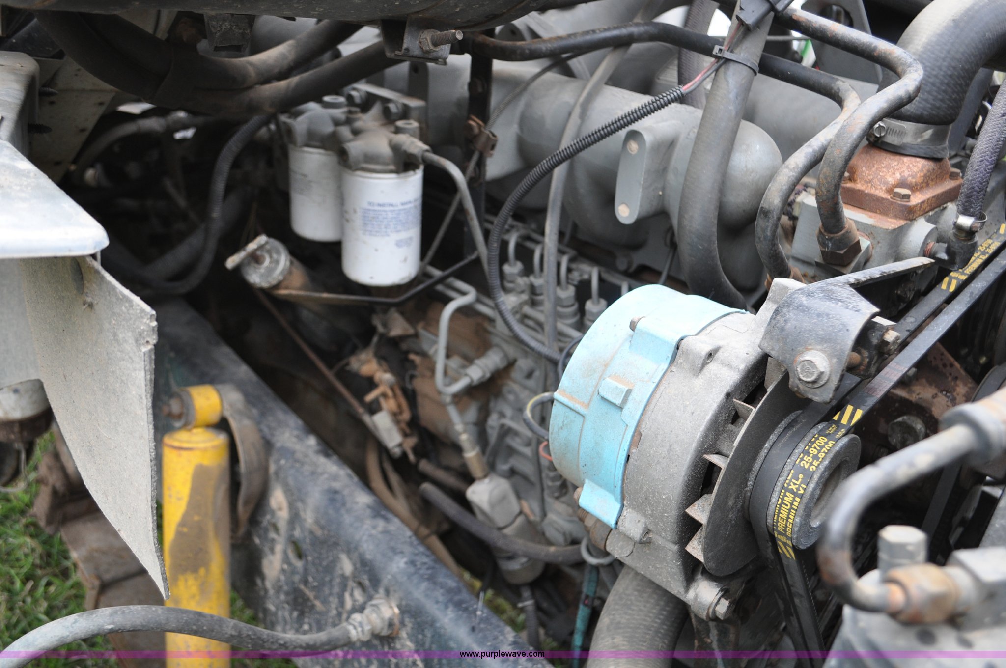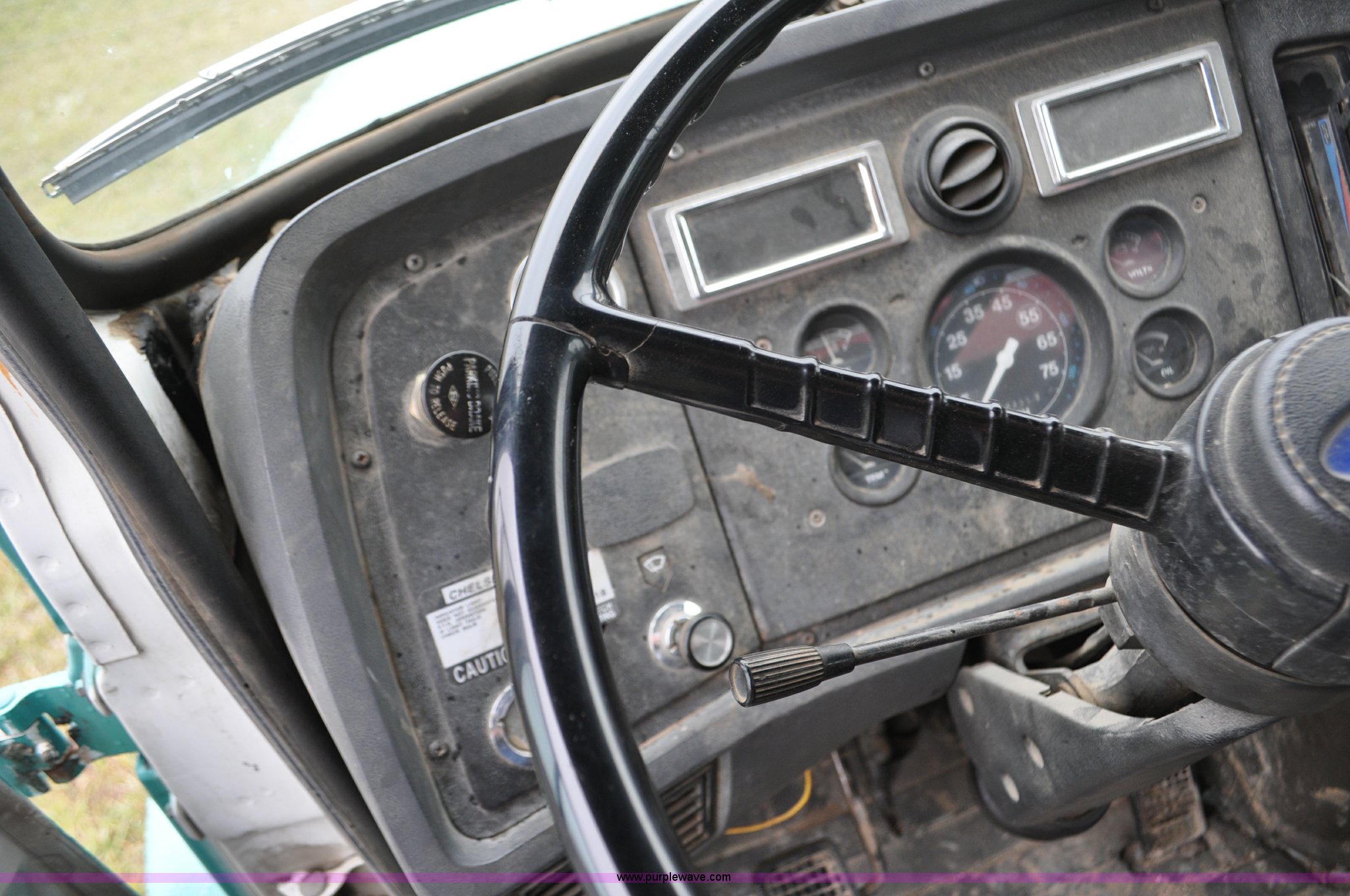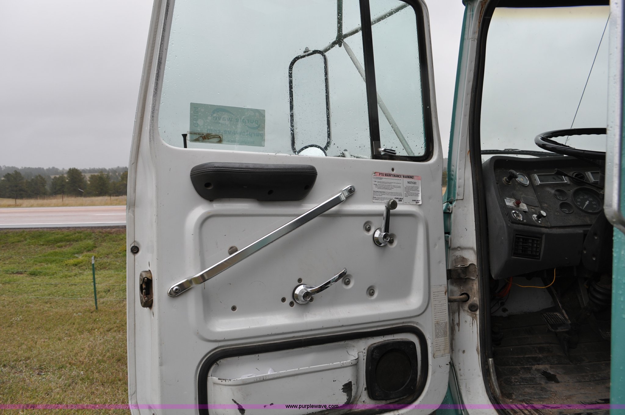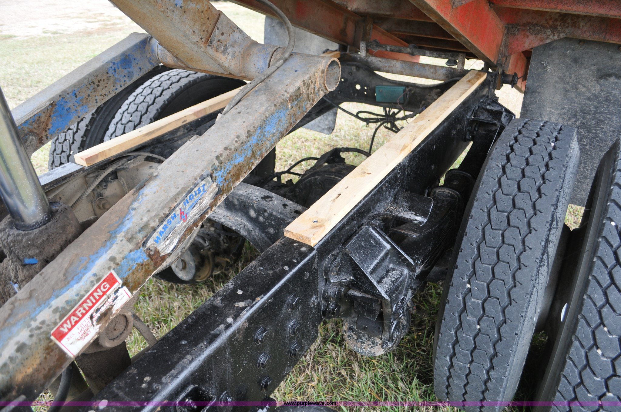 Purple Wave is selling a used Flat Bed Truck in Nebraska. This item is a 1990 Ford L8000 dump bed truck with the following: 148,955 miles on odometer, Ford 7.8L six cylinder turbo diesel engine, Six speed manual transmission, AC and heat, AM/FM, Manual windows and locks, Omaha 18'L bed, Wood side boards, Steel floor, Harsh R-105 twin cylinder hoist, Dual 75 gallon fuel tanks, Air brakes, 275/80R24.5 tires, Back edge of cab dented