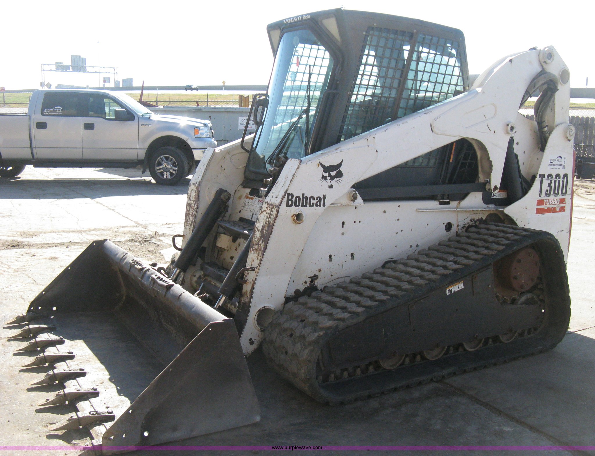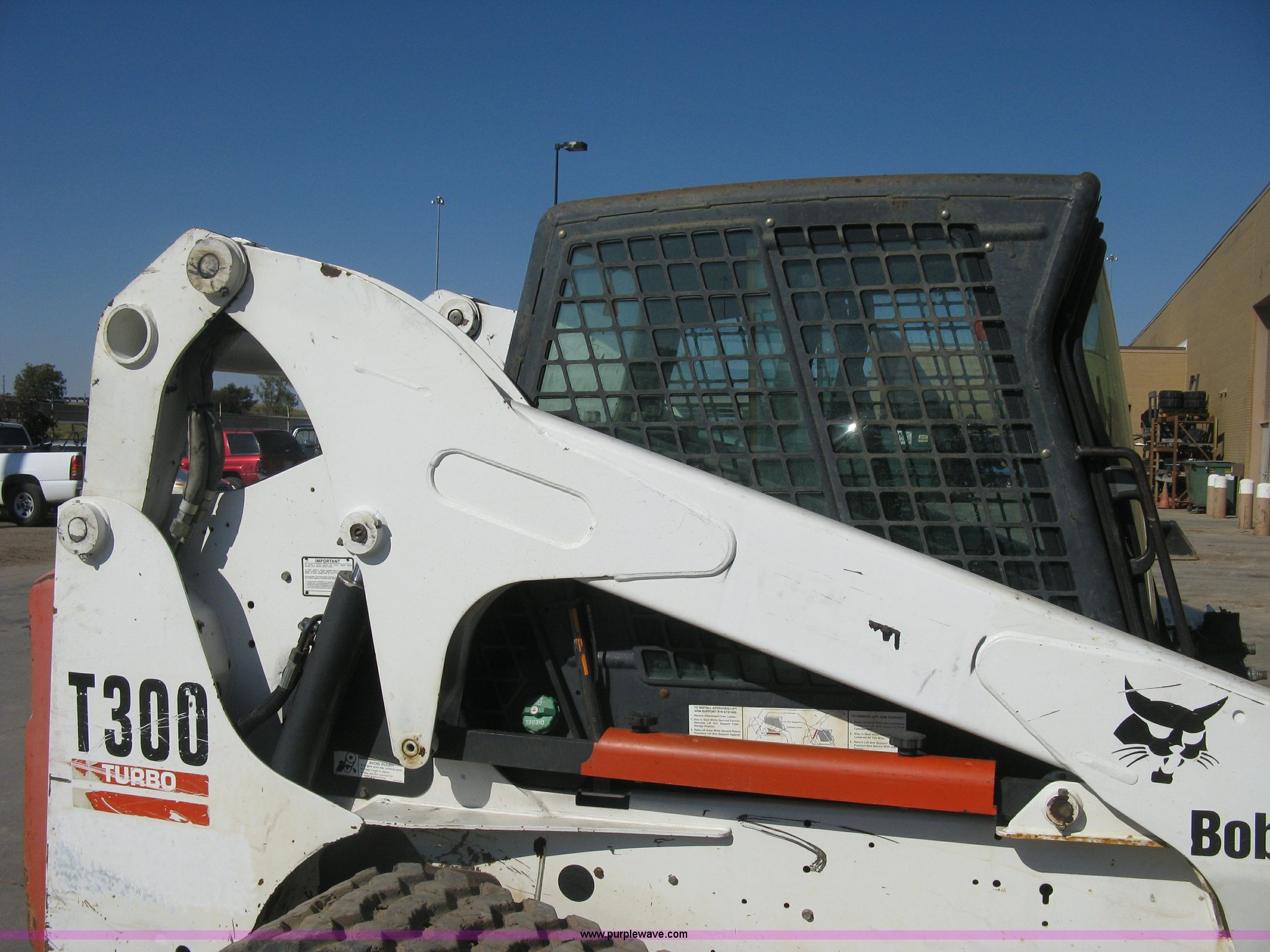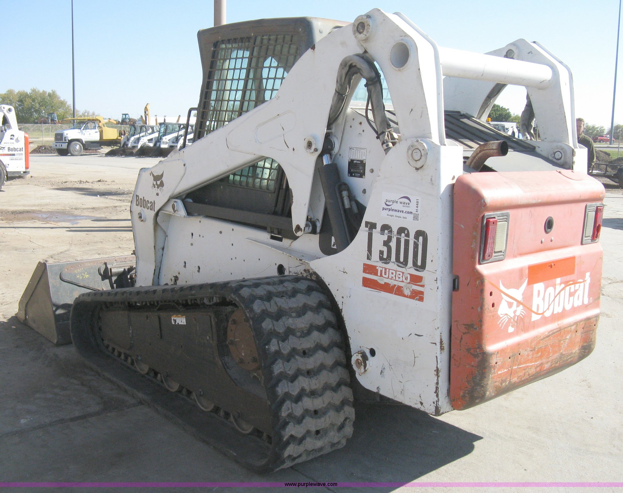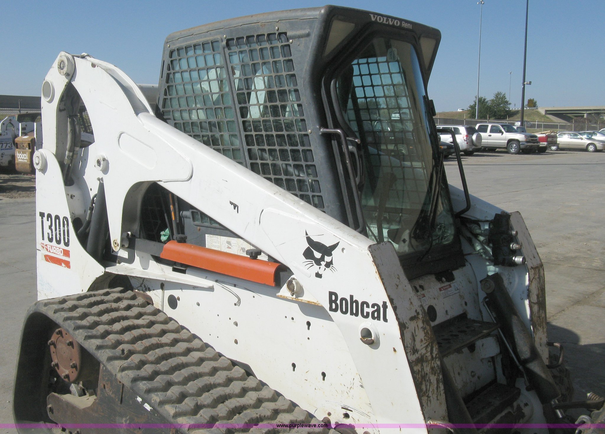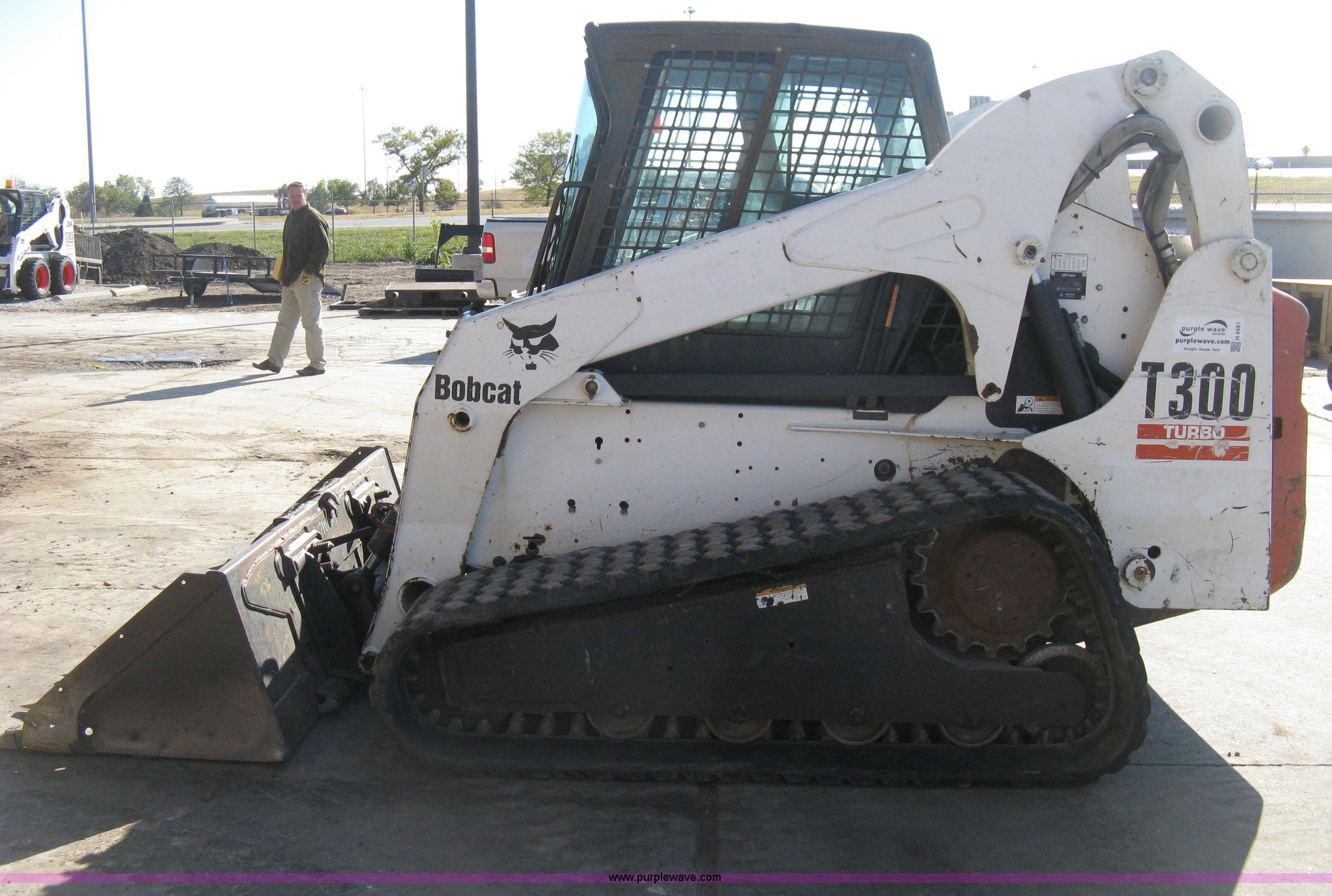 Purple Wave is selling a used Tracked Skid Steer Loader in Kansas. This item is a 2004 Bobcat T300 Turbo track skid steer with the following: 2,527 hours on meter, Kubota V3300-T four cylinder diesel engine, Traction lock override, Enclosed cab, Heat, Suspension seat, Sliding side windows, Foot pedal and hand loader control, High Flow auxiliary hydraulics, 78" toothed bucket, (8) bolt-on teeth, Quick attach, 17.5" rubber tracks, 9,702 lbs. base operating weight, Broken taillight, After-market tracks and sprockets replaced in December 2012, Injection pump, injectors, lift pump, fuel lines, and fuel tank replaced in August 2013, Serial 525412082