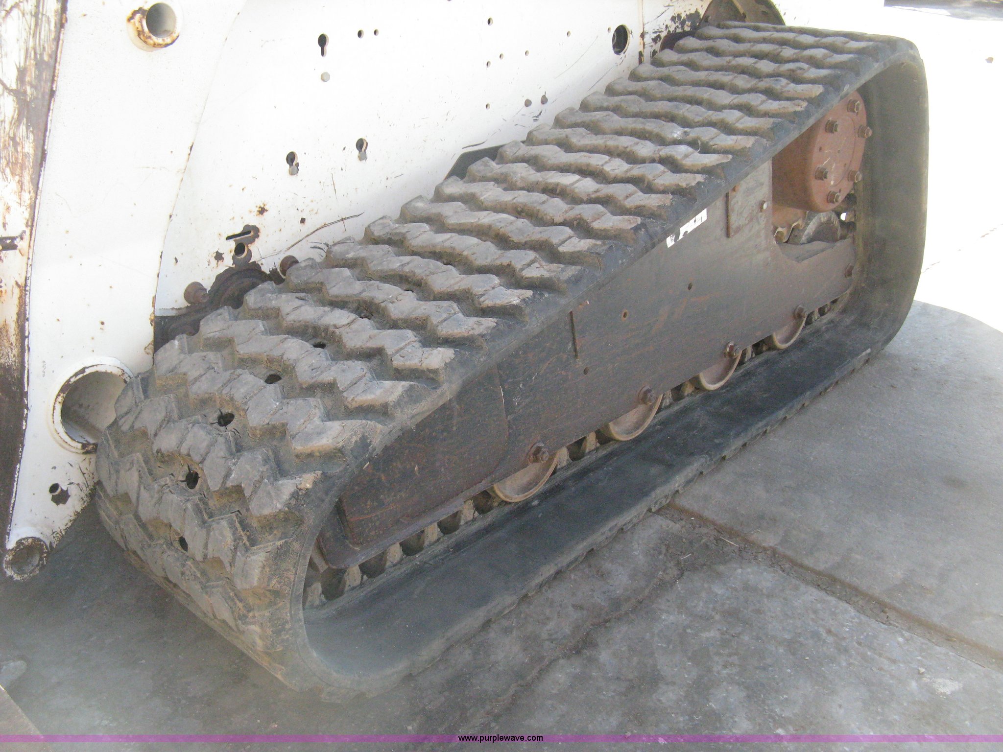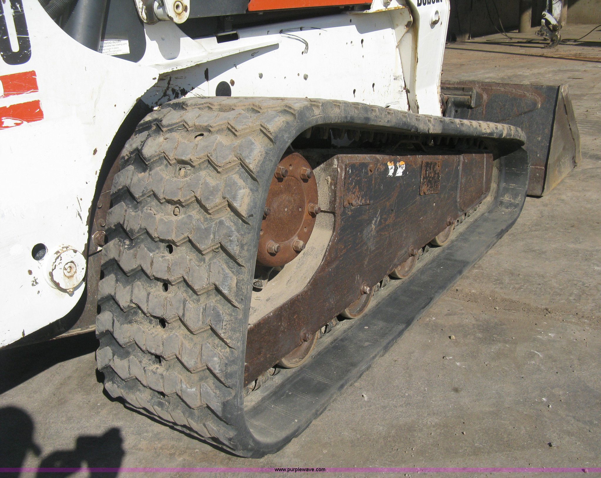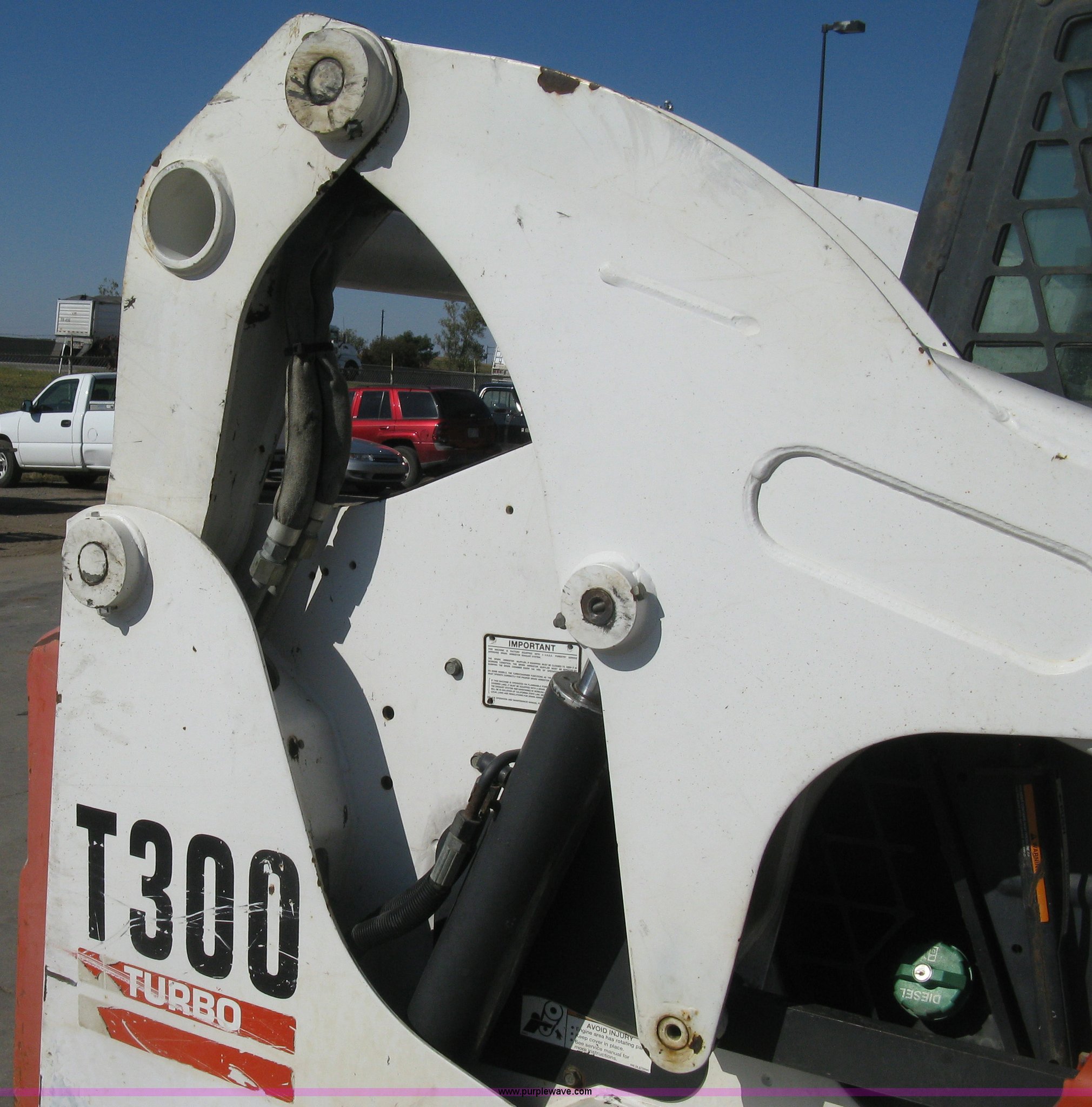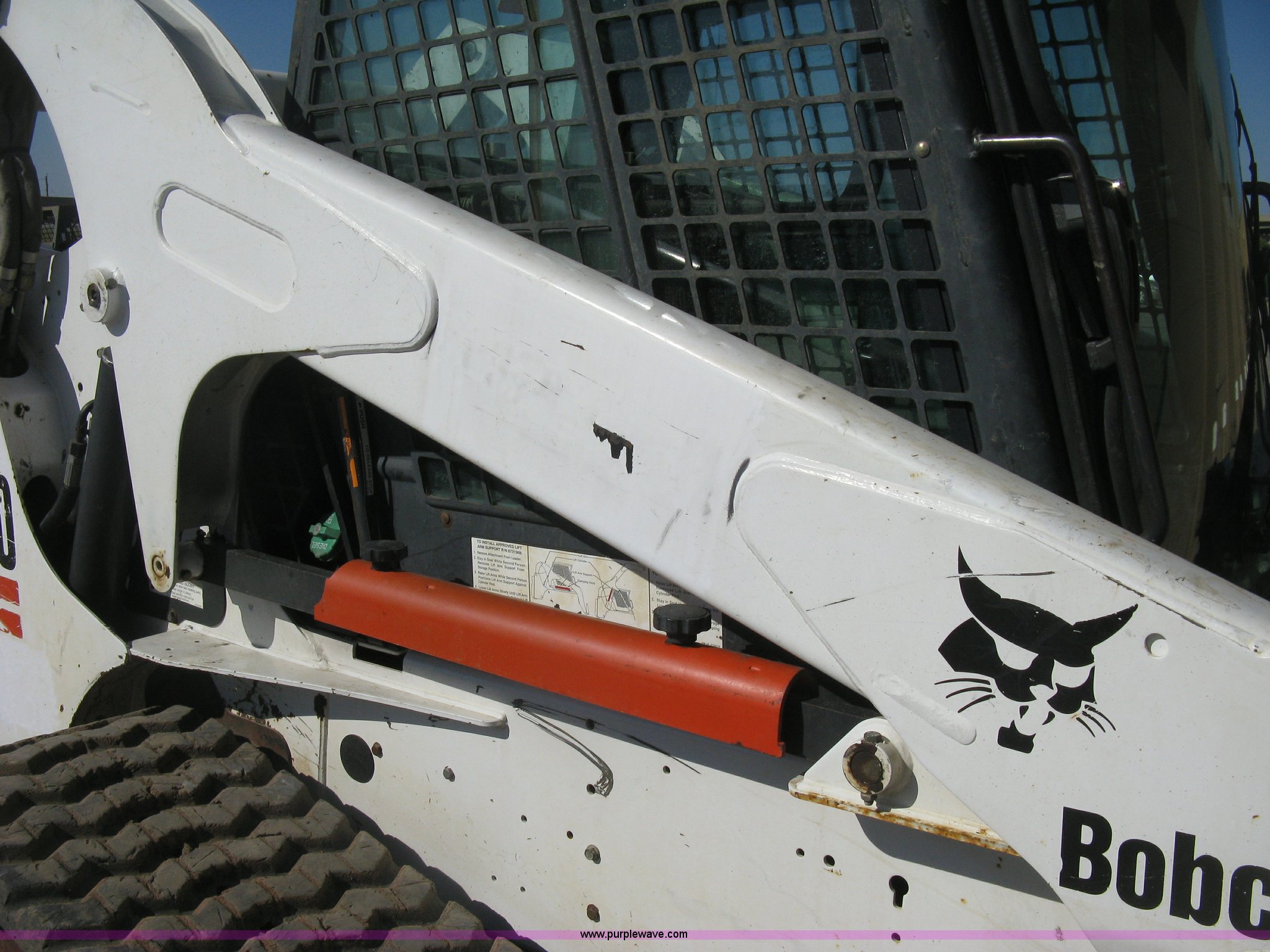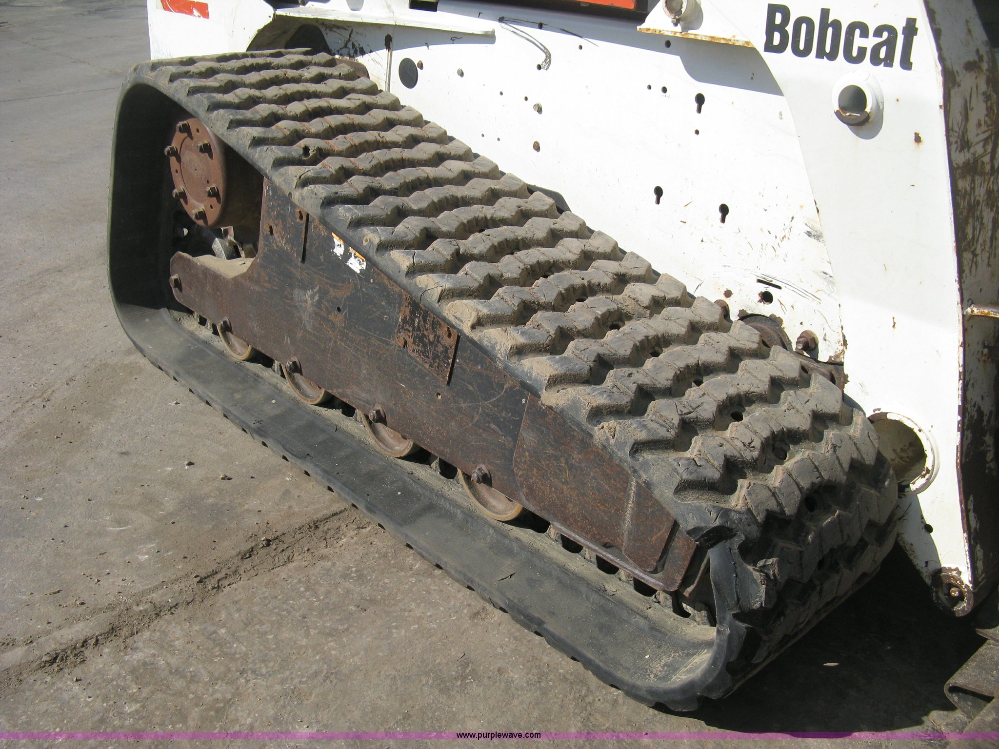 Purple Wave is selling a used Tracked Skid Steer Loader in Kansas. This item is a 2004 Bobcat T300 Turbo track skid steer with the following: 2,527 hours on meter, Kubota V3300-T four cylinder diesel engine, Traction lock override, Enclosed cab, Heat, Suspension seat, Sliding side windows, Foot pedal and hand loader control, High Flow auxiliary hydraulics, 78" toothed bucket, (8) bolt-on teeth, Quick attach, 17.5" rubber tracks, 9,702 lbs. base operating weight, Broken taillight, After-market tracks and sprockets replaced in December 2012, Injection pump, injectors, lift pump, fuel lines, and fuel tank replaced in August 2013, Serial 525412082