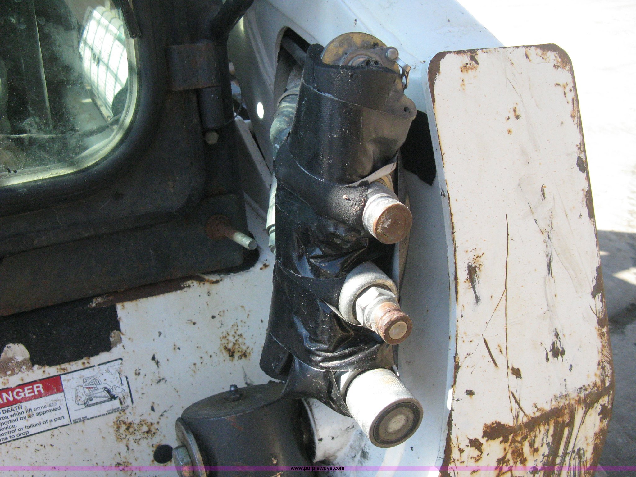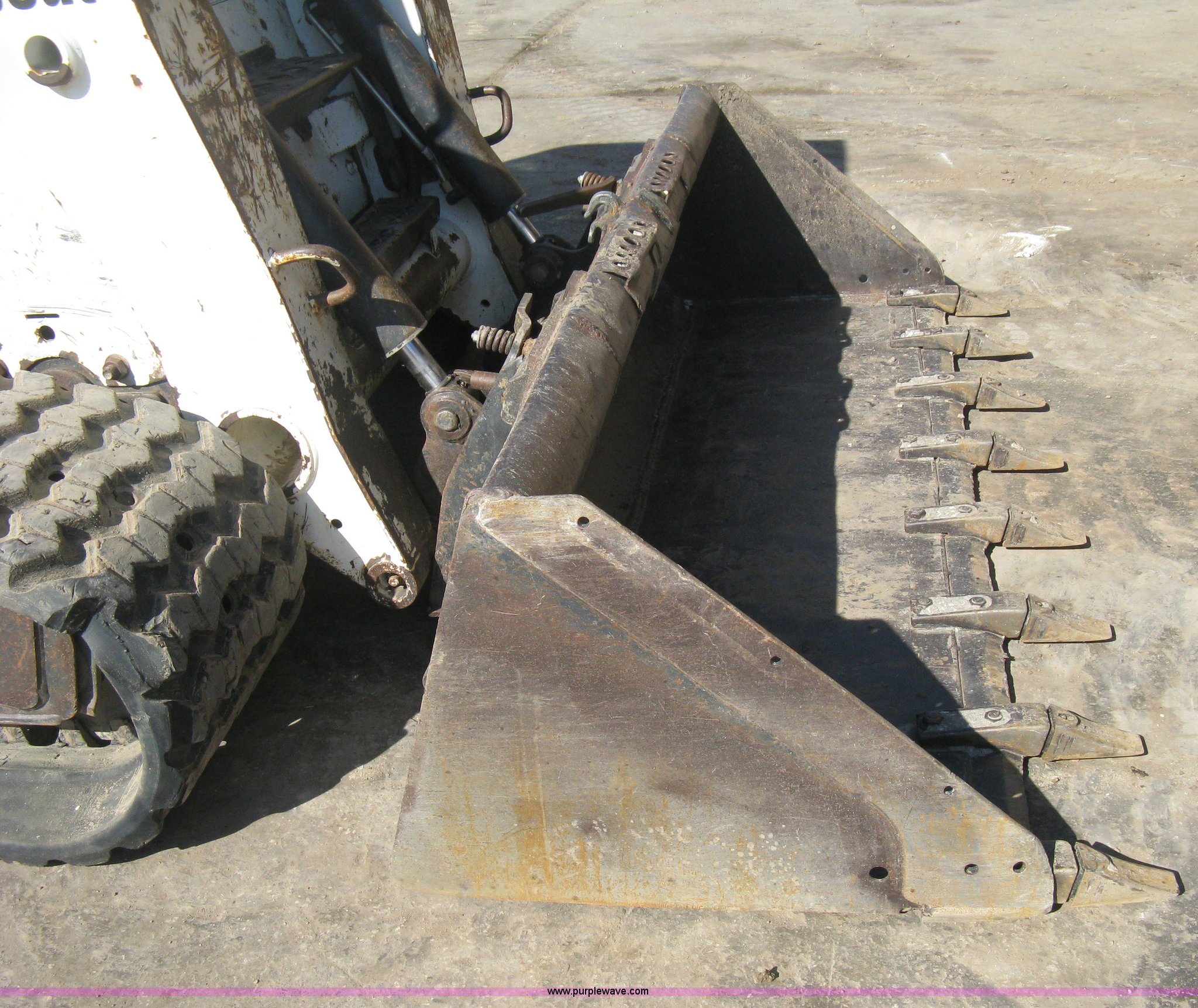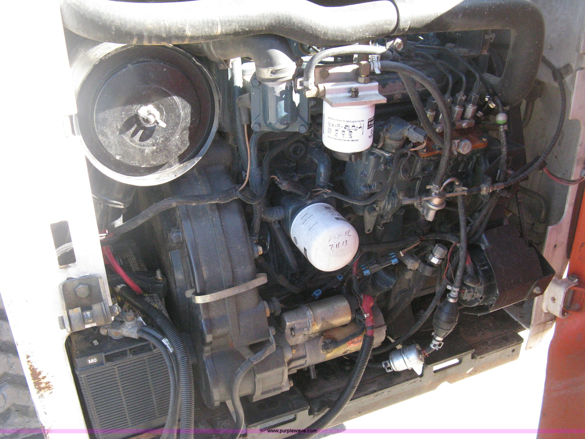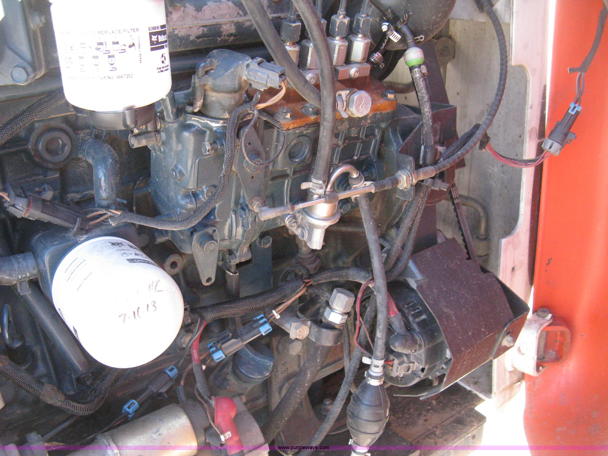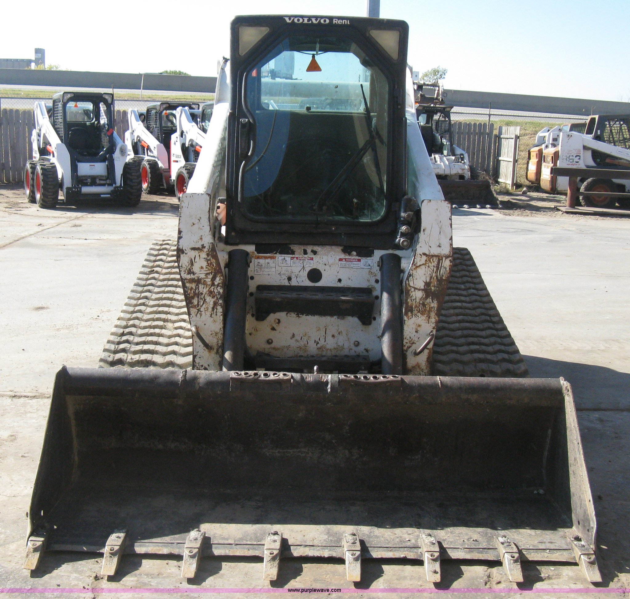 Purple Wave is selling a used Tracked Skid Steer Loader in Kansas. This item is a 2004 Bobcat T300 Turbo track skid steer with the following: 2,527 hours on meter, Kubota V3300-T four cylinder diesel engine, Traction lock override, Enclosed cab, Heat, Suspension seat, Sliding side windows, Foot pedal and hand loader control, High Flow auxiliary hydraulics, 78" toothed bucket, (8) bolt-on teeth, Quick attach, 17.5" rubber tracks, 9,702 lbs. base operating weight, Broken taillight, After-market tracks and sprockets replaced in December 2012, Injection pump, injectors, lift pump, fuel lines, and fuel tank replaced in August 2013, Serial 525412082