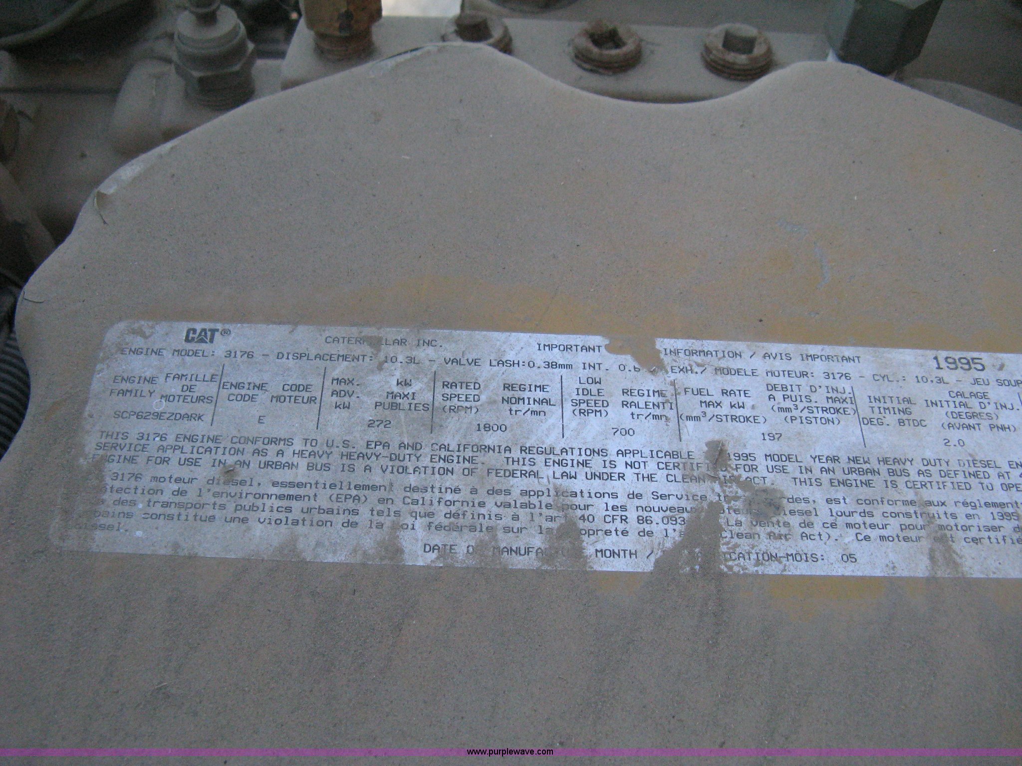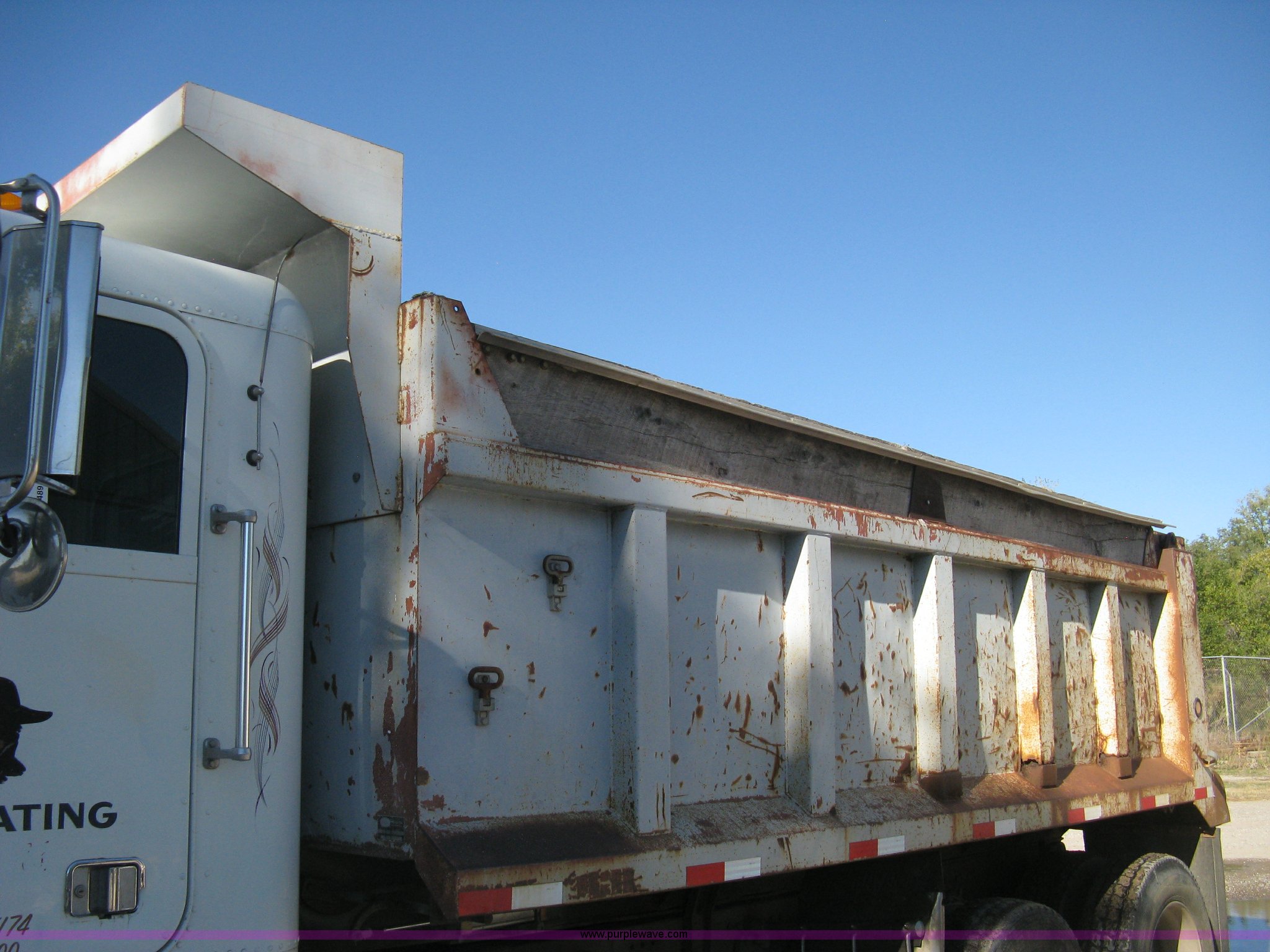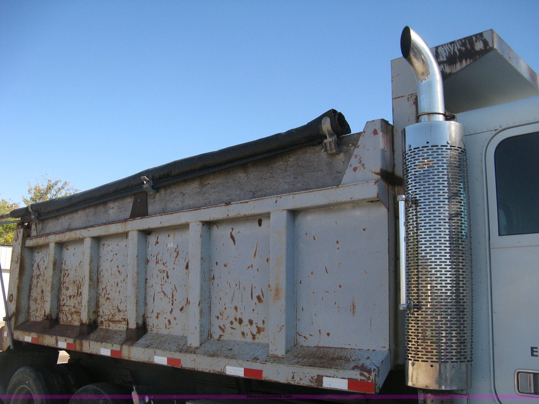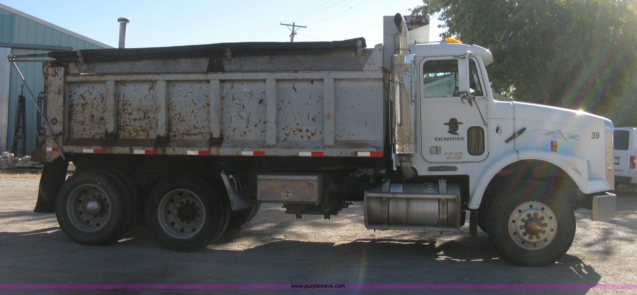 Purple Wave is selling a used Construction Dump Truck in Kansas. This item is a 1996 Freightliner FLD112SD dump truck with the following: 375,827 miles on odometer, Caterpillar 10.3L L6 diesel engine, Eaton Fuller nine speed manual transmission, AC and heat, Tilt, Cruise, AM/FM, Air suspension seat, Air ride cab, Heated mirrors, Joystick hoist control, Passenger daylight door, Heil HPT12YD15 dump bed, 15'L x 8'W, Side board extensions, Rollover tarp, Hoist ram replaced, Exterior visor, Chrome bumper, Block heater, Trailer wiring, Air remotes, Toolboxes, Pintle hitch, Single exhaust stack, 80 gallon fuel tank, Auxiliary 80 gallon off-road fuel tank, Pump and fill nozzle,, PTO, Dump valves, Air suspension, Air brakes, 198" wheelbase, Aluminum wheels, 315/80R22.5 front tires, 285/75R24.5 rear tires, GVWR 52,000 lbs, FAWR 12,000 lbs, IAWR 20,000 lbs, RAWR 20,000 lbs, DOT inspection completed in 2012, Rod bearing replaced in 2010, Fuel injectors replaced in 2010, Rust damage to side wall supports, Unit# 39