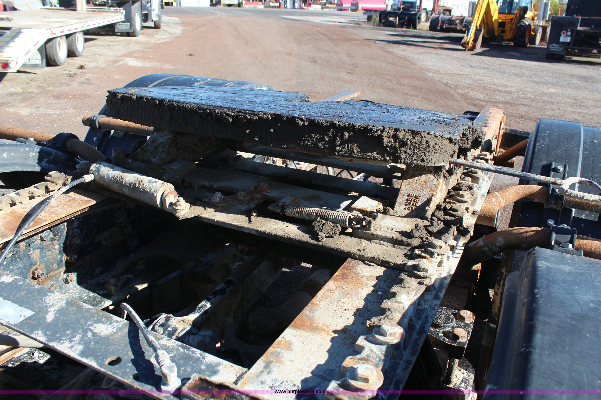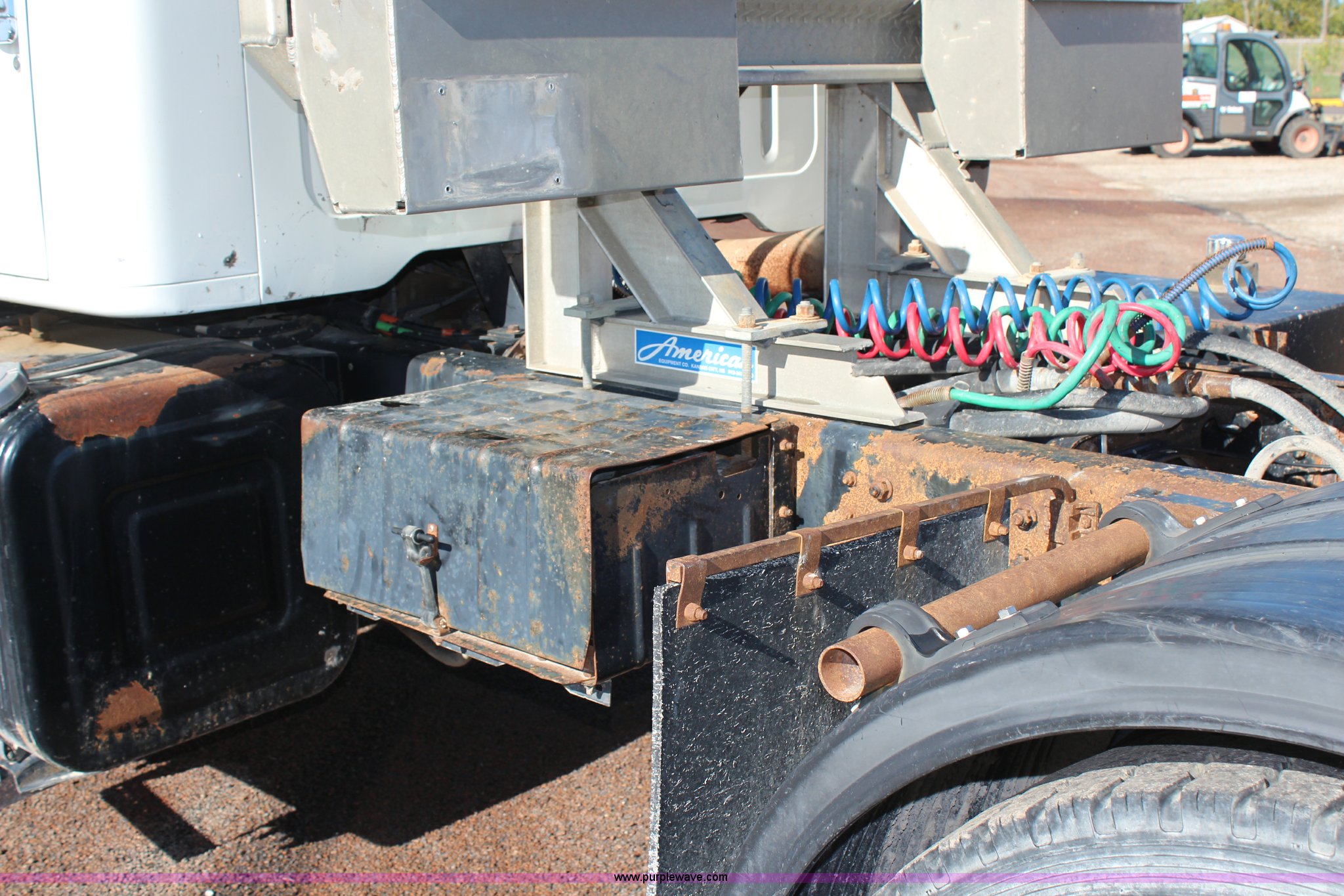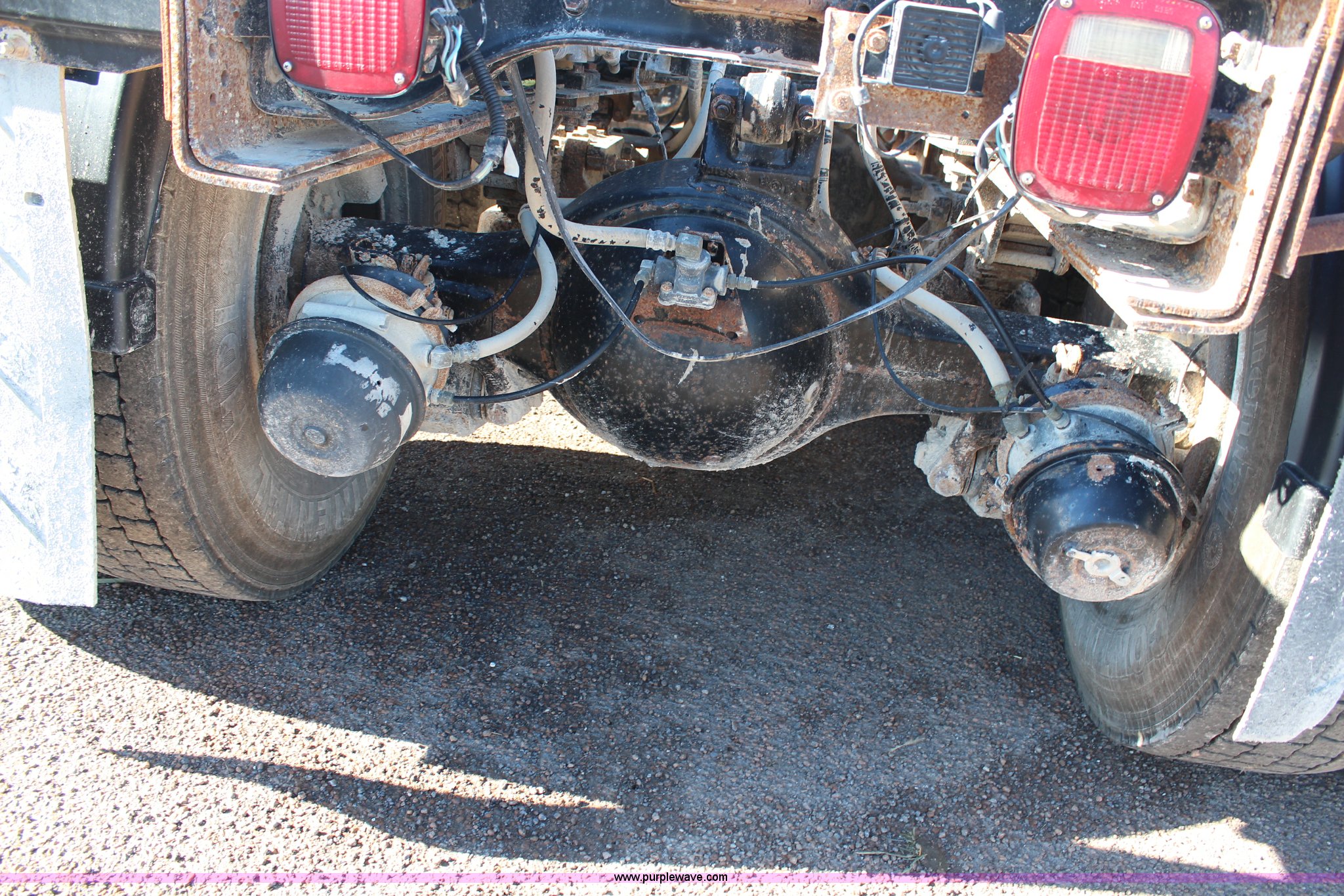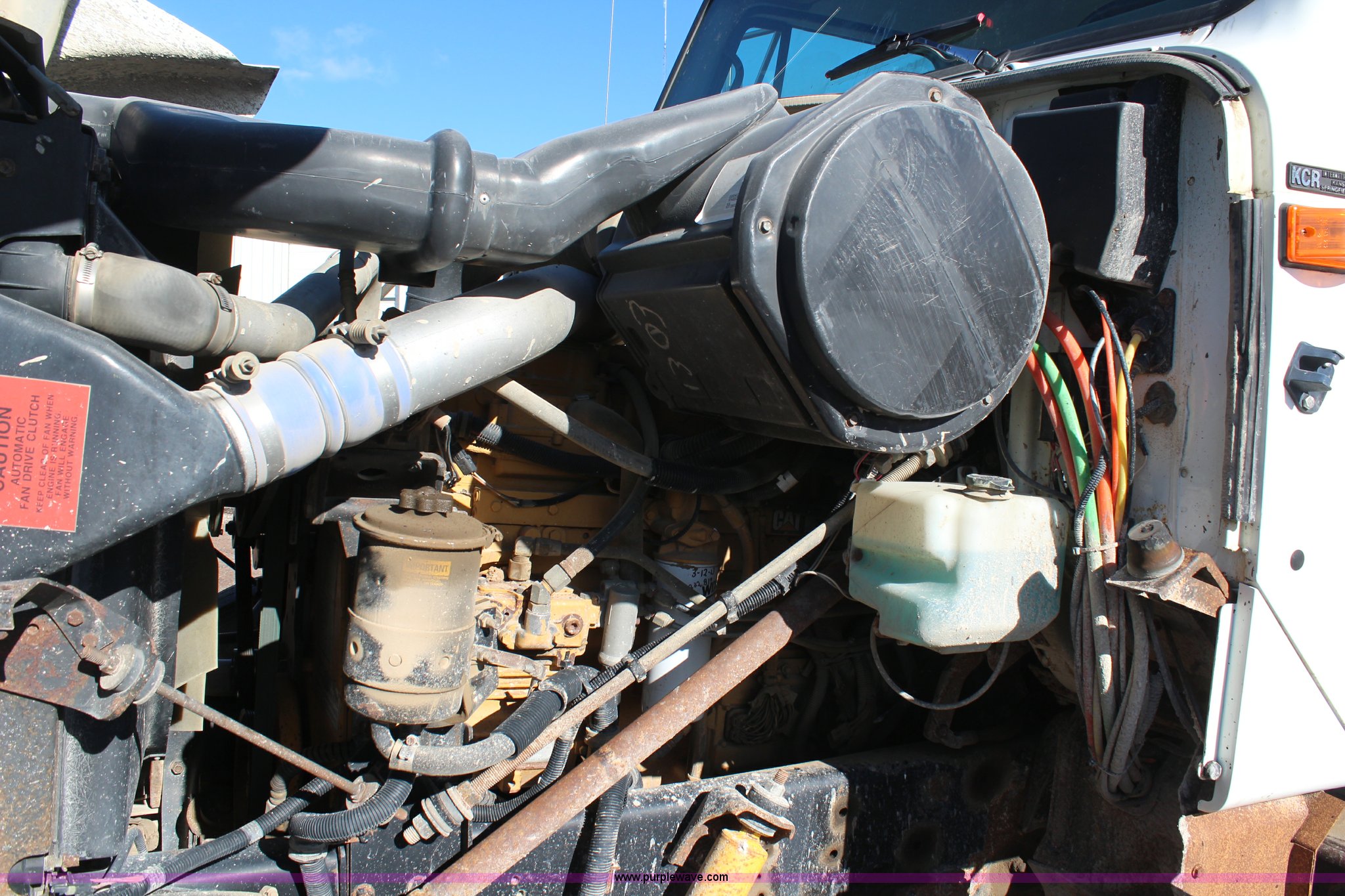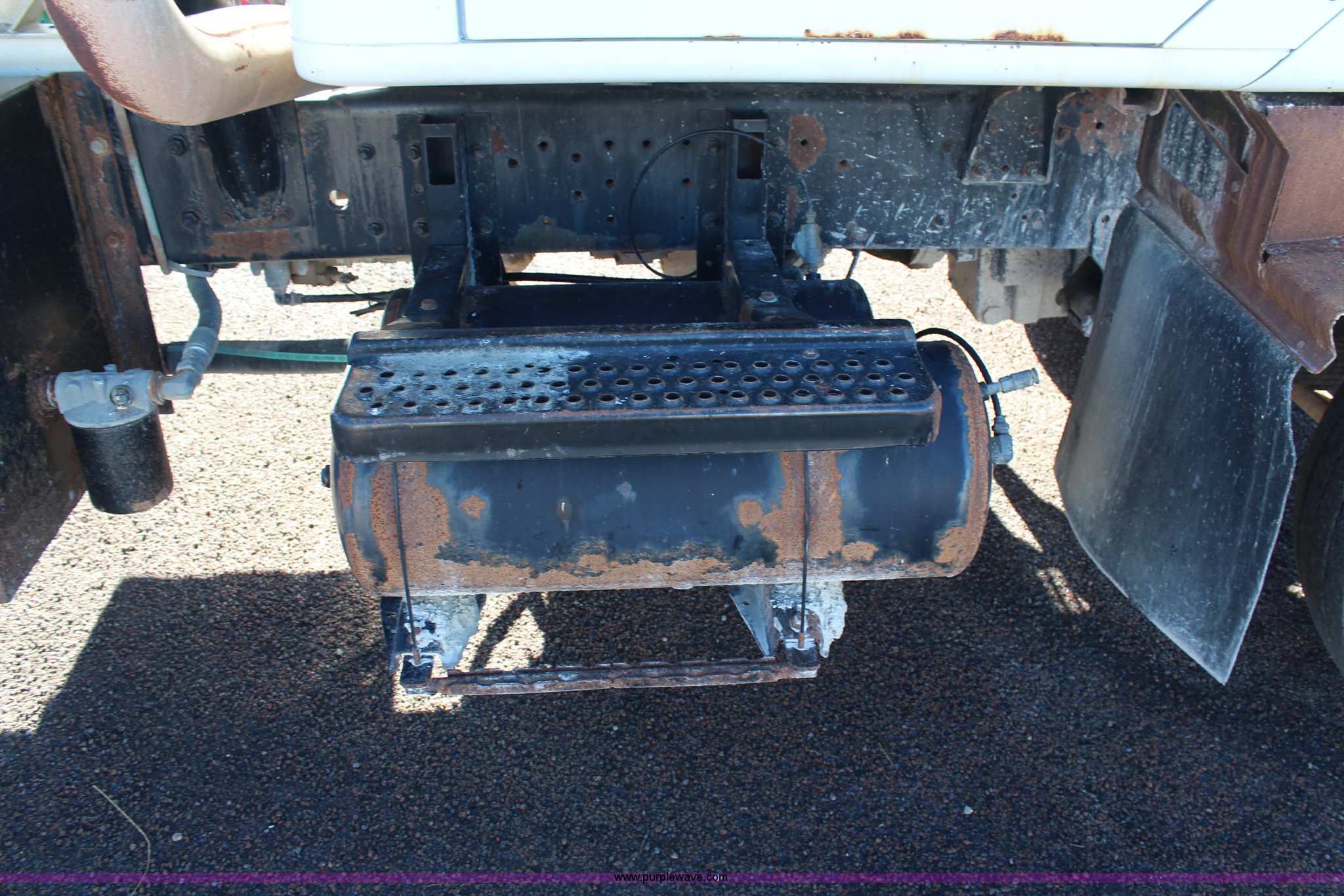 Purple Wave is selling a used Flat Bed Truck in Kansas. This item is a 2002 International F2574 semi truck with the following: 236,139 miles on odometer, 11,048 hours on meter, Caterpillar C12 12.0L L6 diesel engine, Eaton Fuller automatic transmission, Twin screw, AC and heat, Cruise, Heated mirrors, Air suspension seat, Headache rack, Window, Storage, Chain hanger, Block heater, 100 gallon fuel tank, Single rear exhaust stack, PTO, Wet kit, Spring suspension, Air brakes, Jake brake, Double framed, 180" wheelbase, 11R22.5 tires, Unit# 59