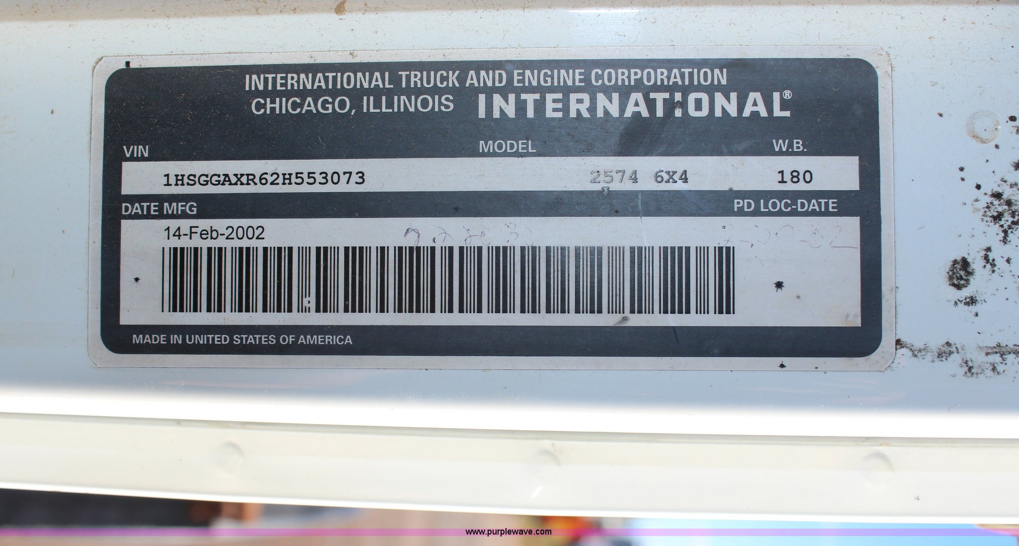 2002 International F2574 semi truck has sold in Leavenworth, Kansas for $20900. Item H6796 sold on November 14th, 2013.