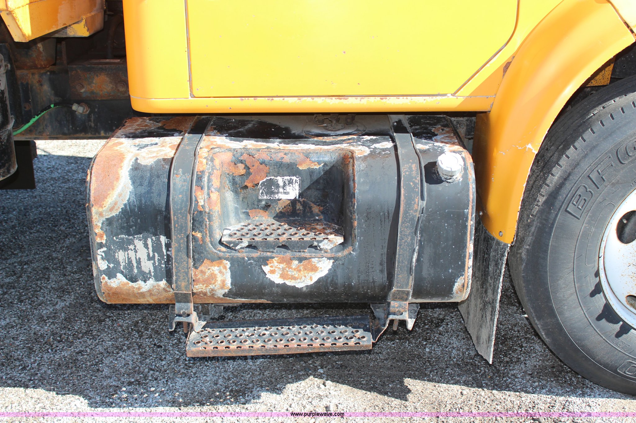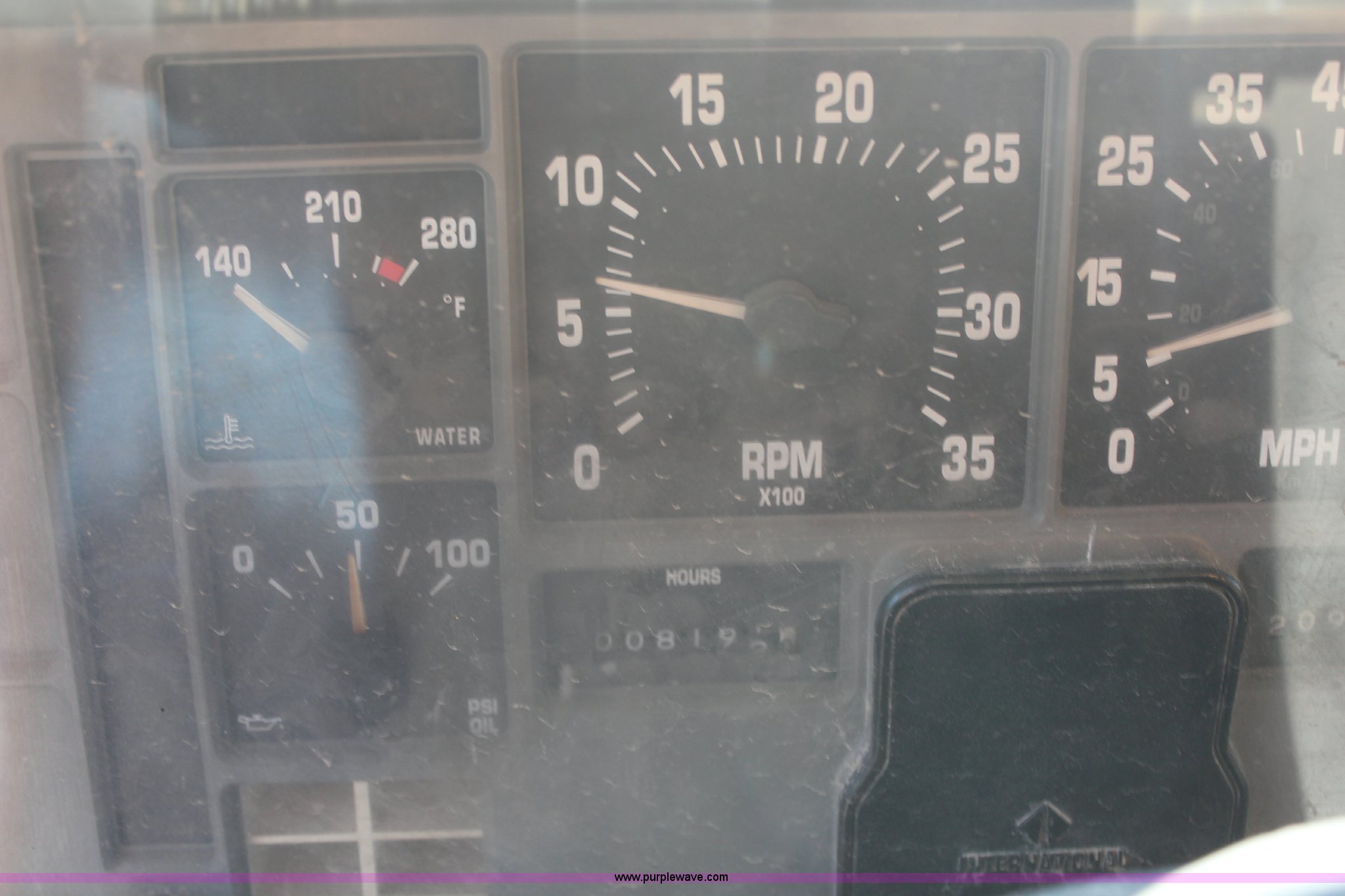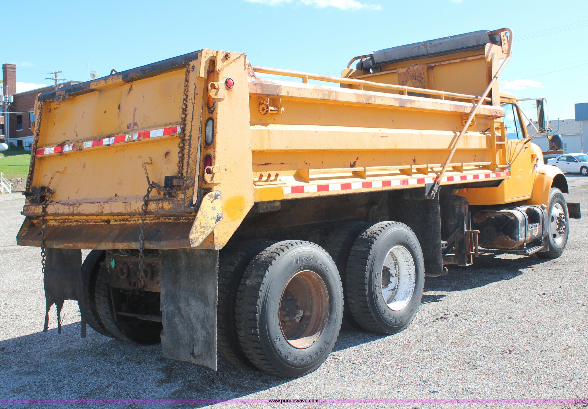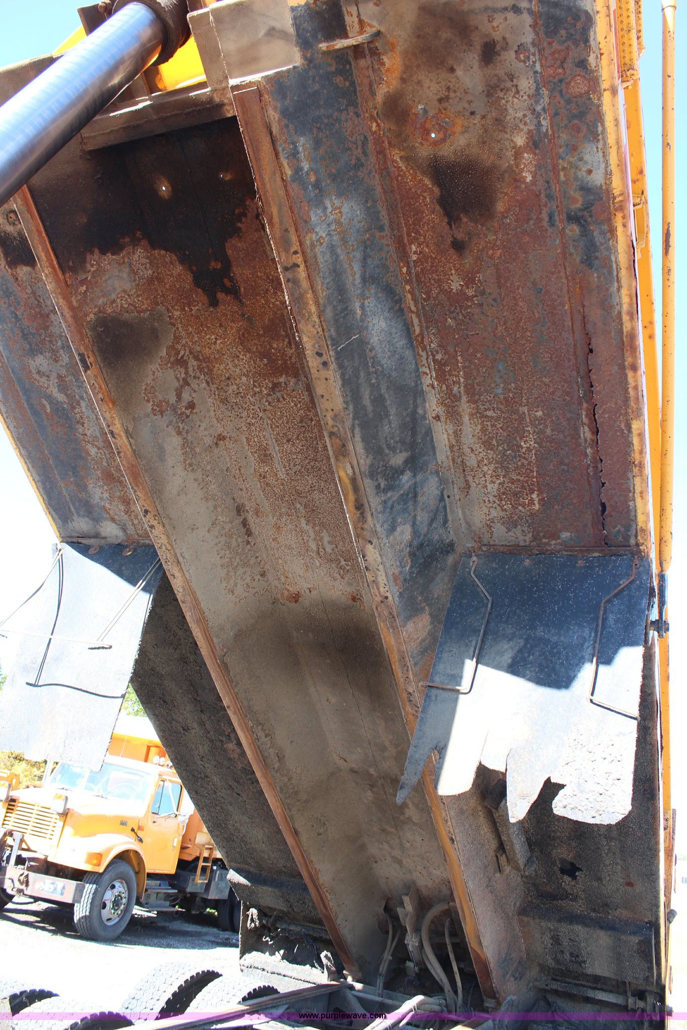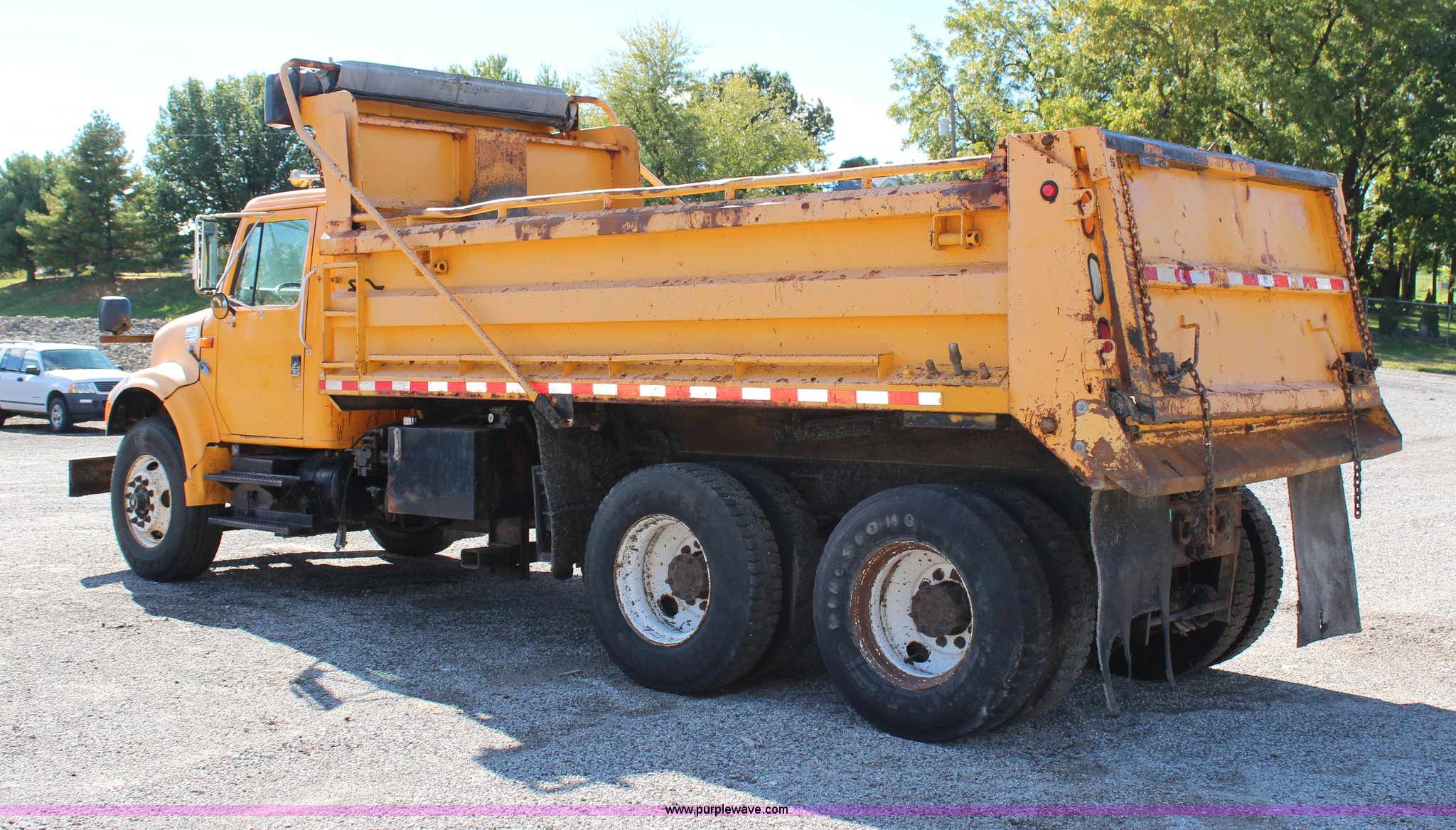 Purple Wave is selling a used Construction Dump Truck in Missouri. This item is a 1999 International 4900 dump truck with the following: 209,148 miles on odometer, 8,192 hours on meter, International DT530 8.7L L6 diesel engine, Allison MD3060 automatic transmission, Twin screw, Heat, Cruise, AM/FM, Air suspension seat, 16'L dump bed, Electric tarp, Plow hydraulic controls, Side mount plow bracket, Block heater, 70 gallon fuel tank, Front mount PTO, Spring suspension, Air brakes, 206" wheelbase, 315/80R22.5 tires, GVWR 56,000 lbs, FAWR 16,000 lbs, IAWR 20,000 lbs, RAWR 20,000 lbs, Transmission output shaft seal leaks, Cam shaft follower gasket leaks, Fiberglass damage on left fender, Rust, MoDOT ID 5899