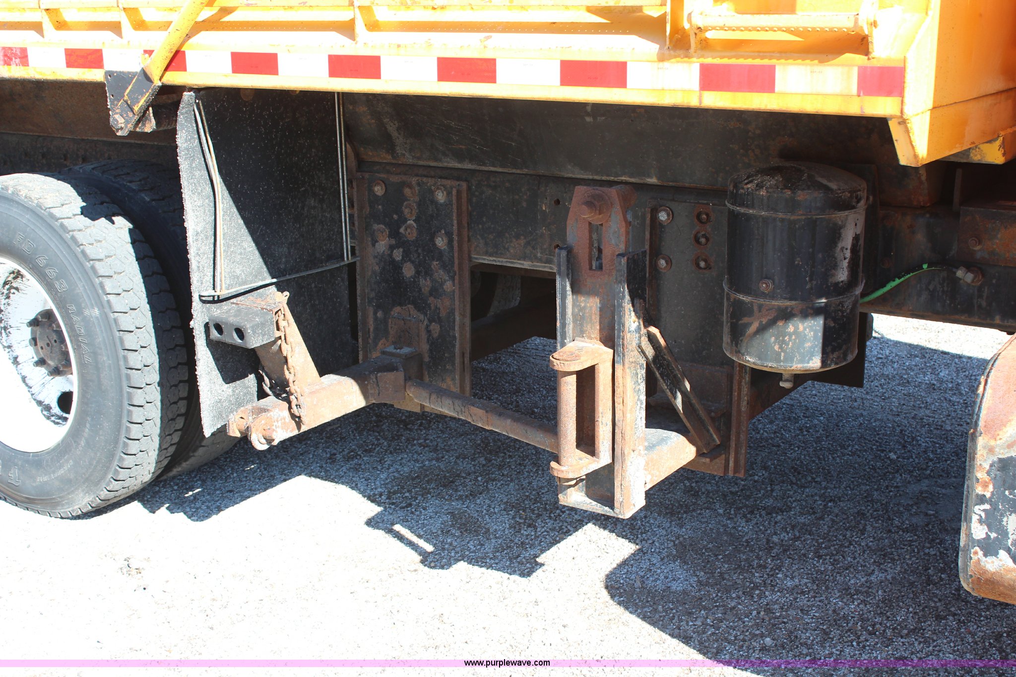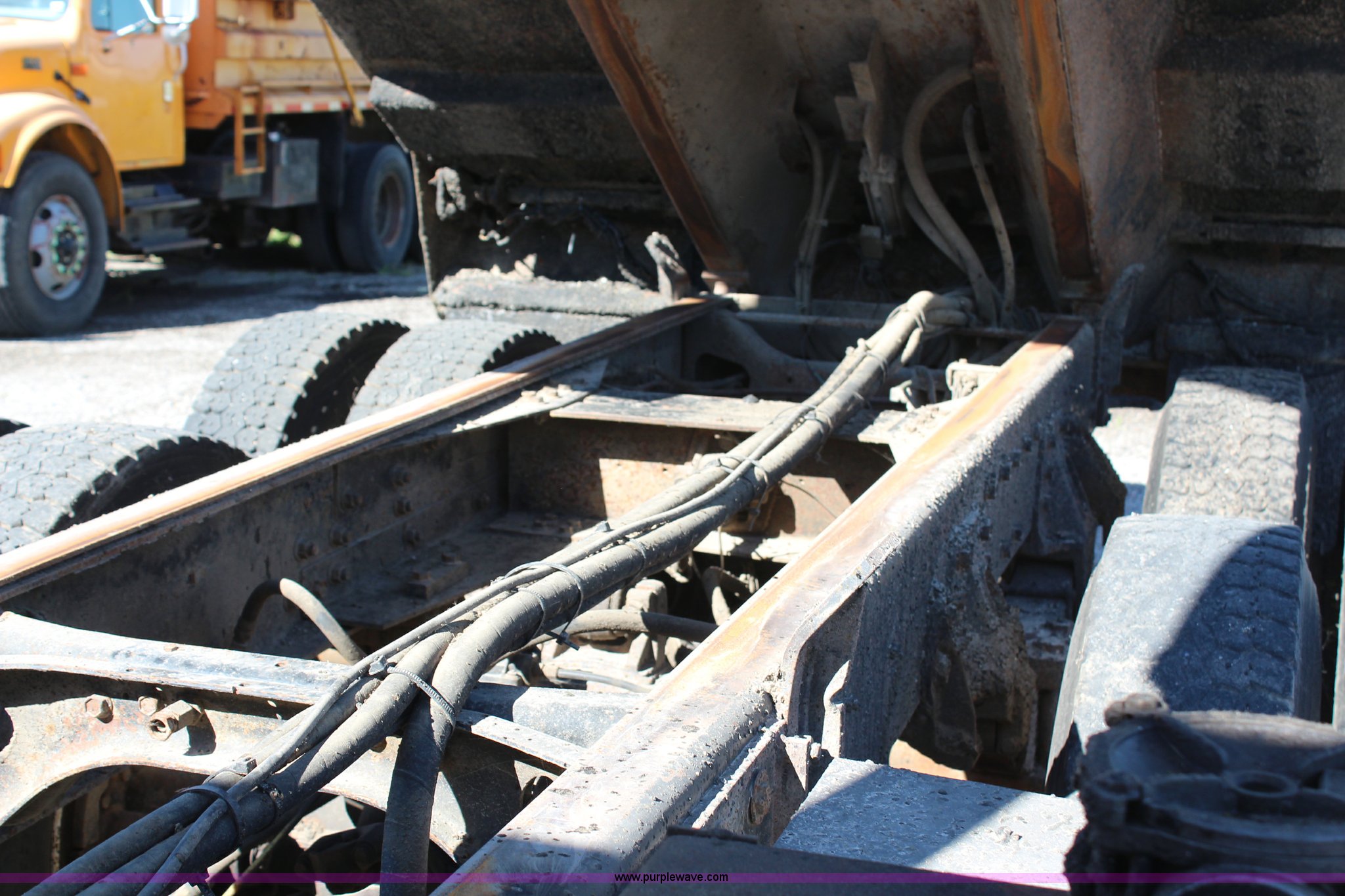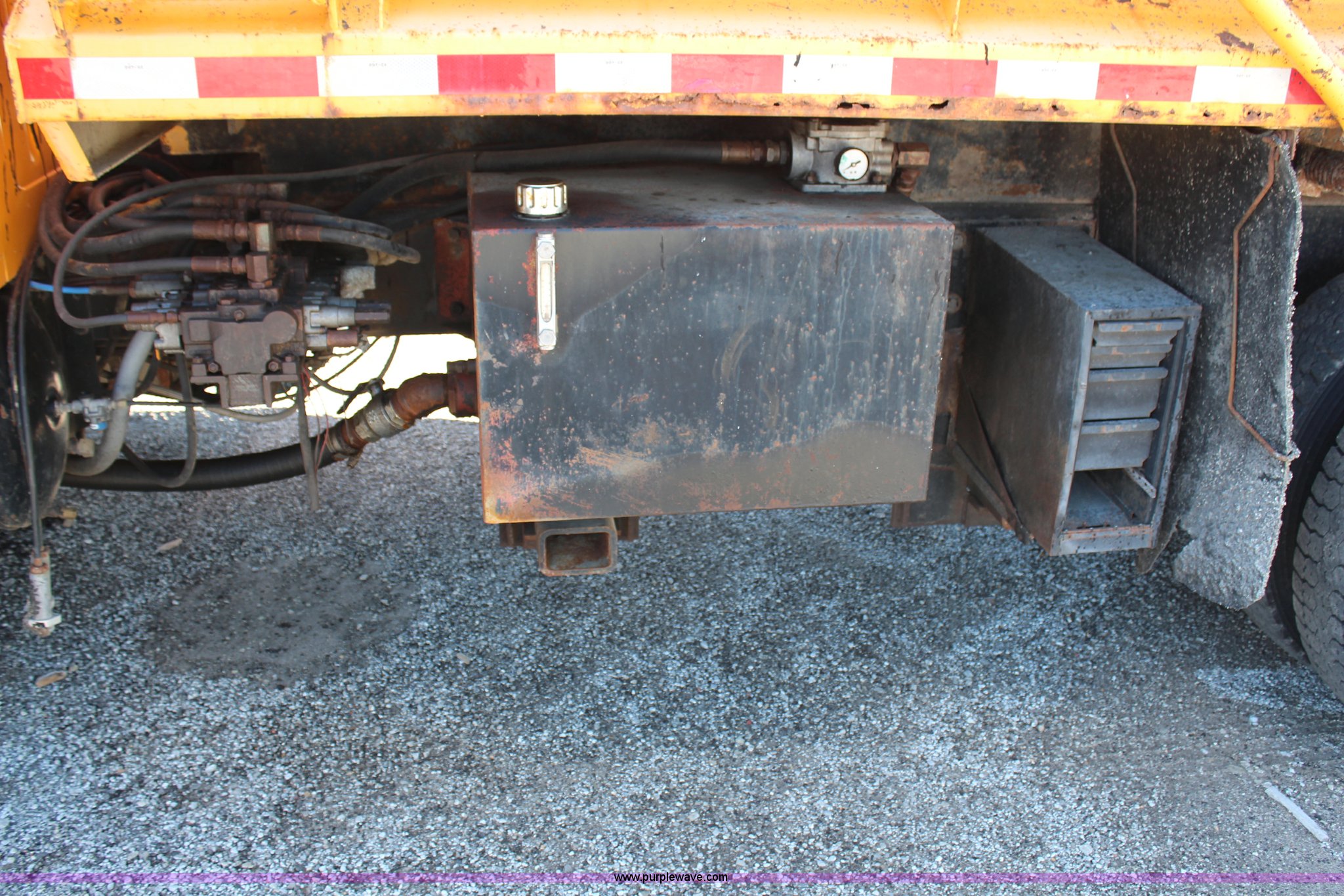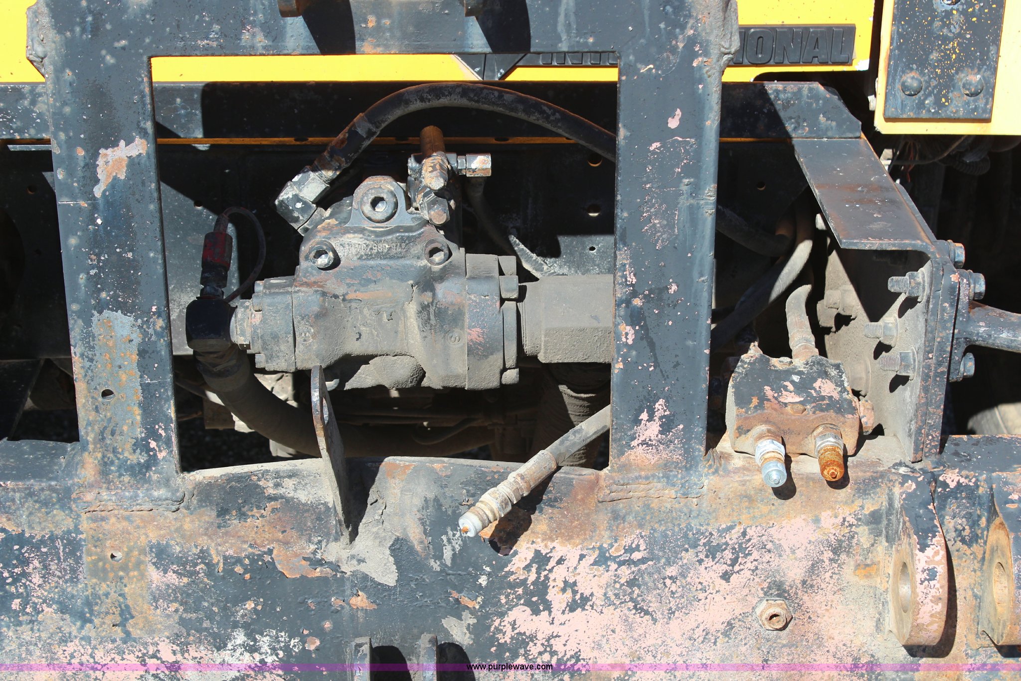 Purple Wave is selling a used Construction Dump Truck in Missouri. This item is a 1999 International 4900 dump truck with the following: 209,148 miles on odometer, 8,192 hours on meter, International DT530 8.7L L6 diesel engine, Allison MD3060 automatic transmission, Twin screw, Heat, Cruise, AM/FM, Air suspension seat, 16'L dump bed, Electric tarp, Plow hydraulic controls, Side mount plow bracket, Block heater, 70 gallon fuel tank, Front mount PTO, Spring suspension, Air brakes, 206" wheelbase, 315/80R22.5 tires, GVWR 56,000 lbs, FAWR 16,000 lbs, IAWR 20,000 lbs, RAWR 20,000 lbs, Transmission output shaft seal leaks, Cam shaft follower gasket leaks, Fiberglass damage on left fender, Rust, MoDOT ID 5899