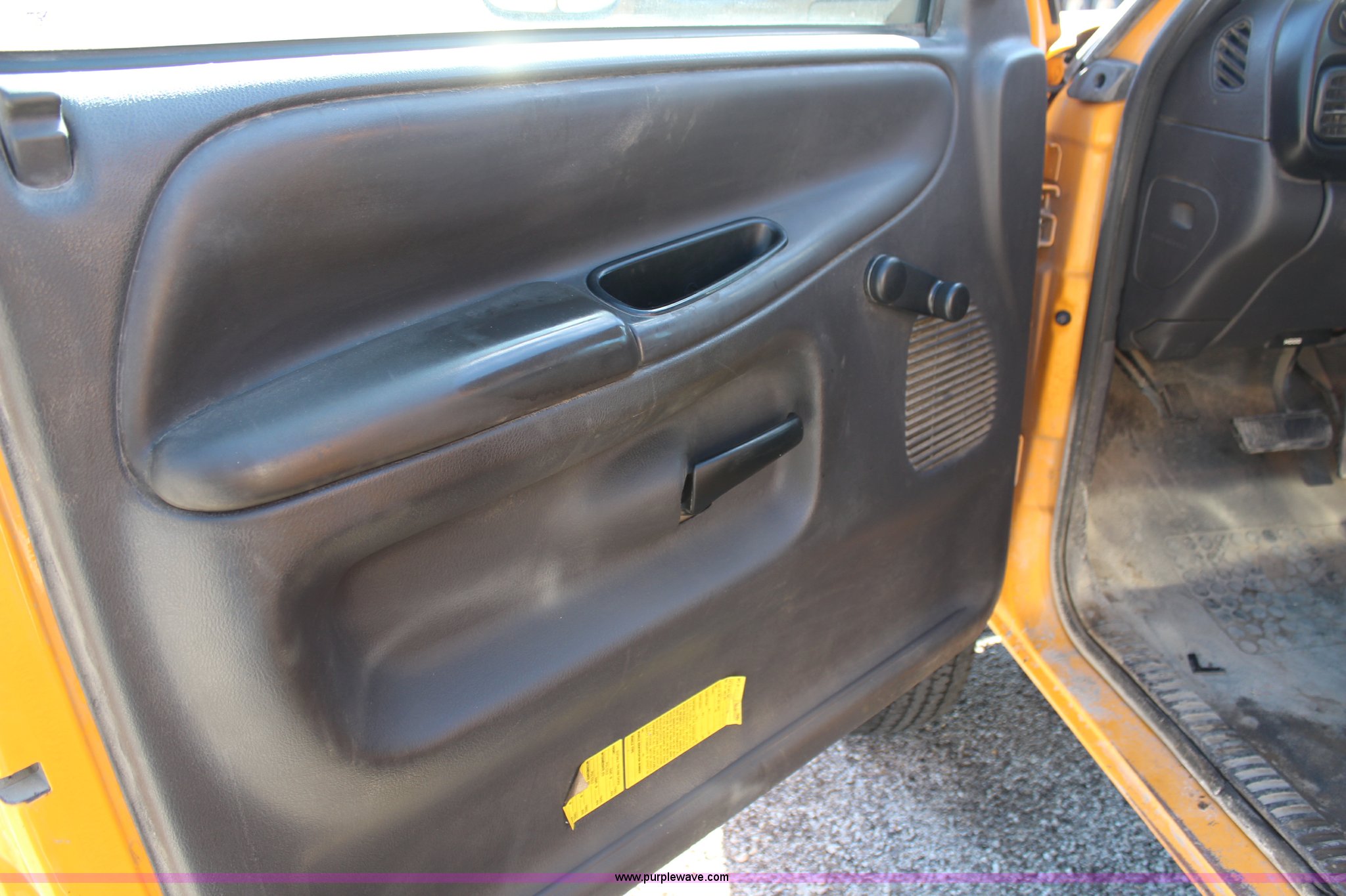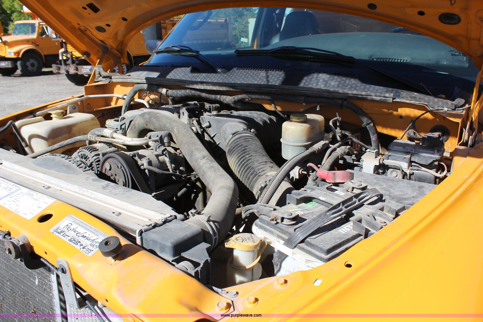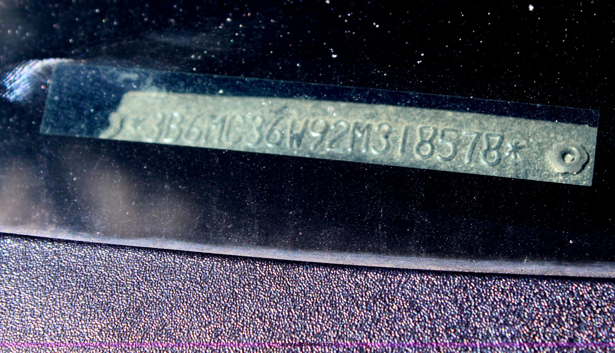 Purple Wave is selling a used Passenger Vehicle in Missouri. This item is a 2002 Dodge Ram 3500 utility truck with the following: 179,225 miles on odometer, 8.0L V10 OHV 20V gas engine, Automatic transmission, AC and heat, AM/FM/cassette, Manual windows and locks, Vinyl interior, Knapheide utility bed, 9'L, 9" bumper, 235/85R16 tires, Valve cover gasket leaks, Antifreeze leak from thermostat housing, ABS light is on, Interior/exterior cosmetic damage, MoDOT ID 7026