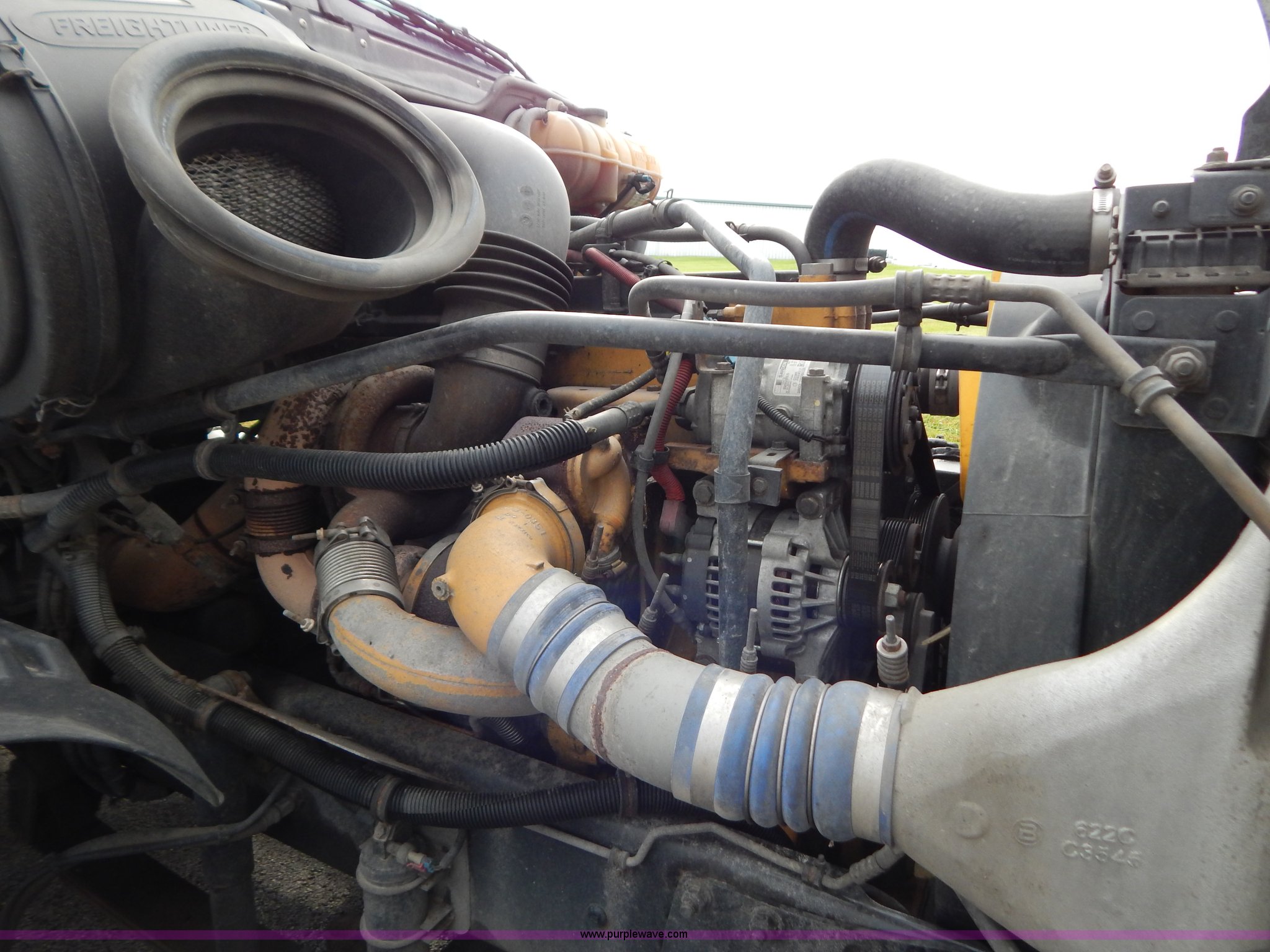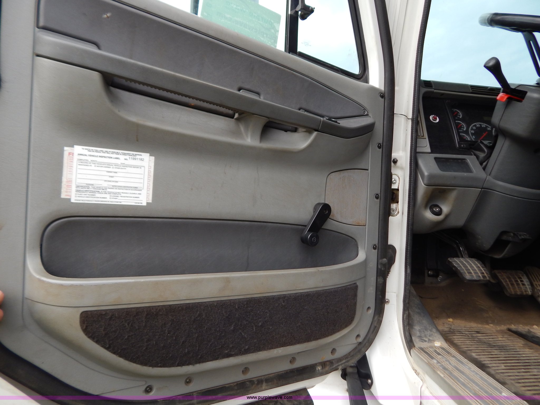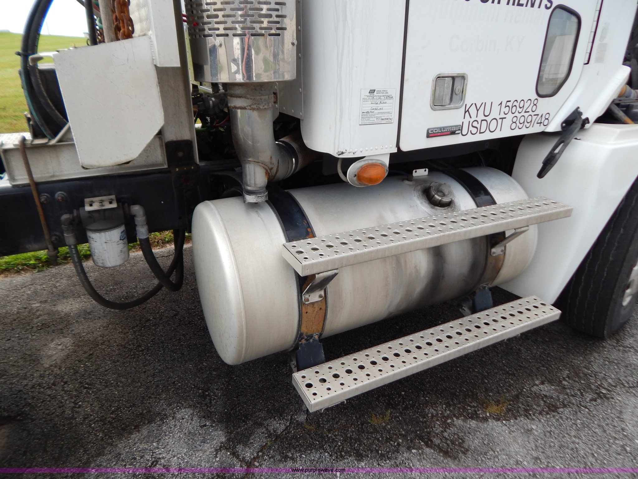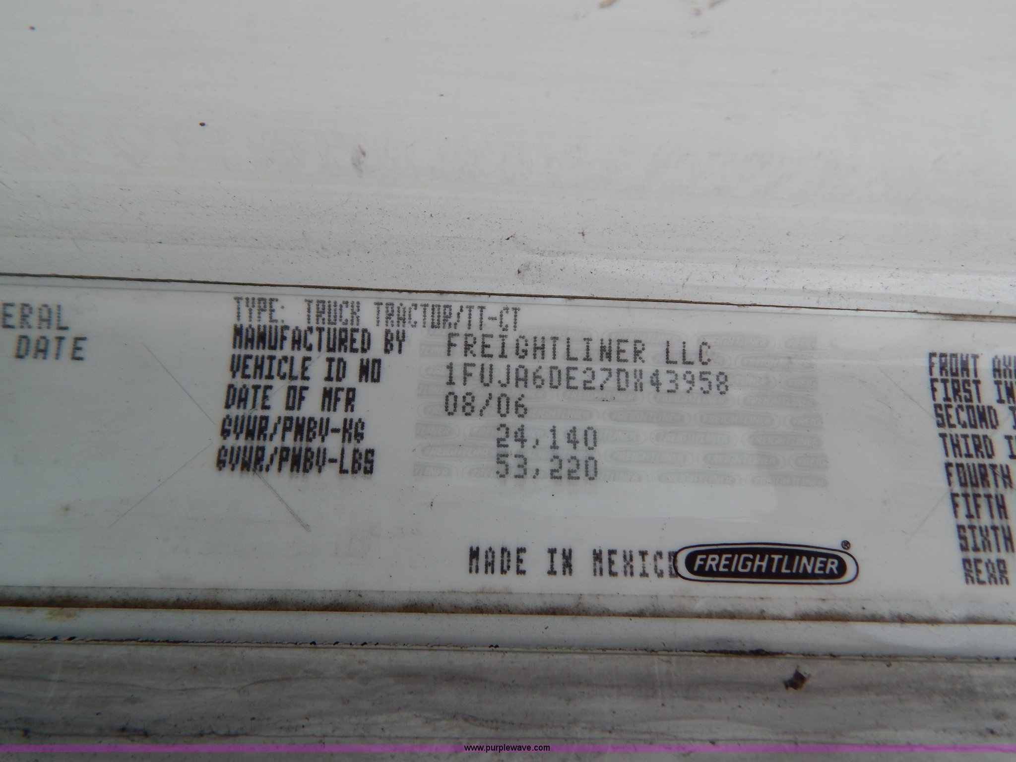 Purple Wave is selling a used Truck Tractor in Kentucky. This item is a 2007 Freightliner Columbia semi truck with the following: 303,430 miles on odometer, 8,058 hours on meter, Caterpillar C13 12.5L L6 turbo diesel engine, Eaton Fuller 10 speed manual transmission, AC and heat, Tilt, Cruise, AM/FM/CD, Passenger daylight door, Air suspension seat, Power windows, Heated mirrors, Headache rack, Window, Storage, Chain hanger, Light bar, Visor, Chrome bumper, Front tow hooks, Dual 90 gallon fuel tanks, Dual rear exhaust stacks, Aluminum deck plate, Aluminum half fenders, Wet kit, Air suspension, Air brakes, Jake brake, 11R24.5 tires, GVWR 53,220 lbs, FAWR 13,220 lbs, IAWR 20,000 lbs, RAWR 20,000 lbs, Qualcomm not included, Interior/exterior cosmetic damage, EIN 677358RA