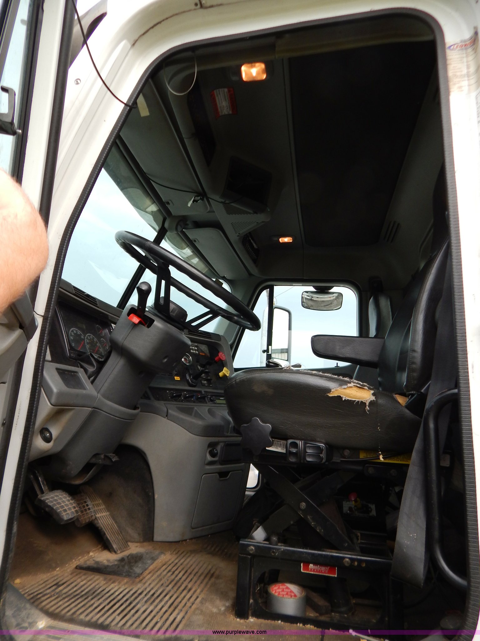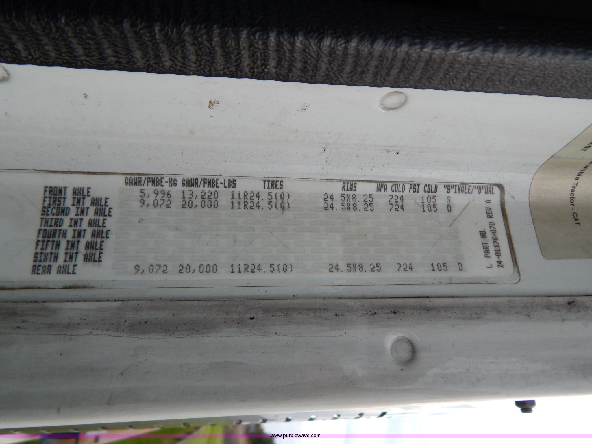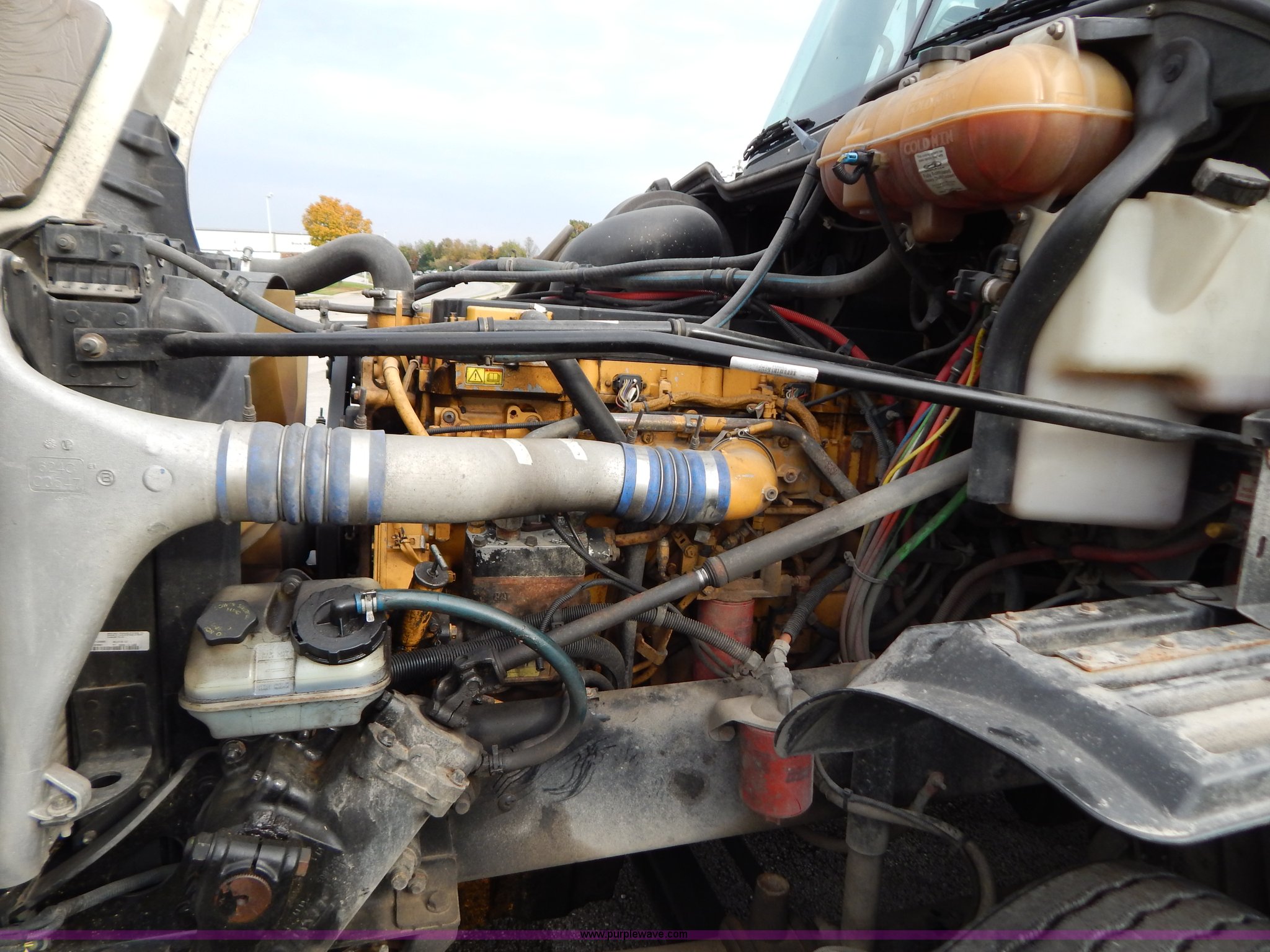 Purple Wave is selling a used Truck Tractor in Kentucky. This item is a 2007 Freightliner Columbia semi truck with the following: 303,430 miles on odometer, 8,058 hours on meter, Caterpillar C13 12.5L L6 turbo diesel engine, Eaton Fuller 10 speed manual transmission, AC and heat, Tilt, Cruise, AM/FM/CD, Passenger daylight door, Air suspension seat, Power windows, Heated mirrors, Headache rack, Window, Storage, Chain hanger, Light bar, Visor, Chrome bumper, Front tow hooks, Dual 90 gallon fuel tanks, Dual rear exhaust stacks, Aluminum deck plate, Aluminum half fenders, Wet kit, Air suspension, Air brakes, Jake brake, 11R24.5 tires, GVWR 53,220 lbs, FAWR 13,220 lbs, IAWR 20,000 lbs, RAWR 20,000 lbs, Qualcomm not included, Interior/exterior cosmetic damage, EIN 677358RA