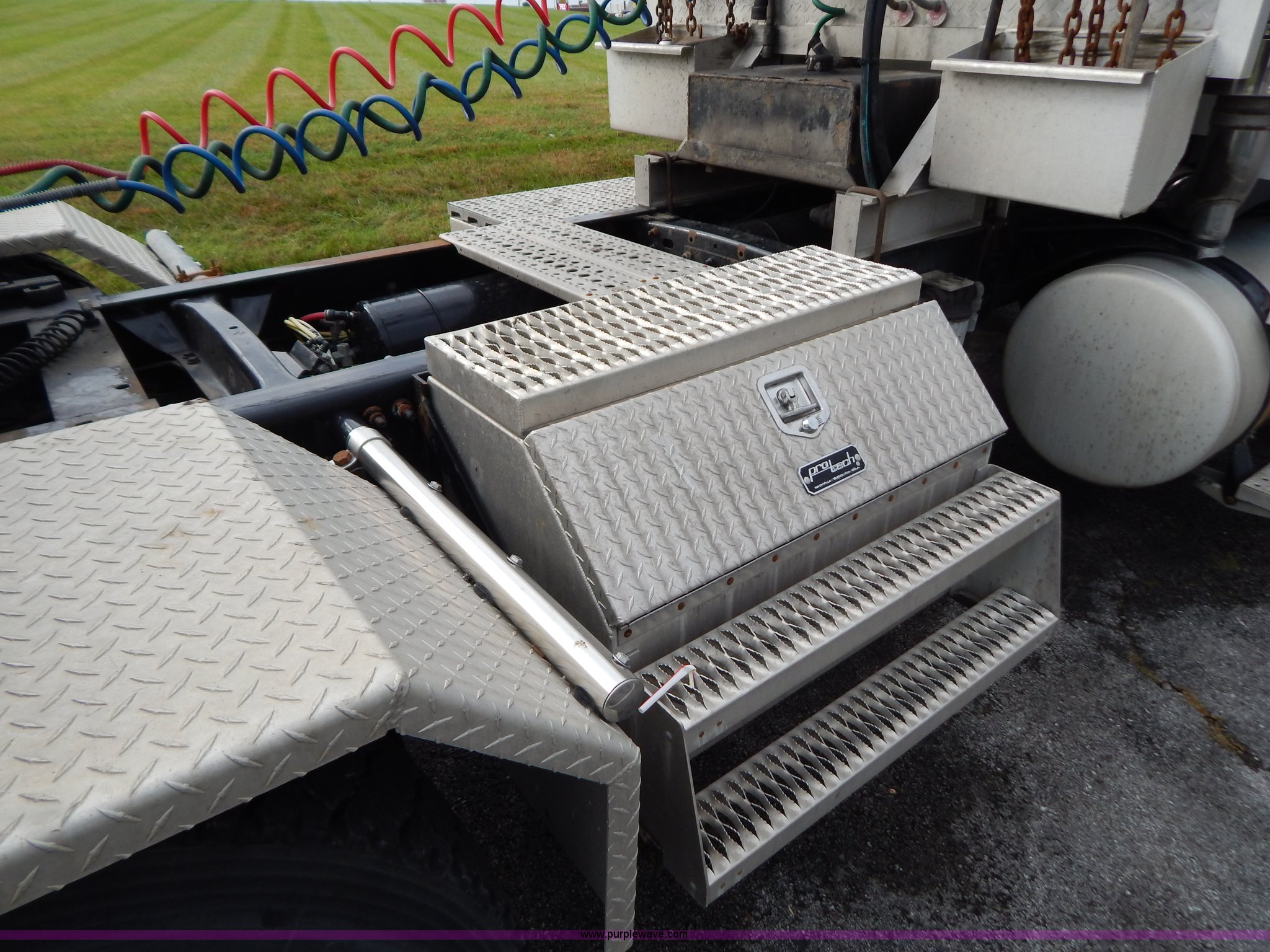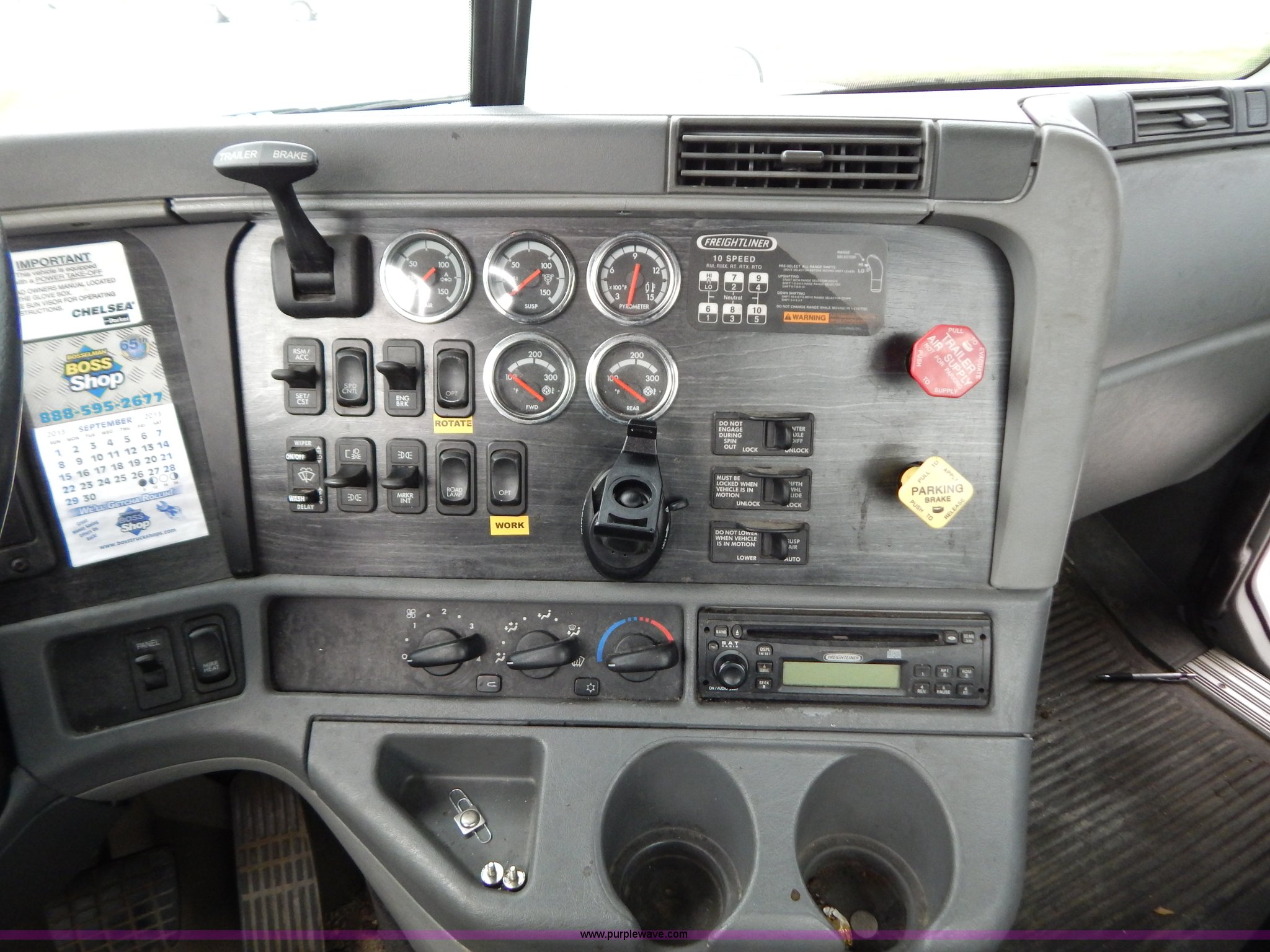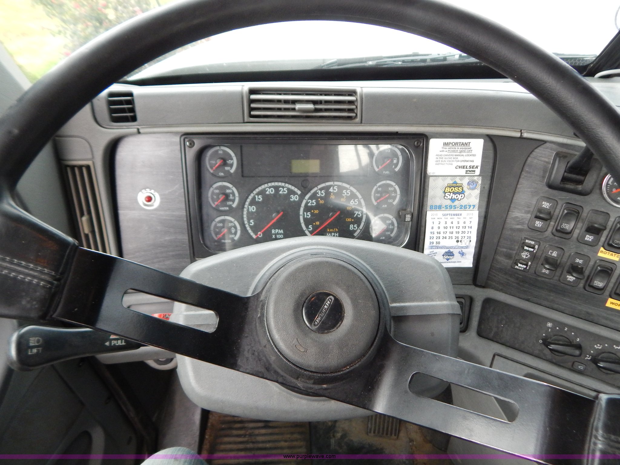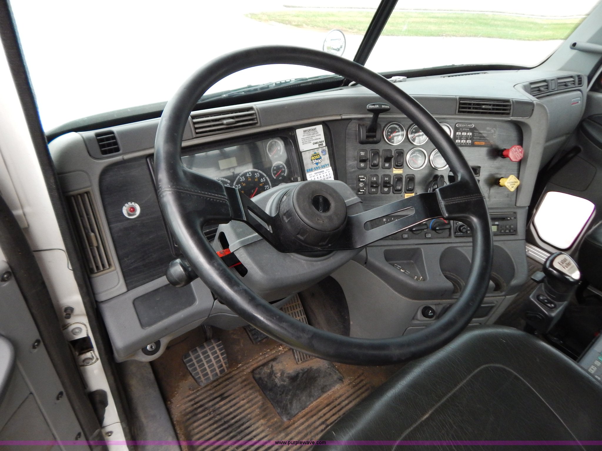 Purple Wave is selling a used Truck Tractor in Kentucky. This item is a 2007 Freightliner Columbia semi truck with the following: 303,430 miles on odometer, 8,058 hours on meter, Caterpillar C13 12.5L L6 turbo diesel engine, Eaton Fuller 10 speed manual transmission, AC and heat, Tilt, Cruise, AM/FM/CD, Passenger daylight door, Air suspension seat, Power windows, Heated mirrors, Headache rack, Window, Storage, Chain hanger, Light bar, Visor, Chrome bumper, Front tow hooks, Dual 90 gallon fuel tanks, Dual rear exhaust stacks, Aluminum deck plate, Aluminum half fenders, Wet kit, Air suspension, Air brakes, Jake brake, 11R24.5 tires, GVWR 53,220 lbs, FAWR 13,220 lbs, IAWR 20,000 lbs, RAWR 20,000 lbs, Qualcomm not included, Interior/exterior cosmetic damage, EIN 677358RA
