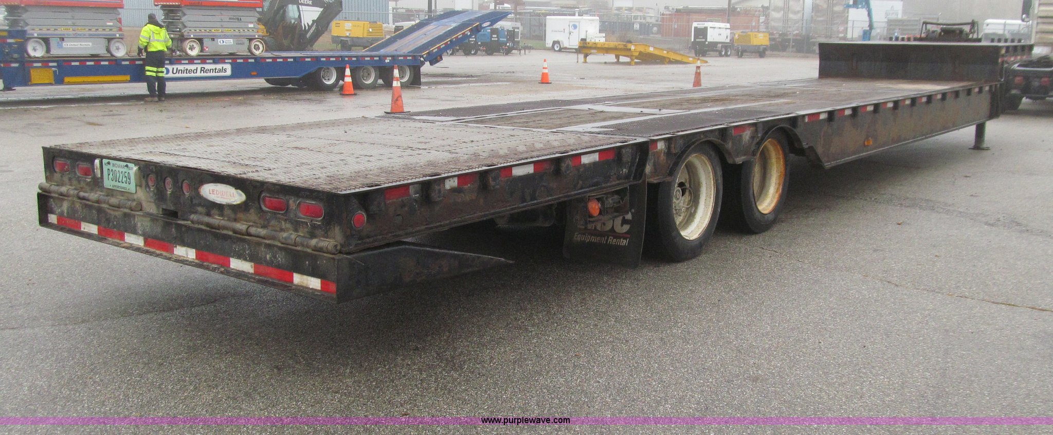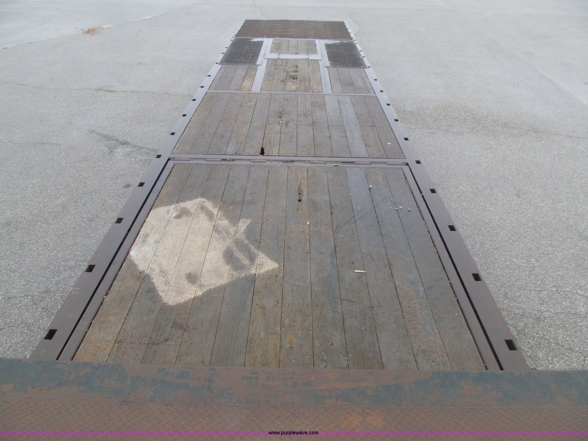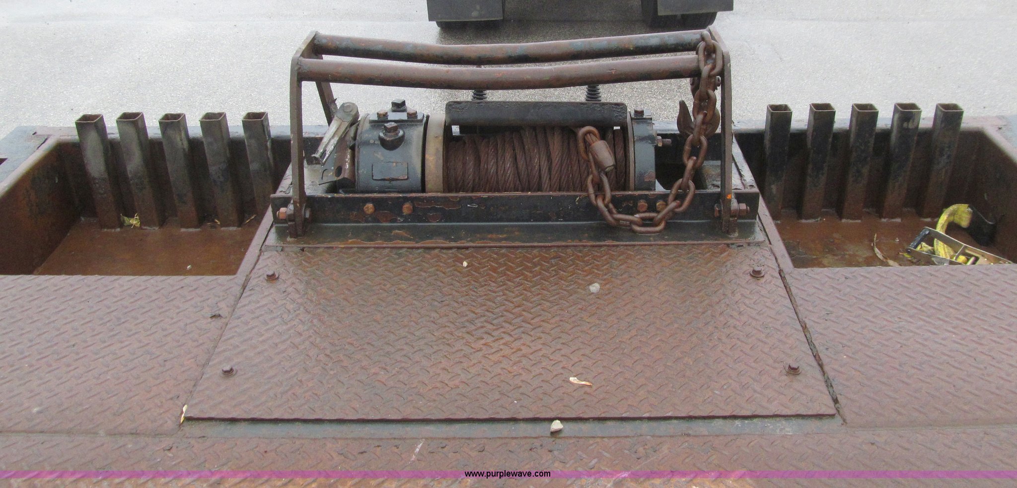 Purple Wave is selling a used Equip. Trailer in Iowa. This item is a 2006 Ledwell LW48HT2-10-PB Hydratail trailer with the following: 48'L x 102"W, Braden winch, Expanded metal on rear portions of deck, Perimeter beam, Chain storage, Stake pockets, Mud flaps, Landing gear, Air ride suspension, 255/70R22.5 tires, GVWR 70,000 lbs, 19,460 lbs empty weight, Surface rust/scaling, EIN 644104RA