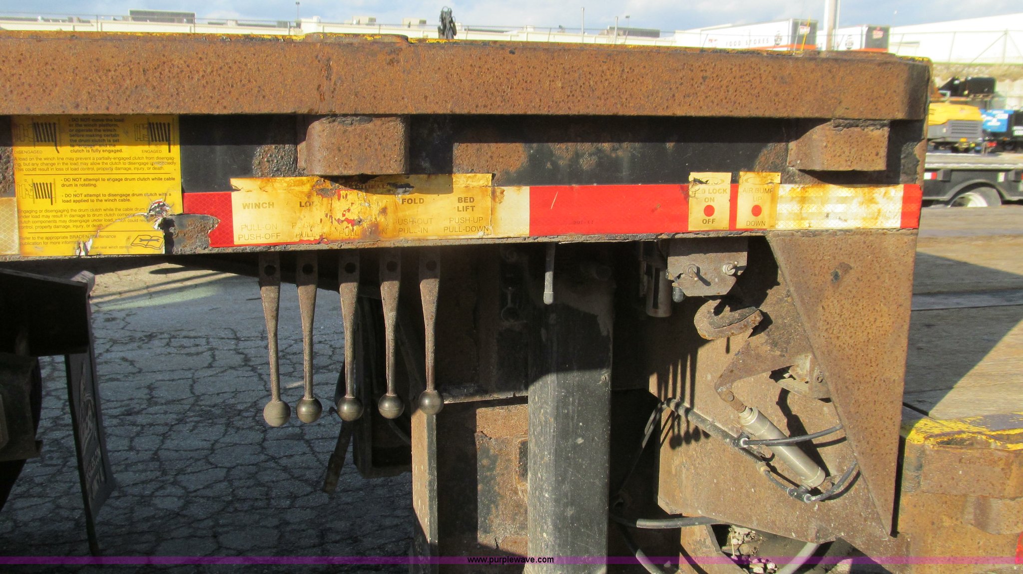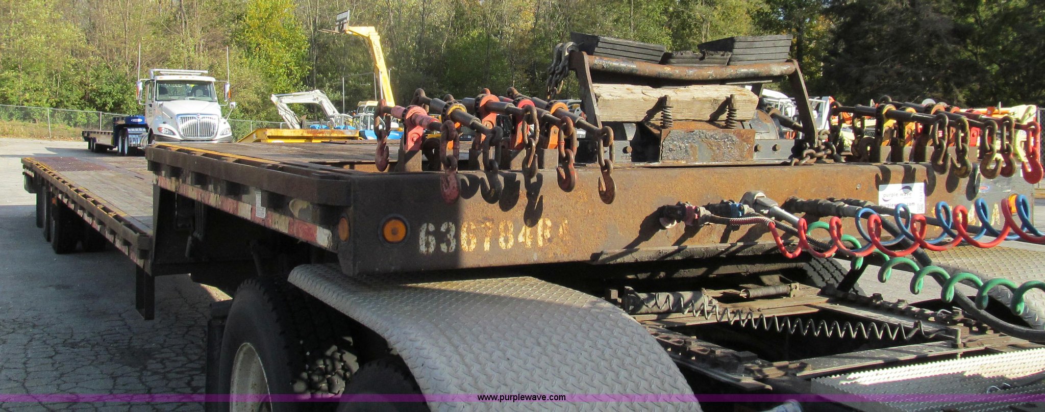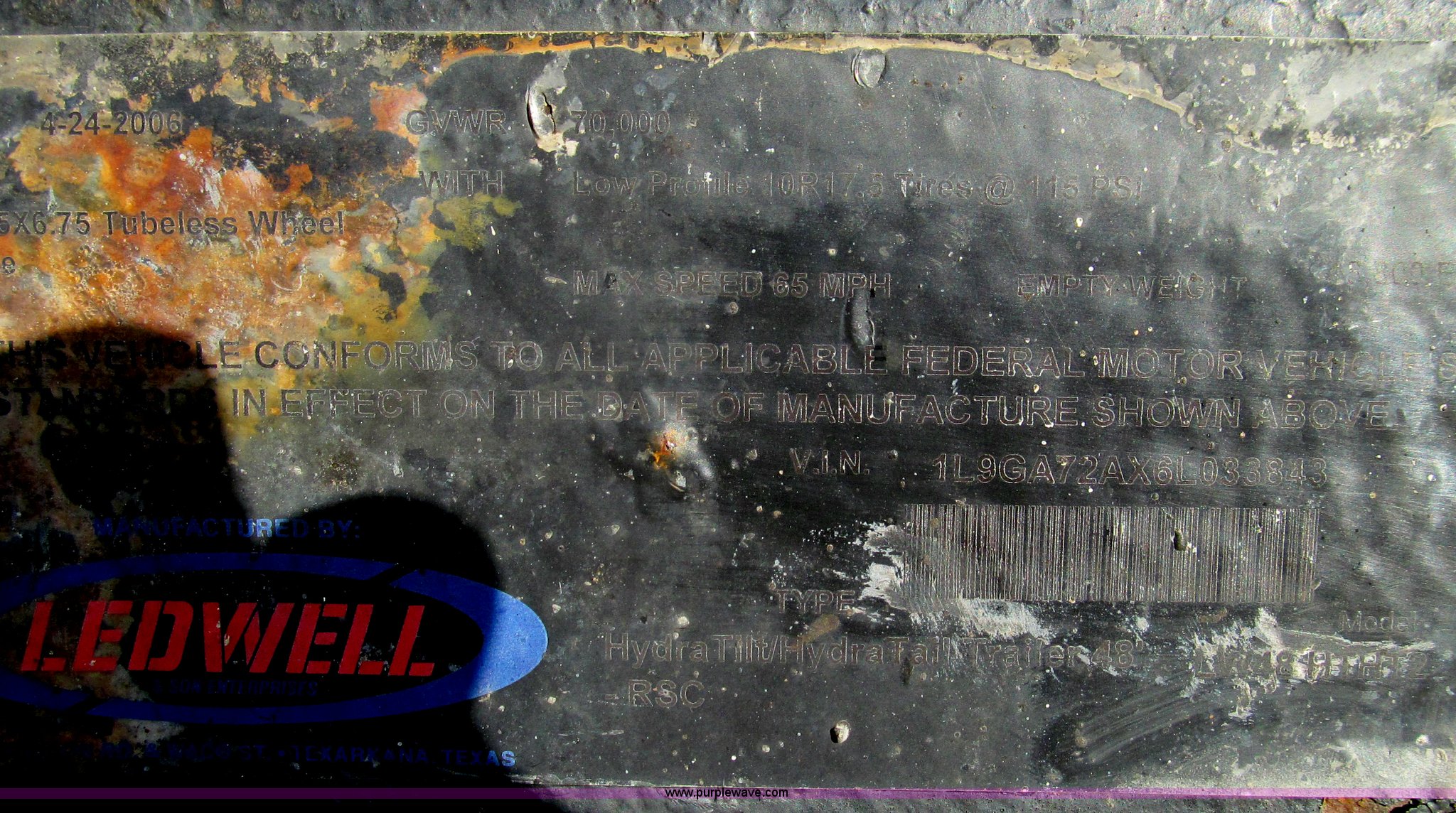 Purple Wave is selling a used Equip. Trailer in Illinois. This item is a 2006 Ledwell LW48HTHT2 Hydratail trailer with the following: 10'L top deck, 29'L hydratilt main deck, 8'L beaver deck, 4'L beaver tail, 97"W, Hydraulic bed controls and beaver deck controls on both sides, Stake pockets, Bed lock controls on driver's side, Chain storage, Top deck mounted winch, Right way load scales, Hand crank landing gear, Metal rear deck pads with expanded metal, Air suspension, 10R17.5 tires, Contents not included, EIN 636784RA