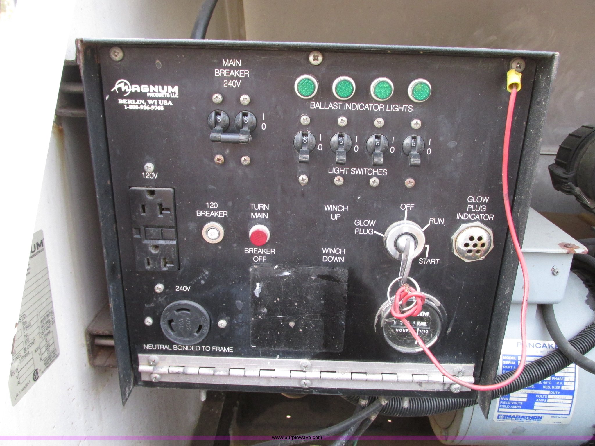 Purple Wave is selling a used Generator Set in Illinois. This item is a Magnum Pro MLT4060 light tower with the following: 6,504 hours on meter, Diesel engine, Manual tower winch, Front and rear stabilizer jacks, Telescopic light tower, ST175/30D13 tires, Serial 176169, EIN 1012348