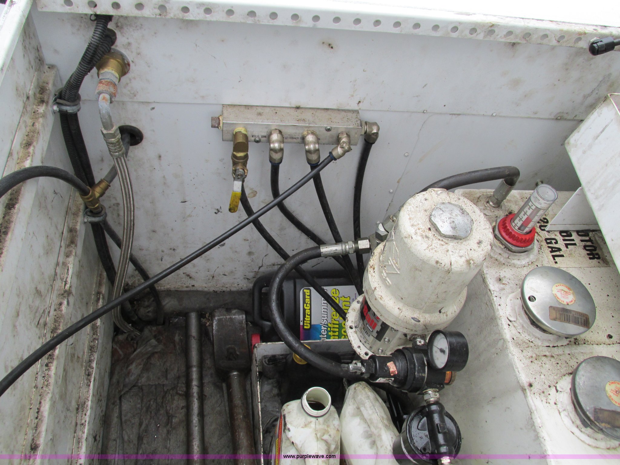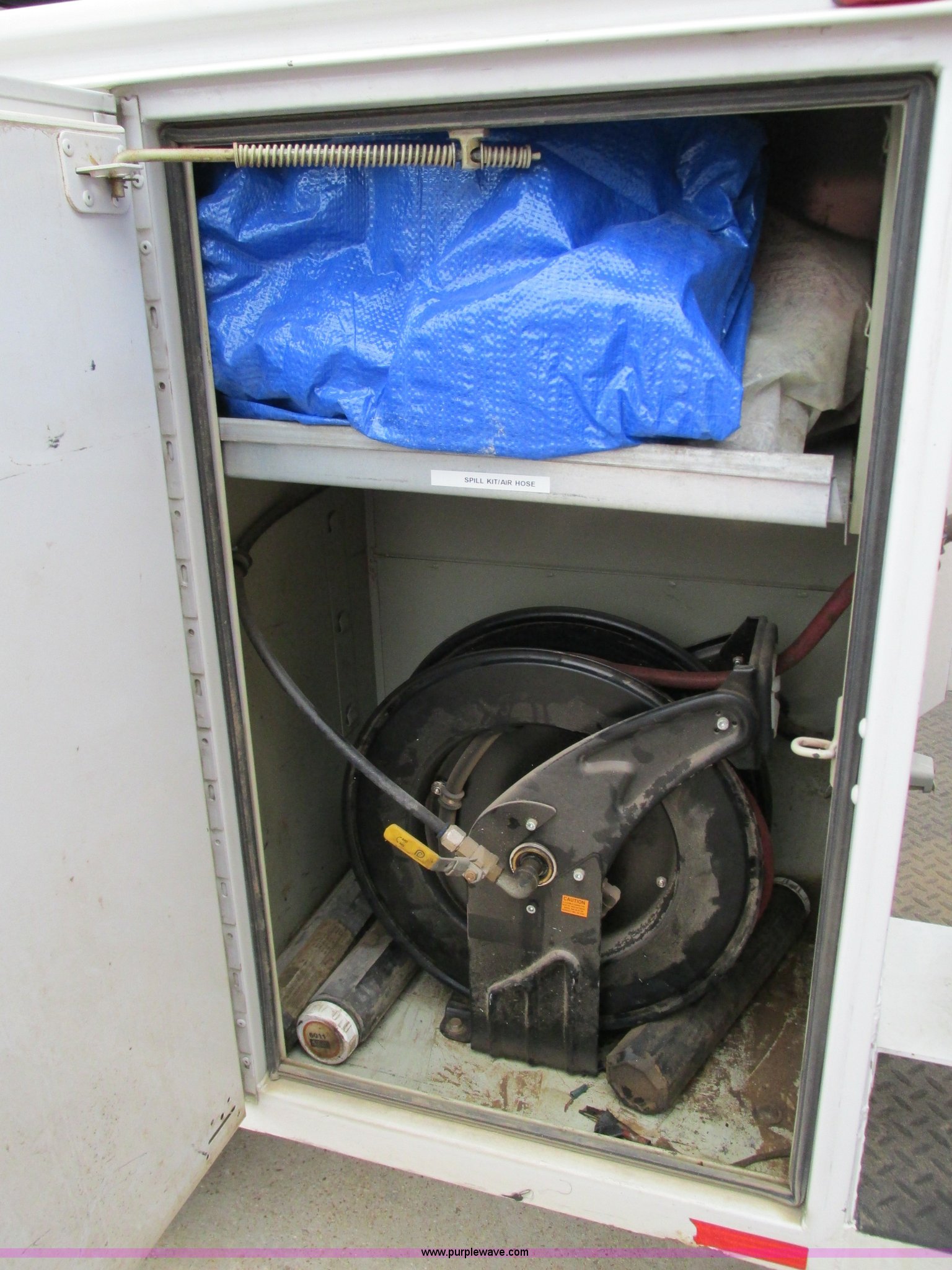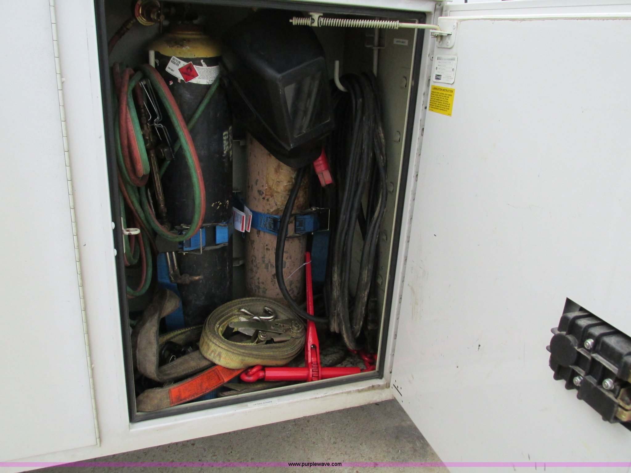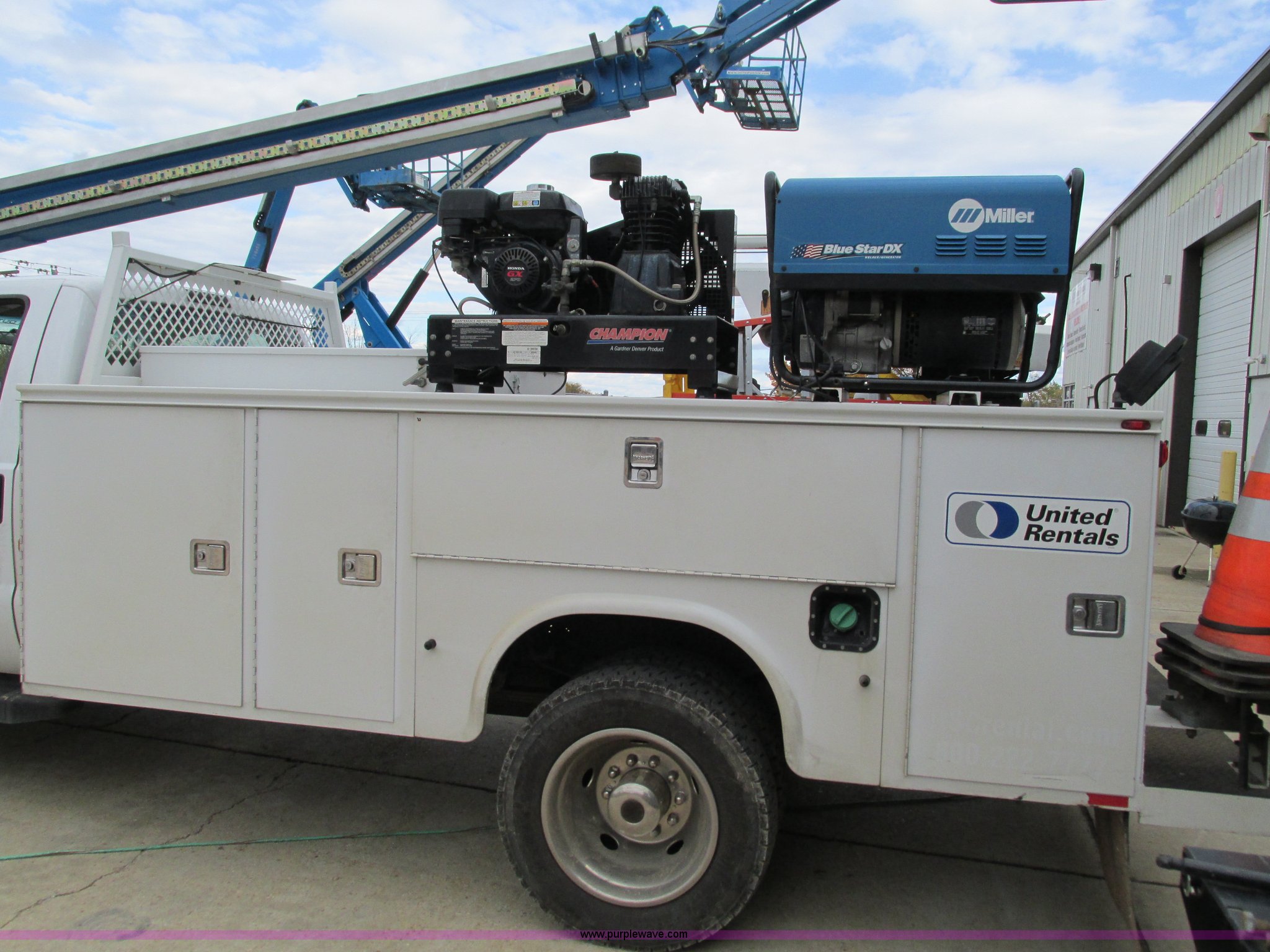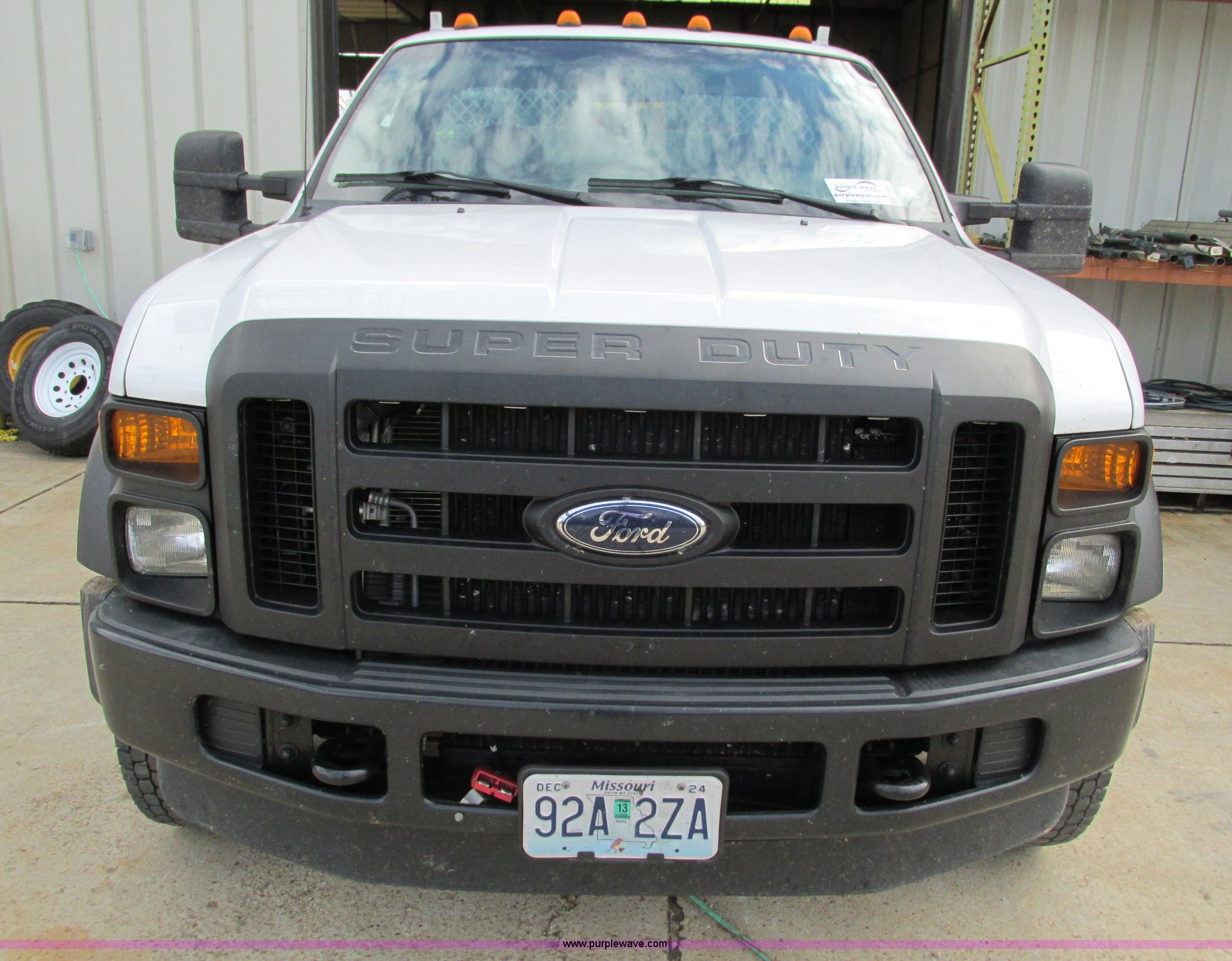Purple Wave is selling a used Service Truck in Missouri. This item is a 2008 Ford F550 Super Duty service truck with crane with the following: 135,849 miles on odometer, Miles may vary, still in use, 6.4L V8 OHV 32V turbo diesel engine, Automatic transmission, Four wheel drive, AC and heat, Tilt, Cruise, AM/FM/CD, Manual windows and locks, Vinyl interior, Headache rack, (3) oil/hydraulic tanks, Graco FireBall air power pumps, (3) hose reels, Grease, hydraulic oil, and oil, Front tow hooks, Air hose reel, Stellar 3315 crane, 3,000 lbs capacity, Serial ECW08874, Miller Blue Star 185 welder, Kohler 12.75 HP engine, Champion air compressor, Model AS2-SH09-CHP, Honda GX270 engine, Electric start, Serial 20084983, Rear bumper vise, Receiver hitch, Trailer wiring, 225/70R19.5 tires, Interior/exterior cosmetic damage, Seat damage, Rear work light broken, Contents not included, EIN 762142RA