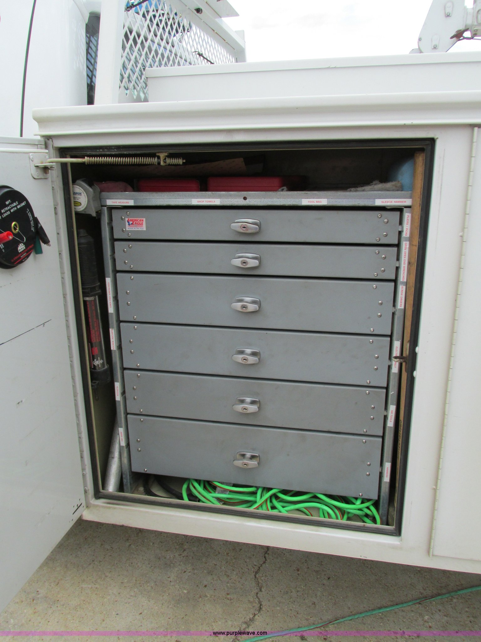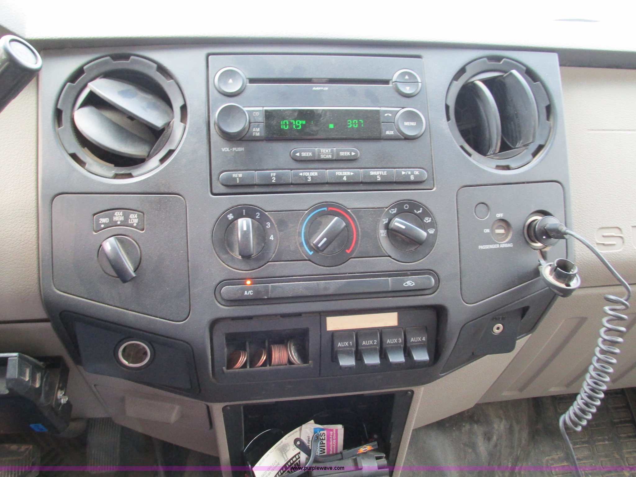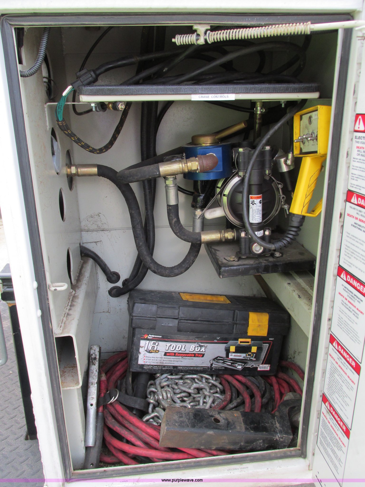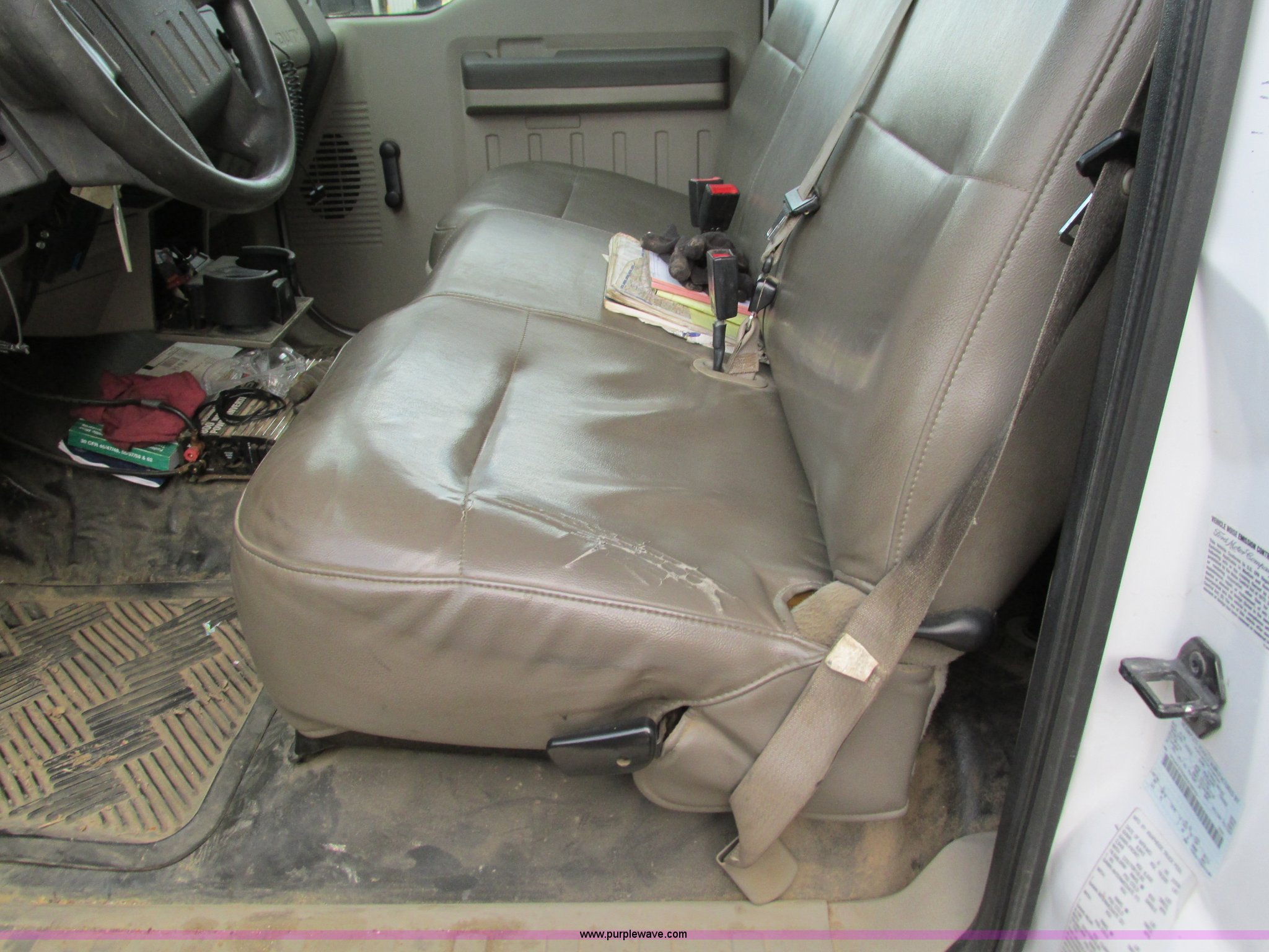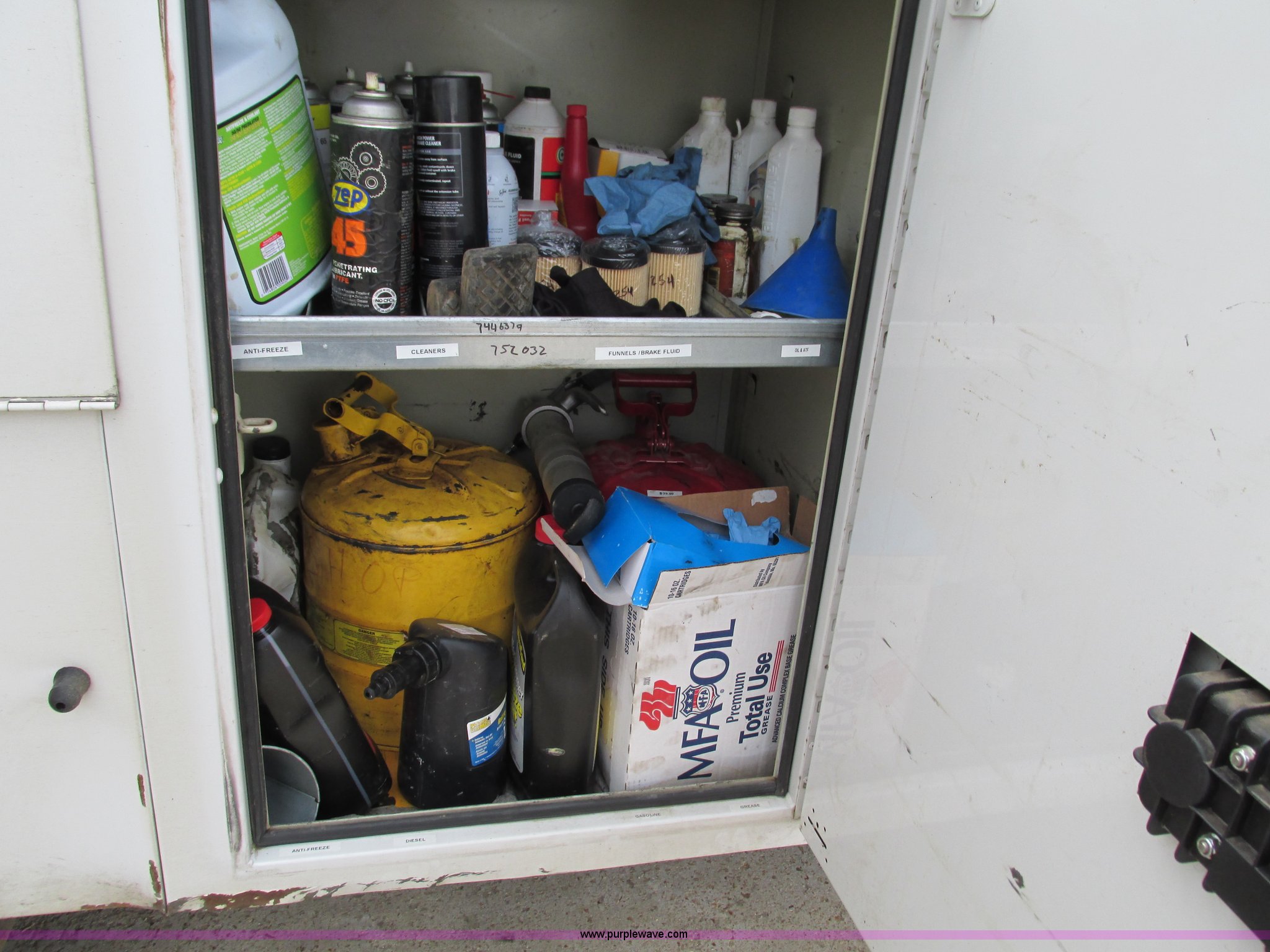 Purple Wave is selling a used Service Truck in Missouri. This item is a 2008 Ford F550 Super Duty service truck with crane with the following: 135,849 miles on odometer, Miles may vary, still in use, 6.4L V8 OHV 32V turbo diesel engine, Automatic transmission, Four wheel drive, AC and heat, Tilt, Cruise, AM/FM/CD, Manual windows and locks, Vinyl interior, Headache rack, (3) oil/hydraulic tanks, Graco FireBall air power pumps, (3) hose reels, Grease, hydraulic oil, and oil, Front tow hooks, Air hose reel, Stellar 3315 crane, 3,000 lbs capacity, Serial ECW08874, Miller Blue Star 185 welder, Kohler 12.75 HP engine, Champion air compressor, Model AS2-SH09-CHP, Honda GX270 engine, Electric start, Serial 20084983, Rear bumper vise, Receiver hitch, Trailer wiring, 225/70R19.5 tires, Interior/exterior cosmetic damage, Seat damage, Rear work light broken, Contents not included, EIN 762142RA