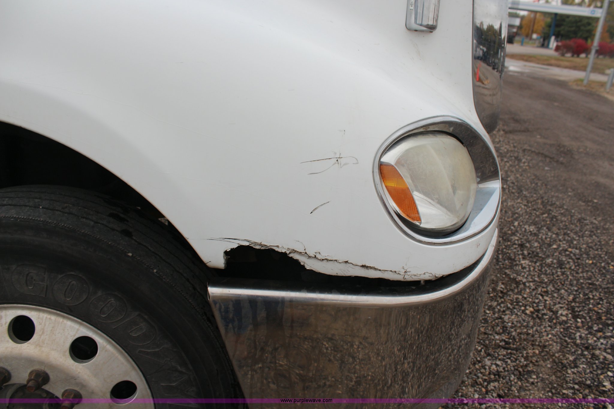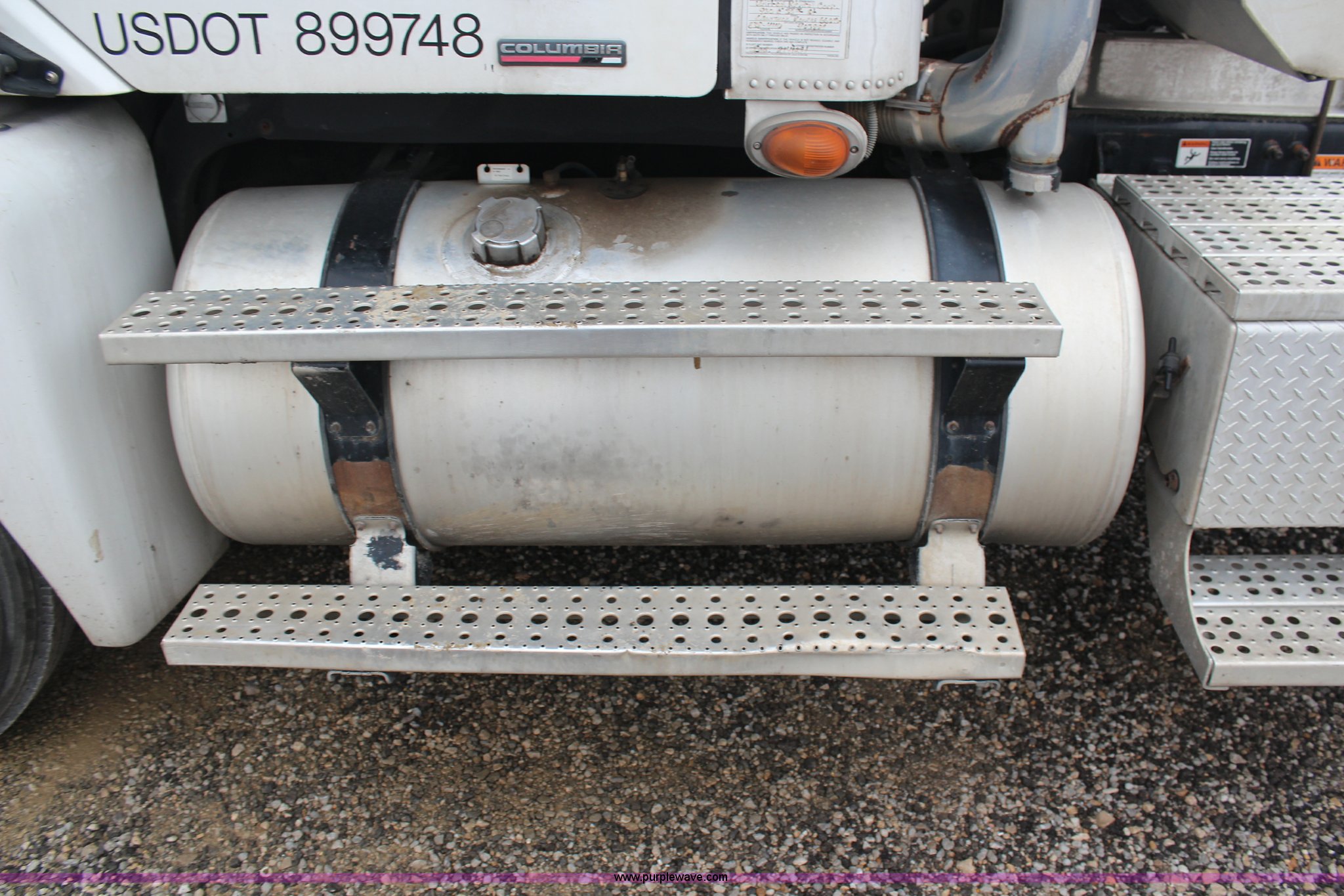 Purple Wave is selling a used Truck Tractor in Kansas. This item is a 2007 Freightliner Columbia CL120ST semi truck with the following: 221,507 miles on odometer, 7,641 hours on meter, Caterpillar C13 12.5L L6 diesel engine, Eaton Fuller 10 speed manual transmission, Twin screw, AC and heat, Tilt, Cruise, AM/FM/CD, Passenger daylight door, Air suspension seat, Heated mirrors, Air ride cab, Headache rack, Window, Storage, Chain hanger, Toolbox, Visor, Chrome bumper, Block heater, Air slide fifth wheel, Dual 90 gallon fuel tanks, Dual rear exhaust stacks, Aluminum deck plate, Aluminum half fenders, PTO, Wet kit, Dump valves, Air suspension, Air brakes, Jake brake, 11R22.5 tires, GVWR 53,220 lbs, FAWR 13,220 lbs, IAWR 20,000 lbs, RAWR 20,000 lbs, Brake work complete in July 2013, Weak batteries, Contents in cab not included, EIN 712695RA