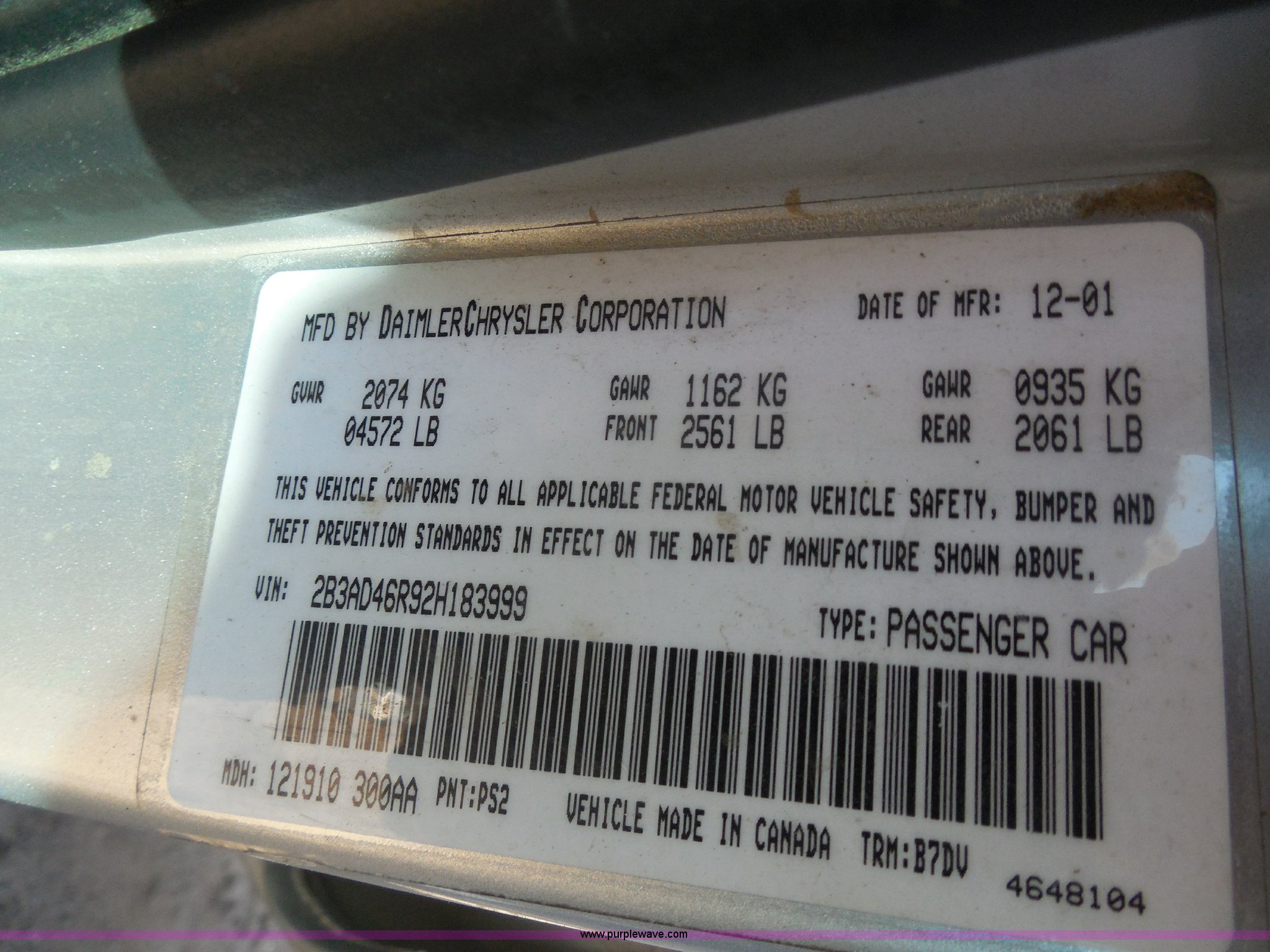 Purple Wave is selling a used Wrecked and Abandoned in Kansas. This item is a 2002 Dodge Intrepid SE with the following: 179,683 miles on odometer, 2.7L V6 DOHC 24V gas engine, Automatic transmission, AM/FM/CD, Power windows and locks, Cloth interior, 225/55R17 tires, Interior/exterior cosmetic damage, Case# 13C53802