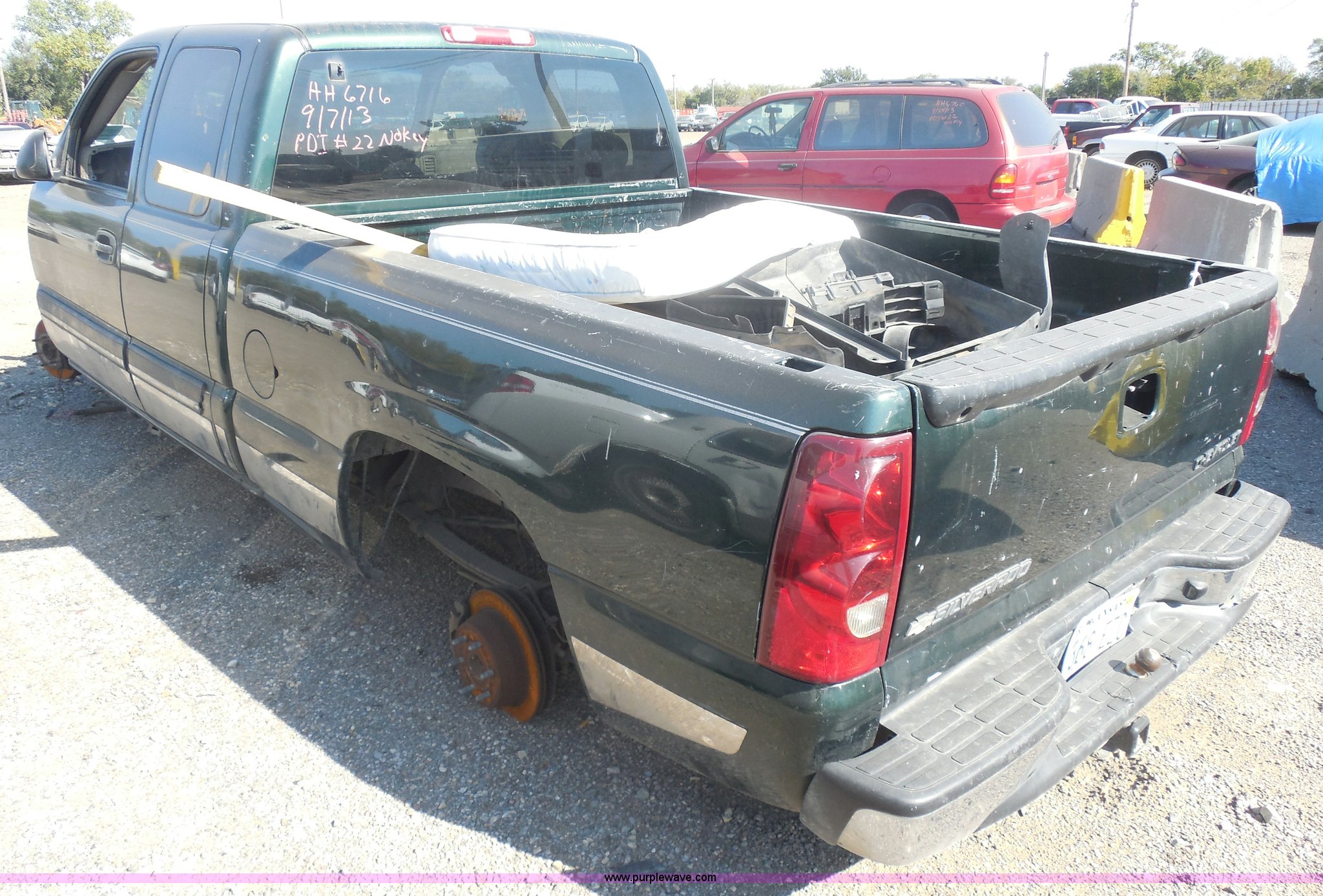 Purple Wave is selling a used Wrecked and Abandoned in Kansas. This item is a 2003 Chevrolet Silverado 1500 pickup truck with the following: Unknown miles on odometer, 5.3L V8 OHV 16V gas engine, Automatic transmission, Cloth interior, Receiver hitch, Interior/exterior cosmetic damage, Wheels removed, Front end damage, Case# 13C514188