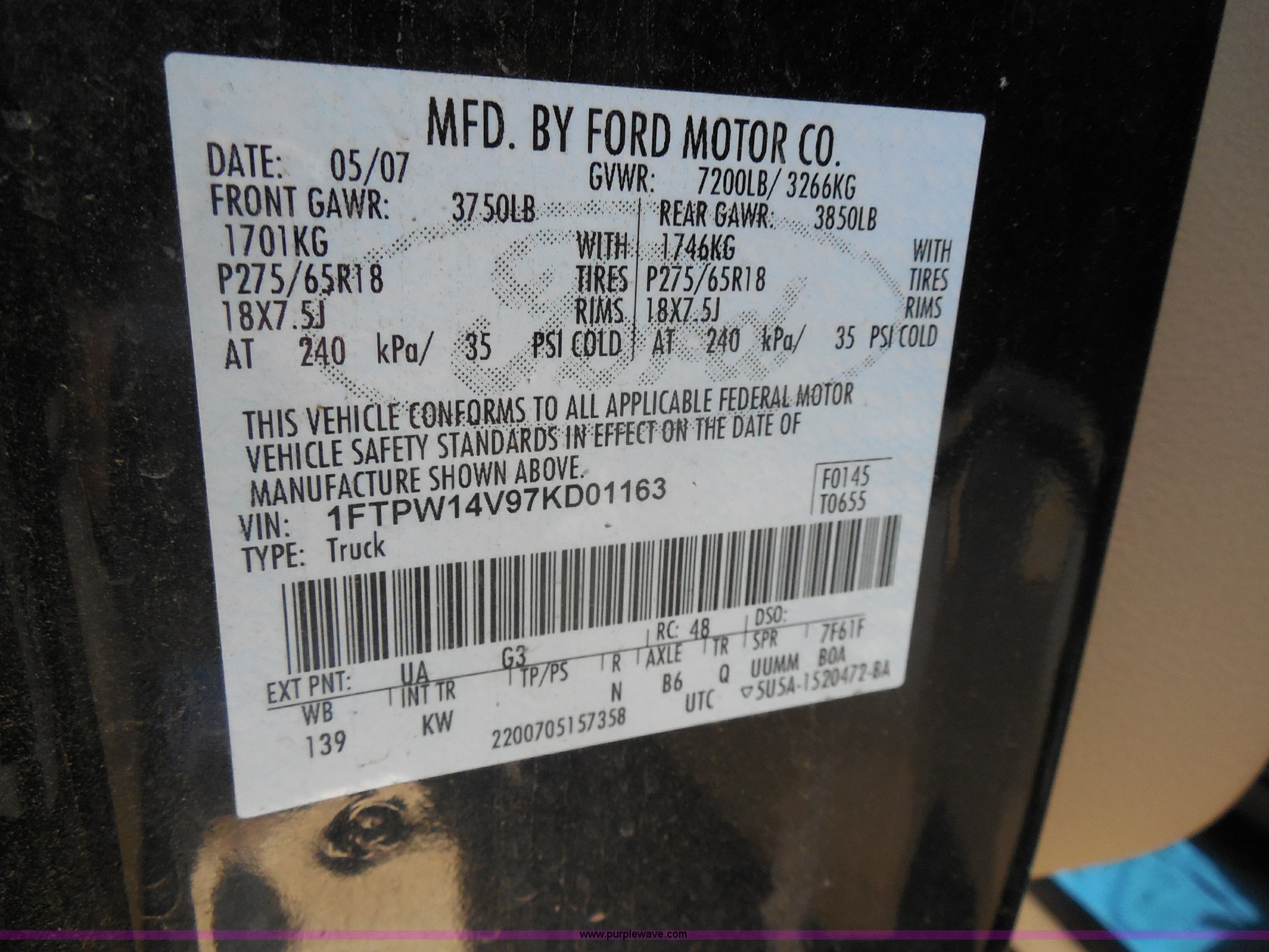 2007 Ford F150 XL SuperCrew pickup truck. Unknown miles on odometer, 5.4L V8 SOHC 24V FFV gas engine, Automatic transmission, Four wheel drive, AC and heat, Power seats, Leather interior, Rear sliding window, Receiver hitch, Sunroof, 285/65R18 tires, Driver side window damage, Case# 13C509229. Vehicle is abandoned. No additional information is available. Vehicle does not have keys unless notated otherwise in the item listing.. View City Of Wichita Terms for title acquisition and item removal requirements.. 1FTPW14V97KD01163. Happy Hooker Towing and Transport. 3760 South Broadway. Wichita, KS 67216
