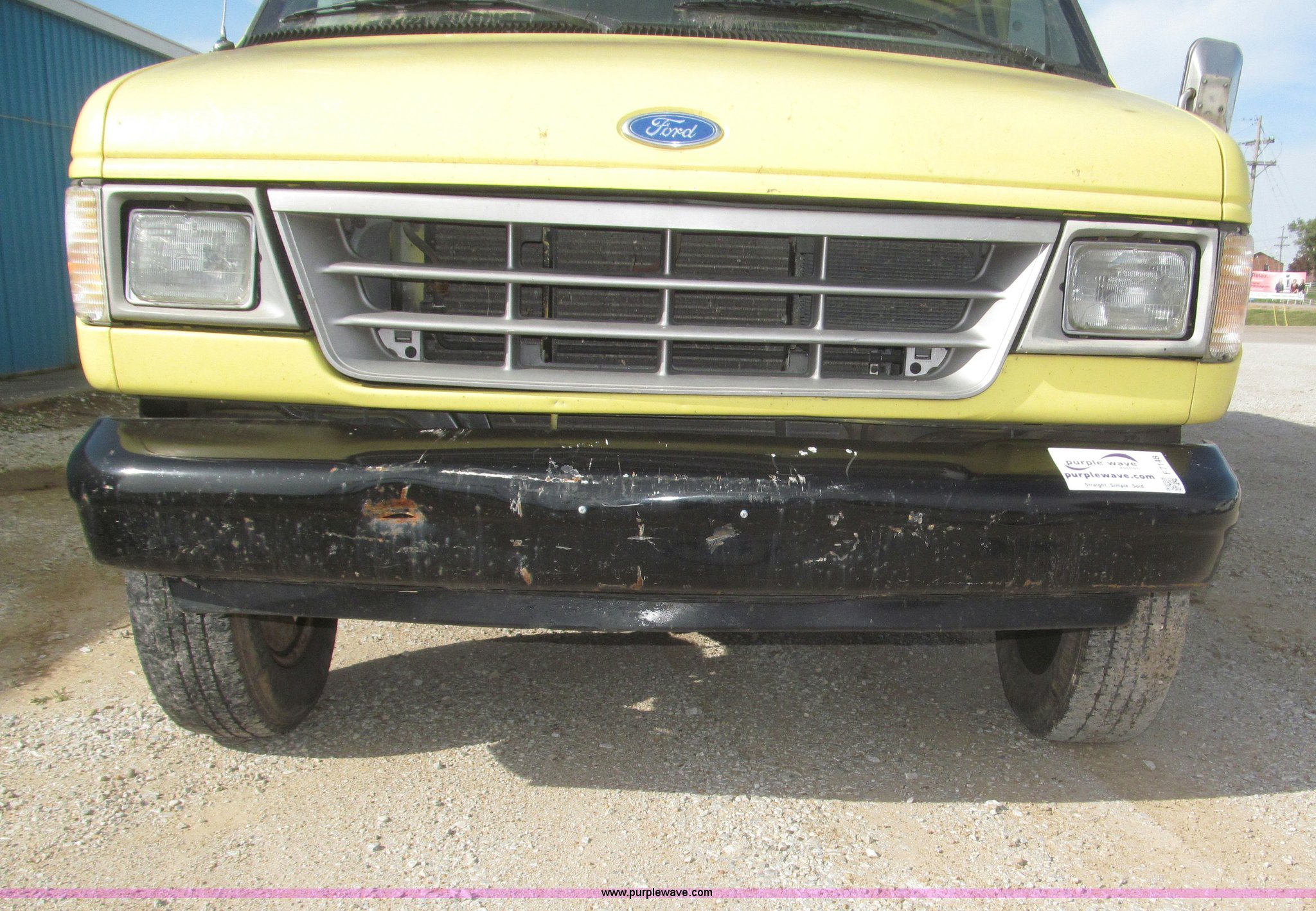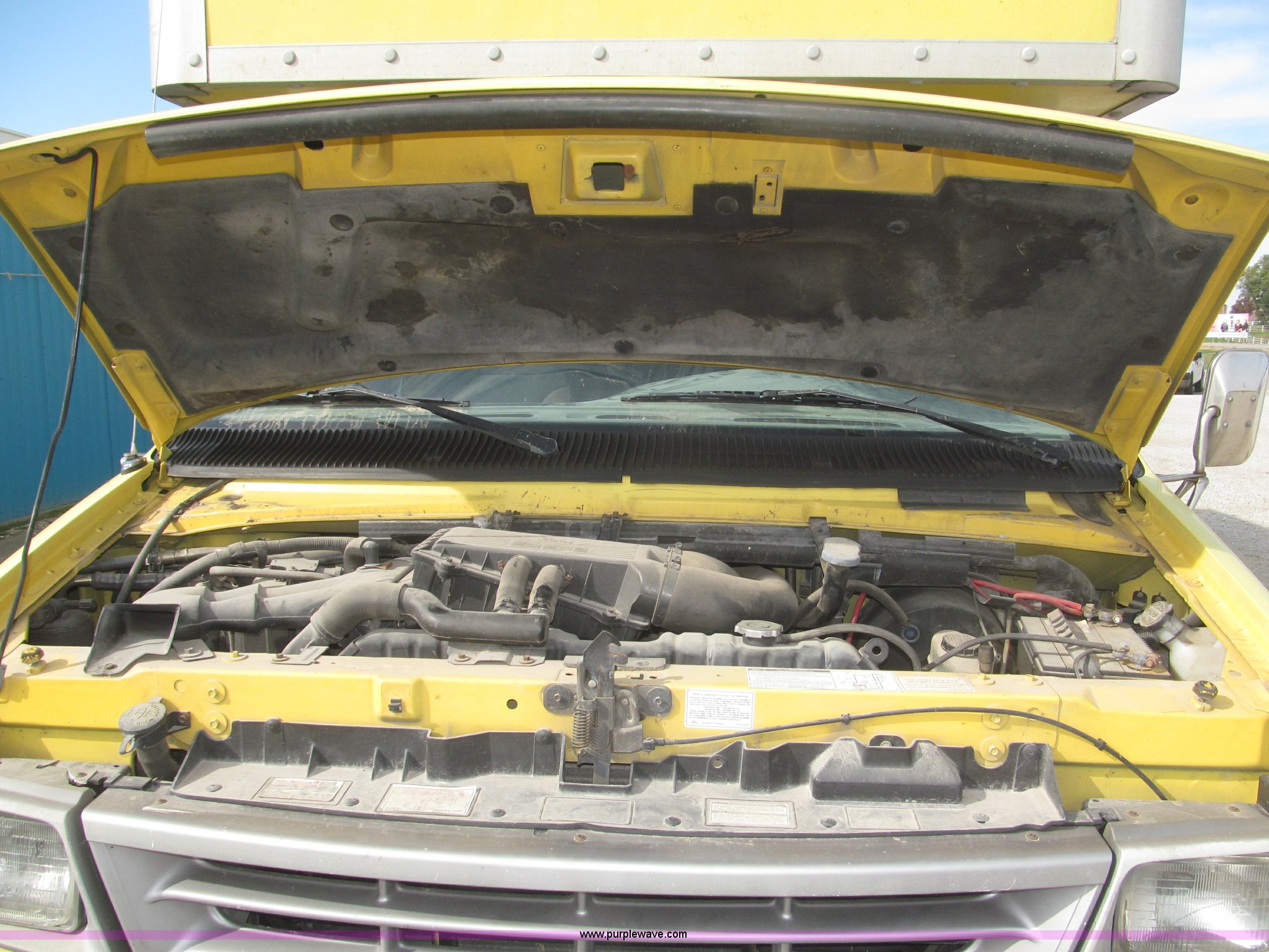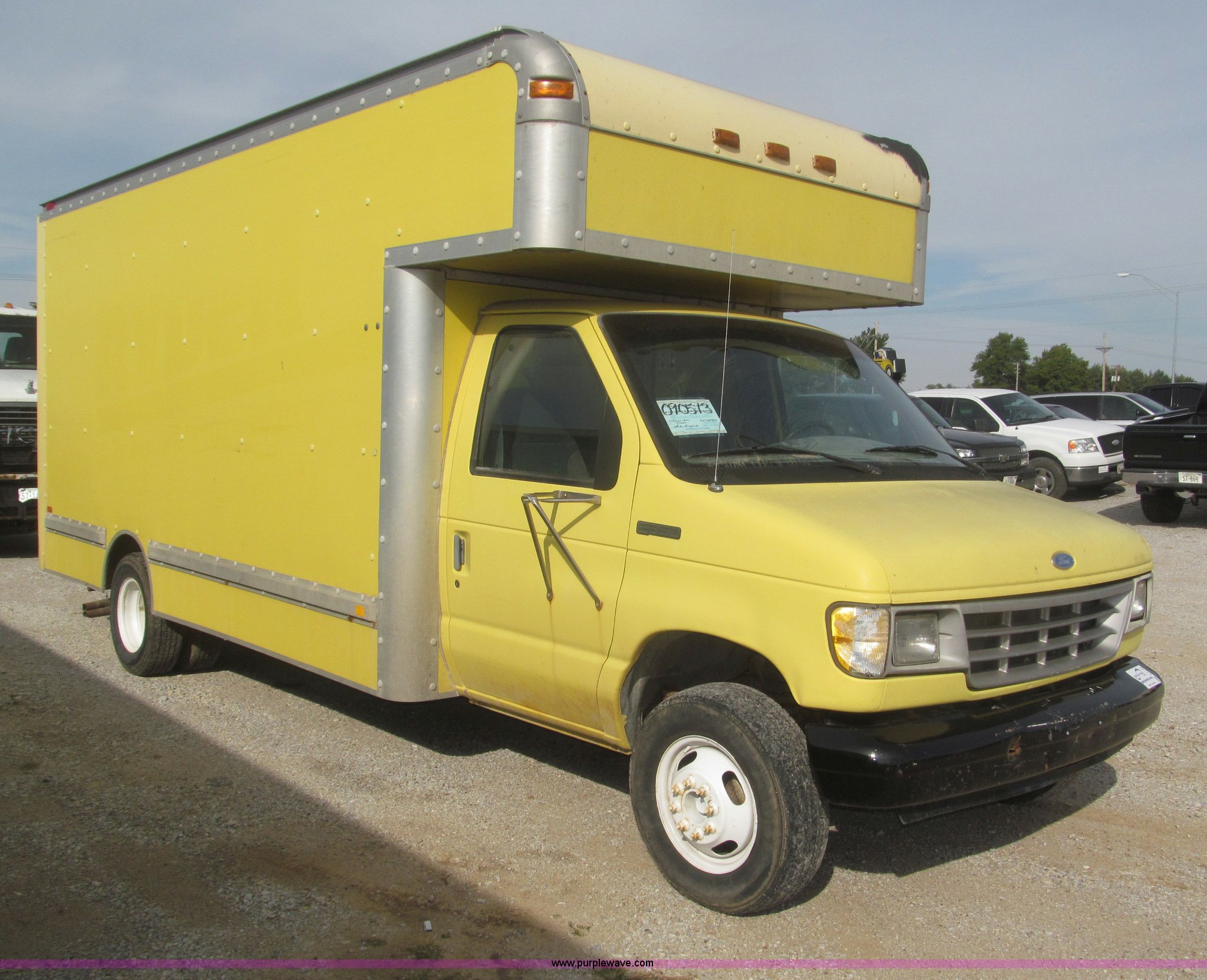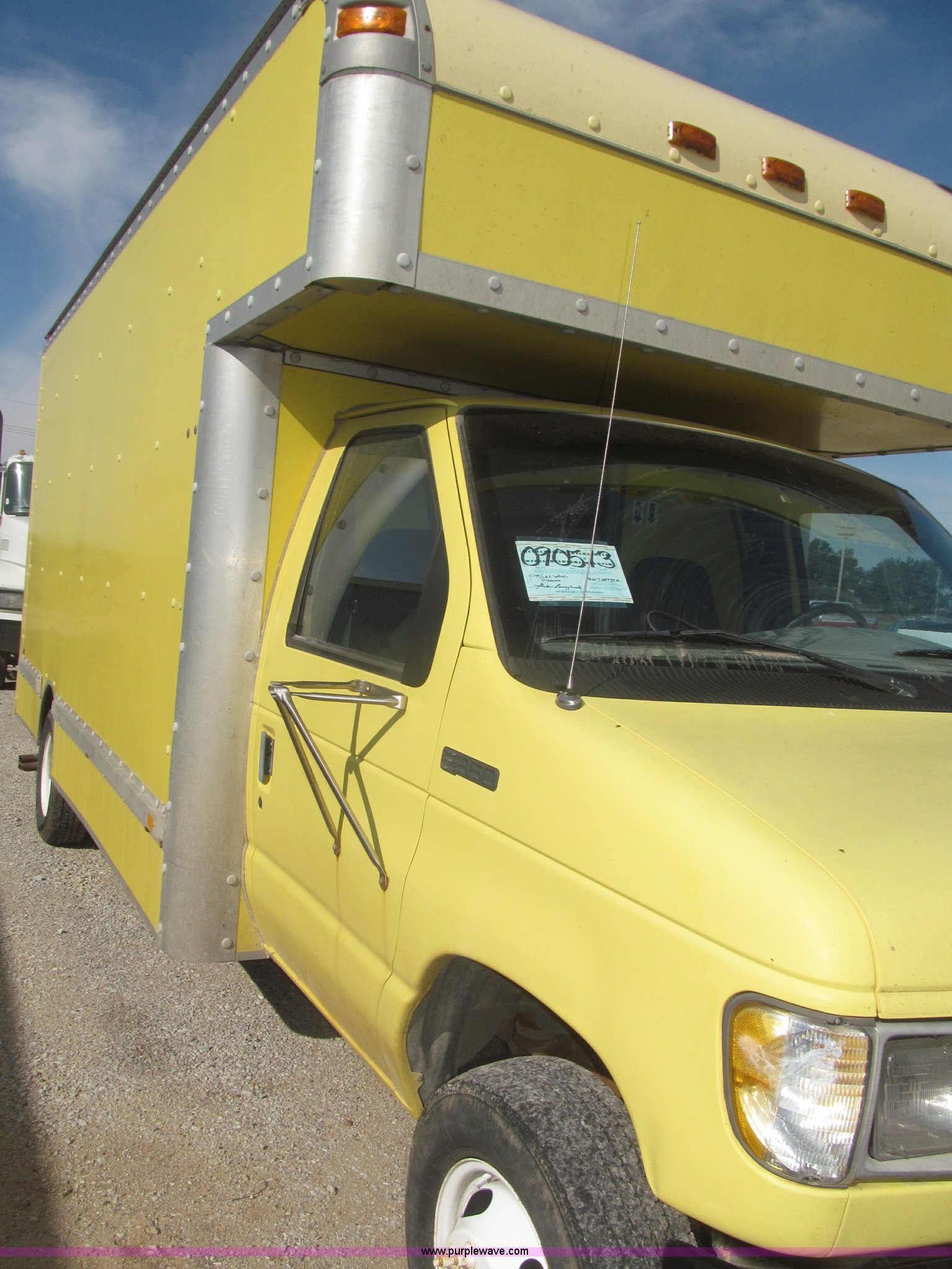 Purple Wave is selling a used Box Truck in Nebraska. This item is a 1995 Ford Econoline E350 box truck with the following: 179,318 miles on odometer, 7.5L V8 OHV 16V gas engine, Automatic transmission, AC and heat, AM/FM, Cloth interior, 14' box, Step up rear bumper, 2" ball hitch, Pull out aluminum loading ramp, 138"L O.D. x 27.5" I.D.,, Cab access sliding door to rear compartment, Doghouse console, 14'4"L x 88"W x 79 1/4"H I.D. box, 40'L x 88"W x 29 1/4"H I.D. front shelf, Interior lighting container roof, Side wall slats, 8" rear perforated step bumper, 22"H from ground, 176" wheelbase, LT225/75R16 tires, GVWR 11,000 lbs, Interior/exterior cosmetic damage, Right exterior rear view mirror broken off, Roof leak front left corner box
