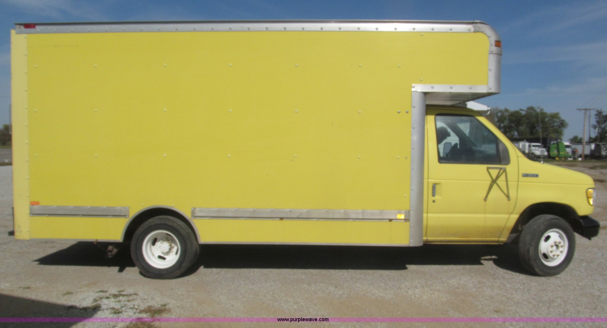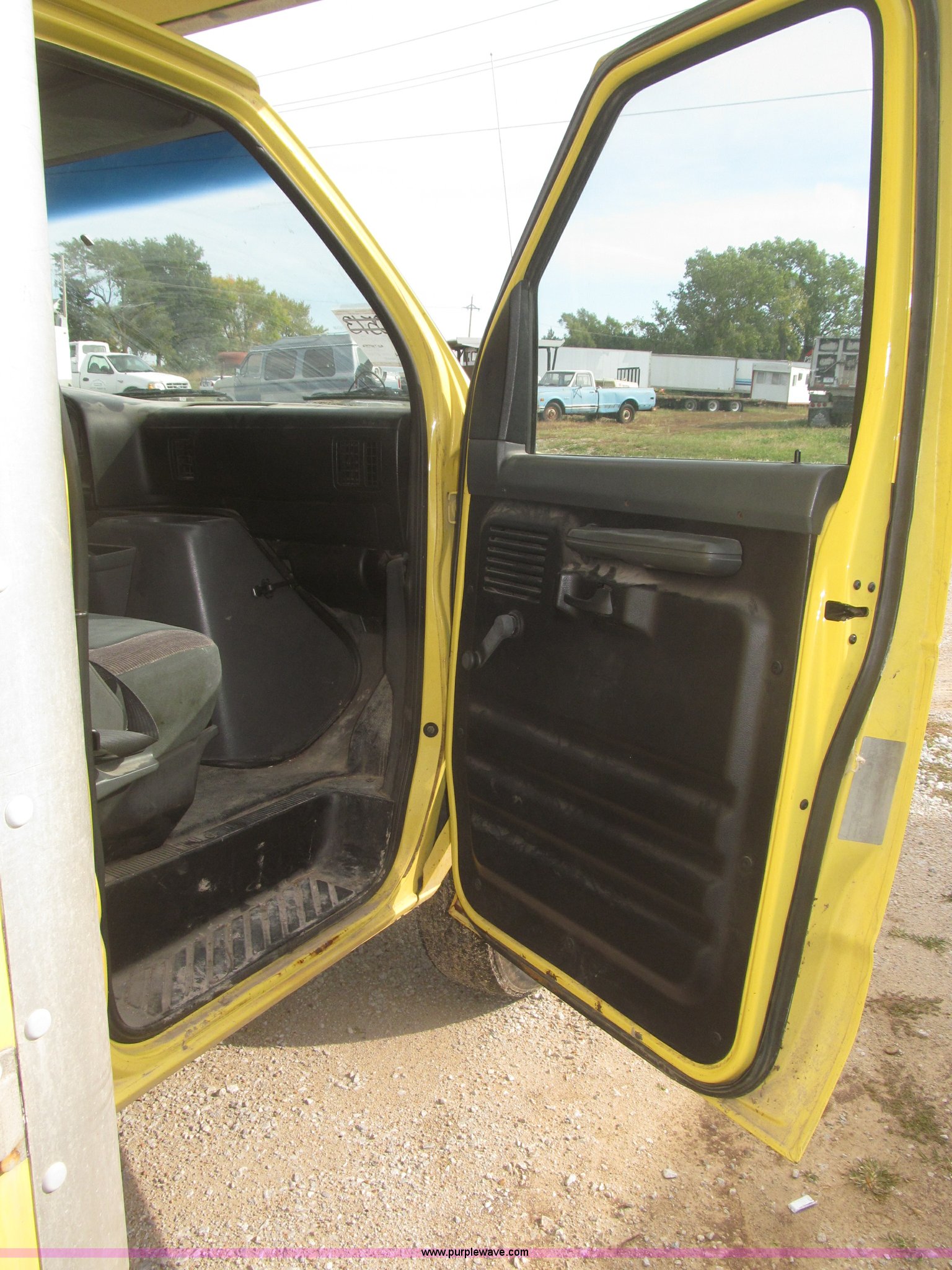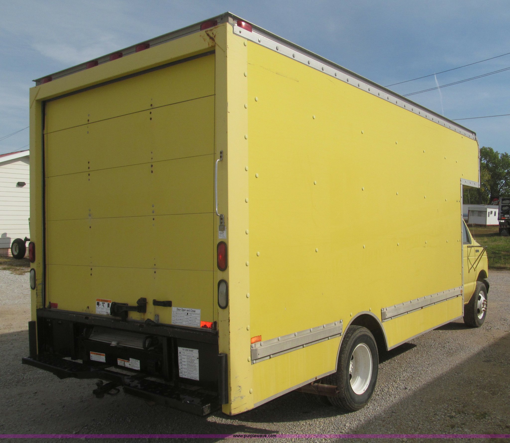 Purple Wave is selling a used Box Truck in Nebraska. This item is a 1995 Ford Econoline E350 box truck with the following: 179,318 miles on odometer, 7.5L V8 OHV 16V gas engine, Automatic transmission, AC and heat, AM/FM, Cloth interior, 14' box, Step up rear bumper, 2" ball hitch, Pull out aluminum loading ramp, 138"L O.D. x 27.5" I.D.,, Cab access sliding door to rear compartment, Doghouse console, 14'4"L x 88"W x 79 1/4"H I.D. box, 40'L x 88"W x 29 1/4"H I.D. front shelf, Interior lighting container roof, Side wall slats, 8" rear perforated step bumper, 22"H from ground, 176" wheelbase, LT225/75R16 tires, GVWR 11,000 lbs, Interior/exterior cosmetic damage, Right exterior rear view mirror broken off, Roof leak front left corner box