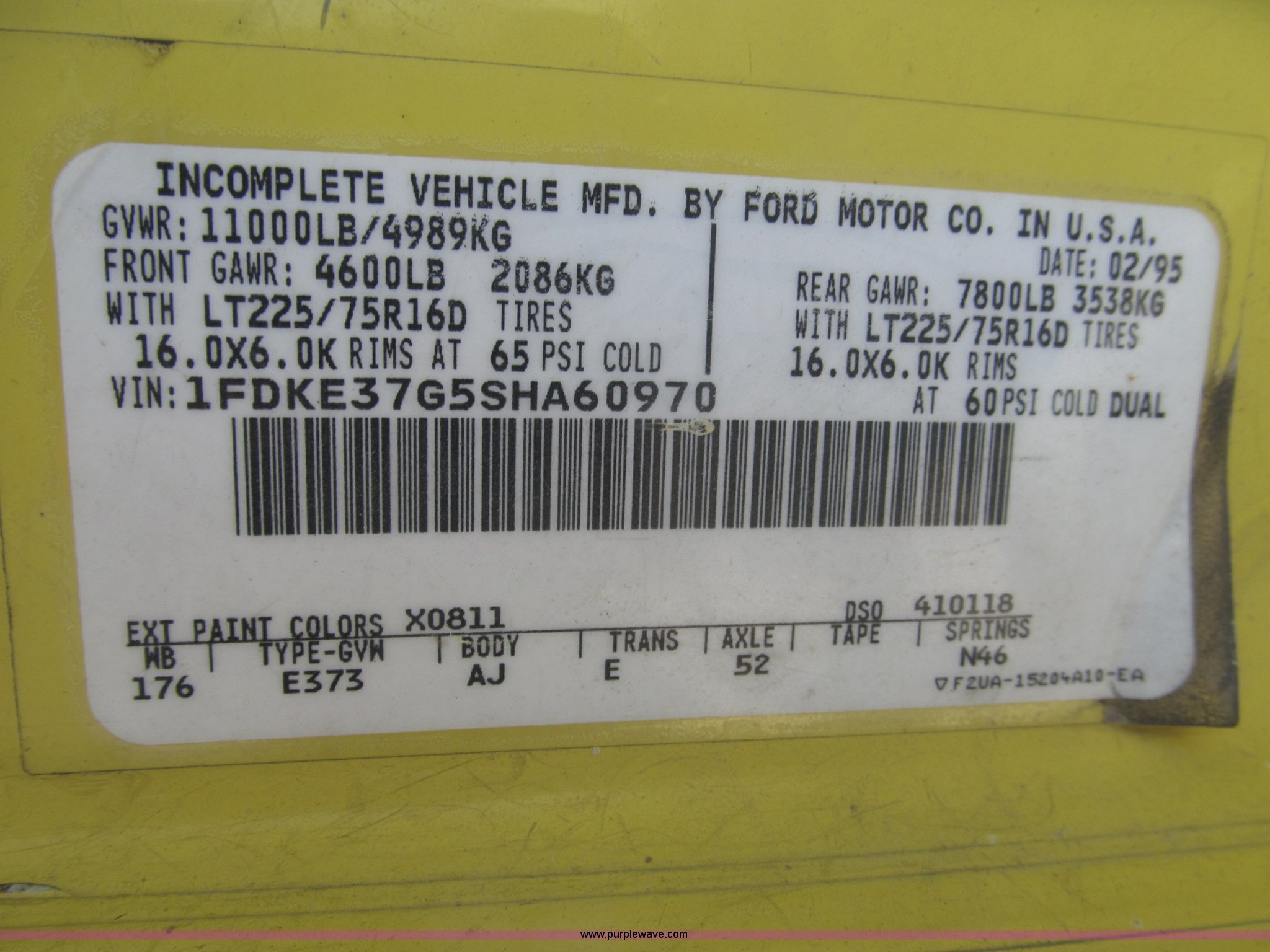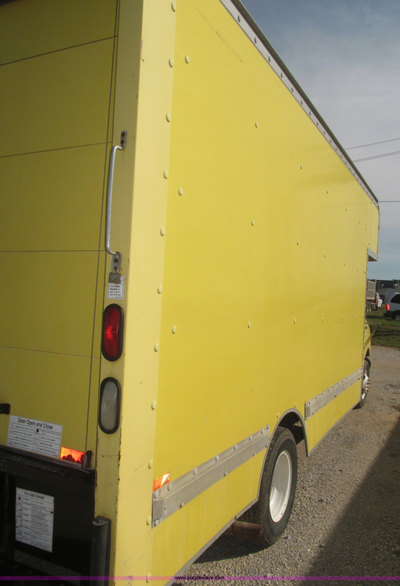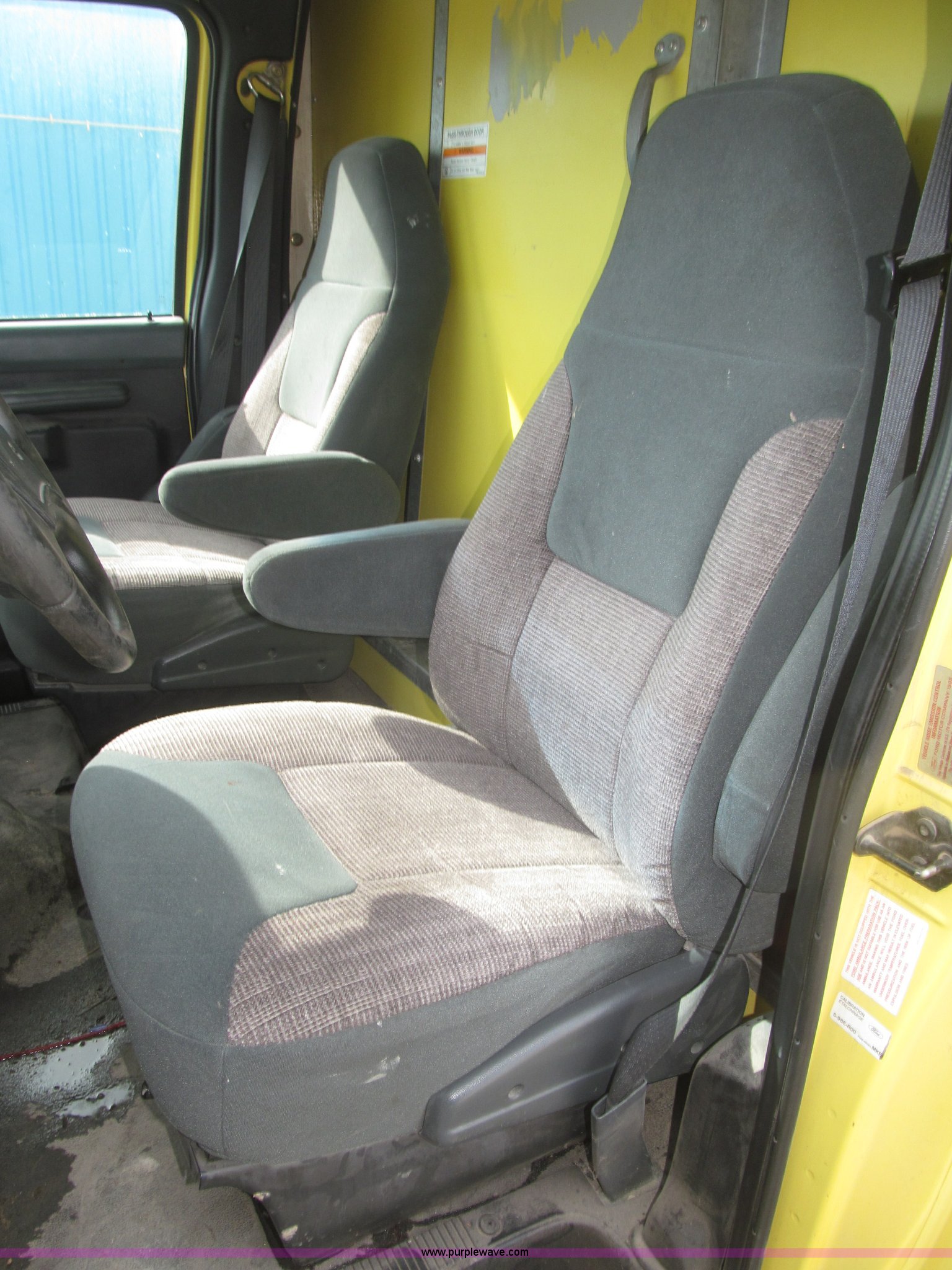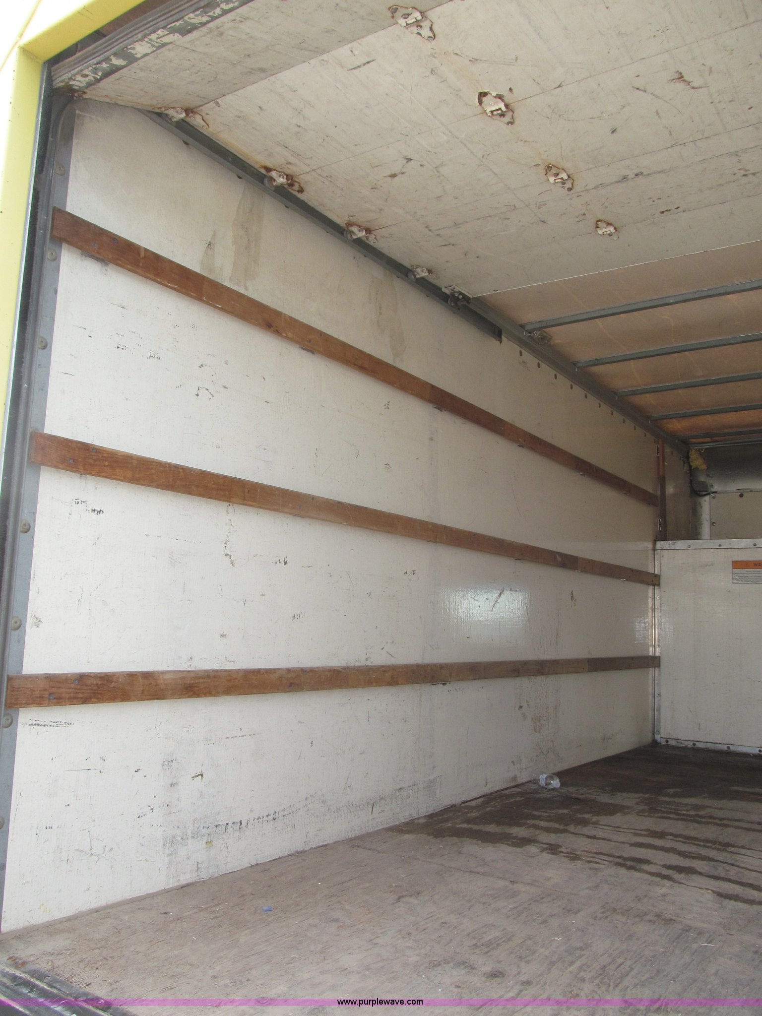 Purple Wave is selling a used Box Truck in Nebraska. This item is a 1995 Ford Econoline E350 box truck with the following: 179,318 miles on odometer, 7.5L V8 OHV 16V gas engine, Automatic transmission, AC and heat, AM/FM, Cloth interior, 14' box, Step up rear bumper, 2" ball hitch, Pull out aluminum loading ramp, 138"L O.D. x 27.5" I.D.,, Cab access sliding door to rear compartment, Doghouse console, 14'4"L x 88"W x 79 1/4"H I.D. box, 40'L x 88"W x 29 1/4"H I.D. front shelf, Interior lighting container roof, Side wall slats, 8" rear perforated step bumper, 22"H from ground, 176" wheelbase, LT225/75R16 tires, GVWR 11,000 lbs, Interior/exterior cosmetic damage, Right exterior rear view mirror broken off, Roof leak front left corner box