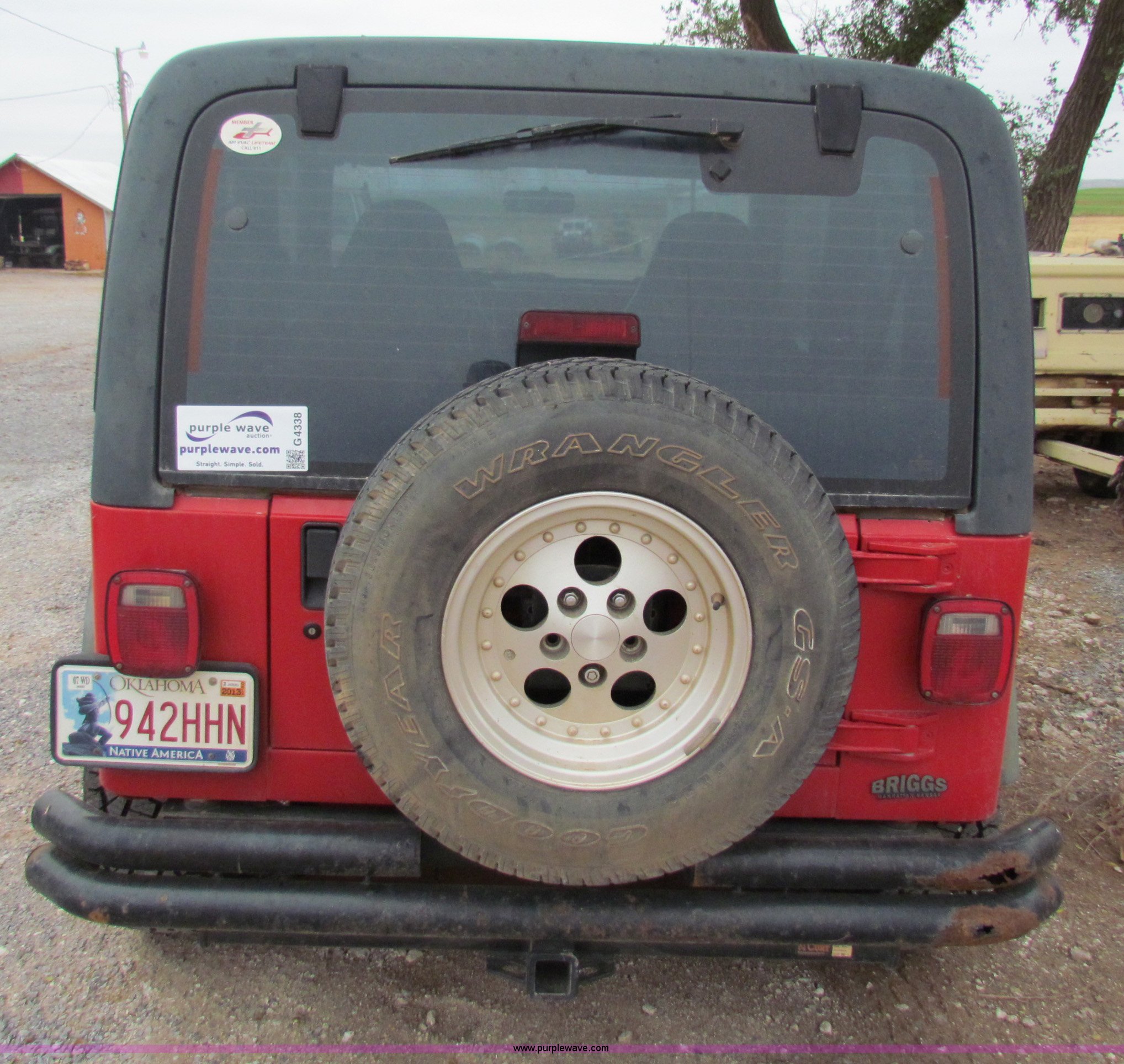 Purple Wave is selling a used Passenger Vehicle in Oklahoma. This item is a 1997 Jeep Wrangler Sport with the following: 125,567 miles on odometer, 4.0L L6 OHV 12V gas engine, Five speed manual transmission, Four wheel drive, AC and heat, AM/FM/CD, Manual windows and locks, Cloth interior, 31 x 10.50 x 15 tires, Interior/exterior cosmetic damage