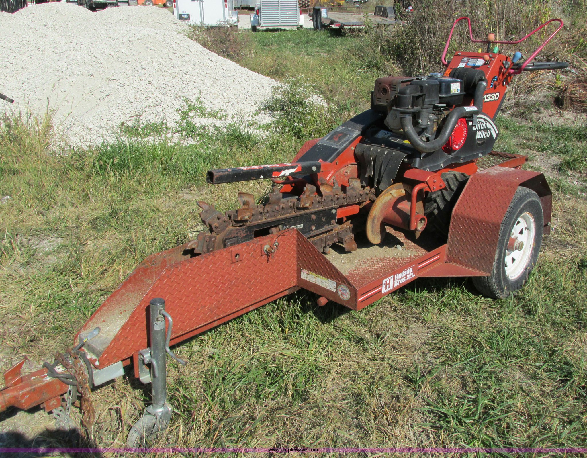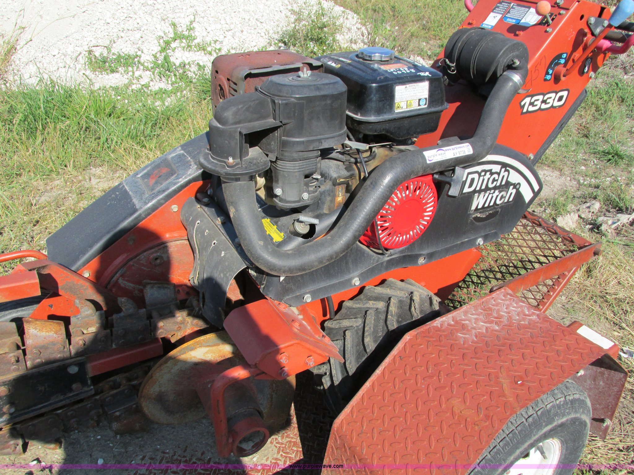 Purple Wave is selling a used Trencher or Rock Saw in Iowa. This item is a 2007 Ditch Witch 1330 trencher with the following: Honda 13 HP gas engine, 6"W x 30" trench depth, 16x6 tires, Serial CMW1330HC70000908