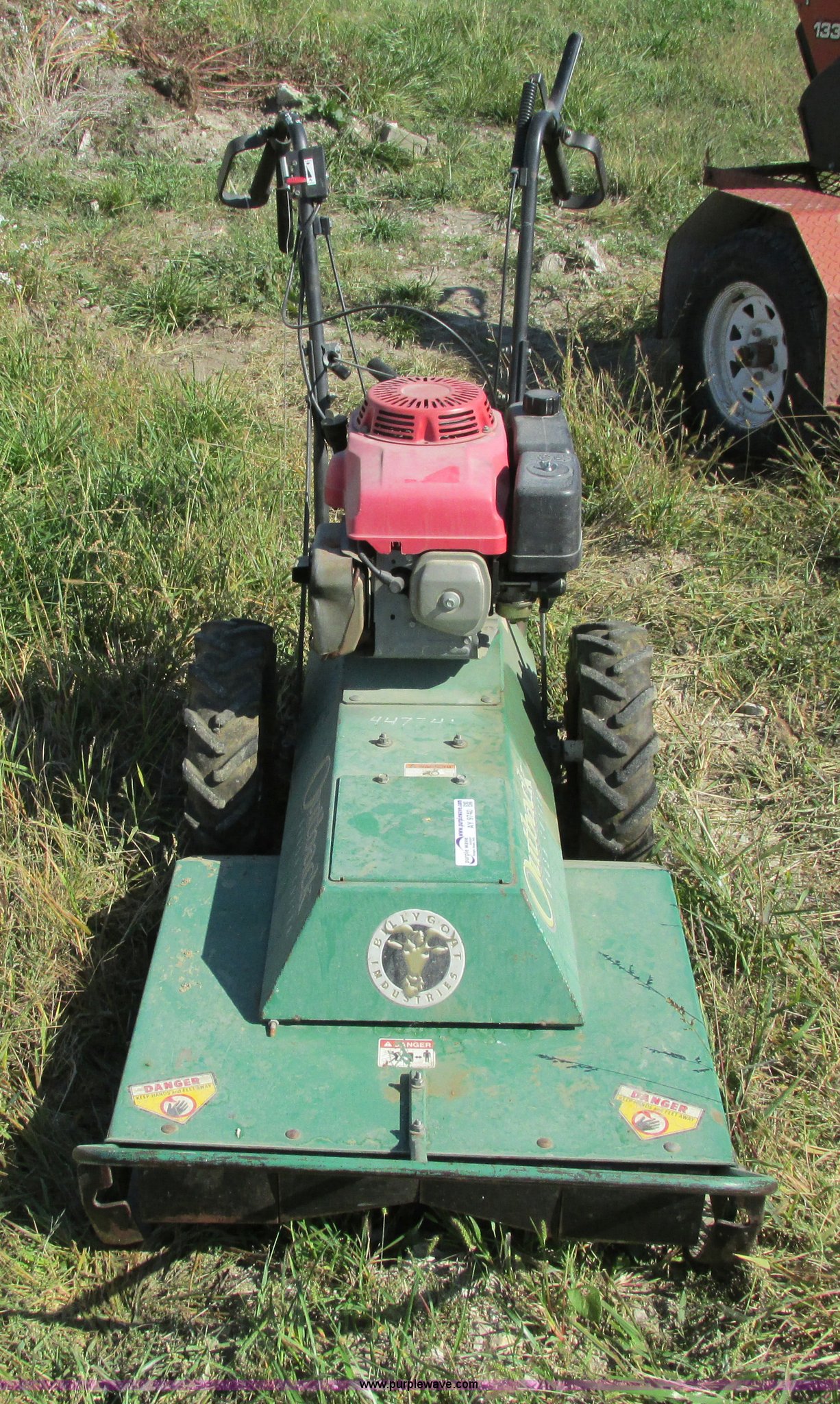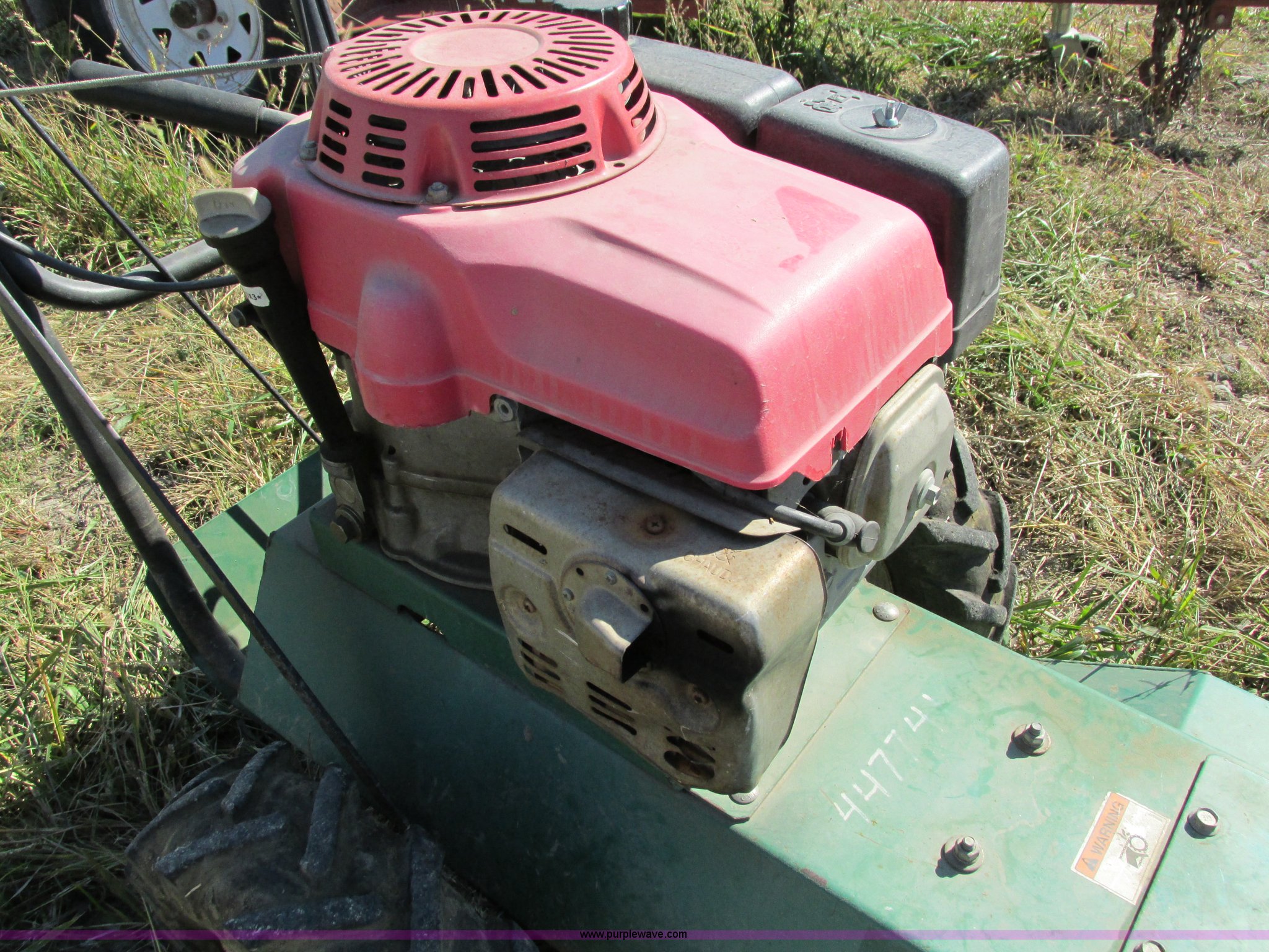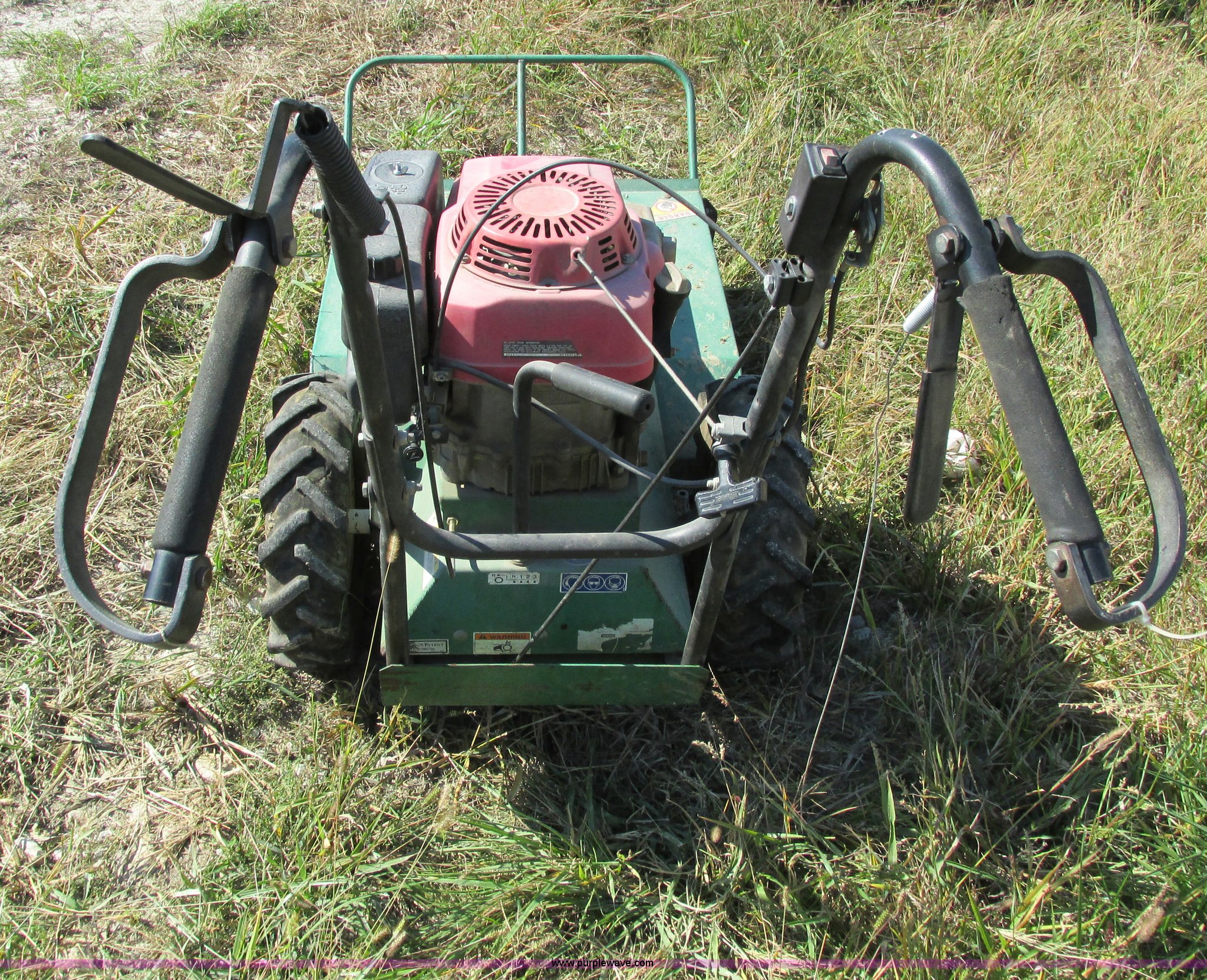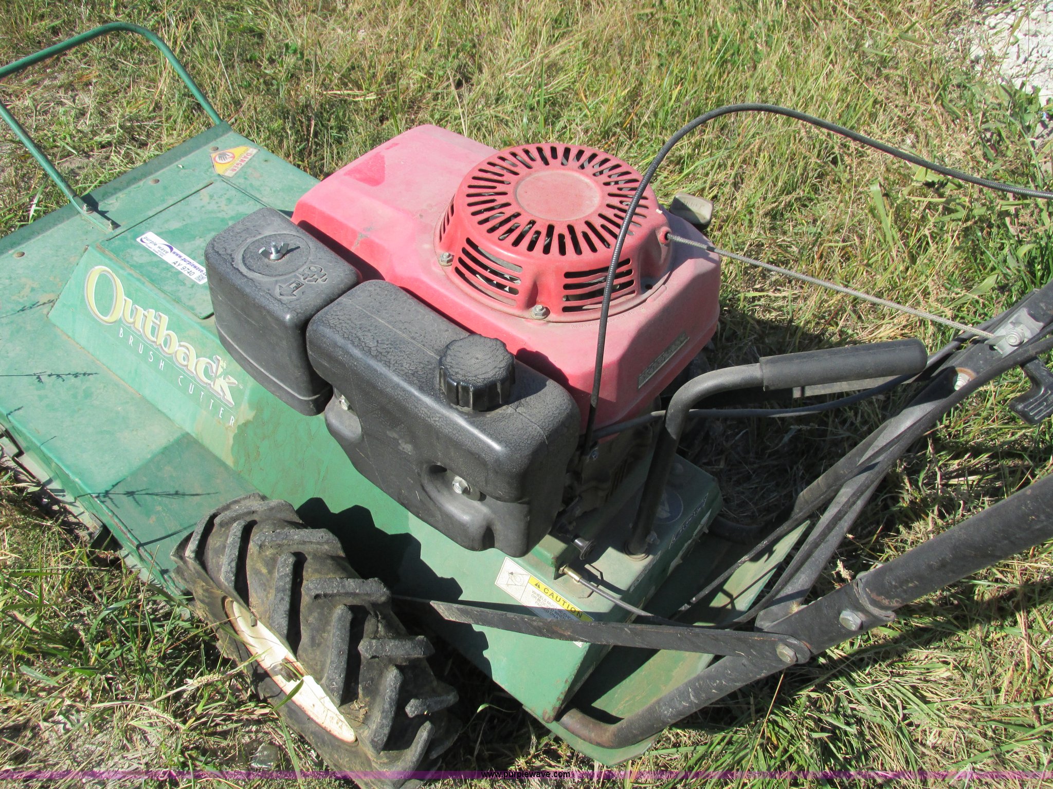 Purple Wave is selling a used Commercial Turf Mower in Iowa. This item is a Outback 24" brush cutter with the following: Honda 13 HP gas engine, Self-propelled, Serial 040202003