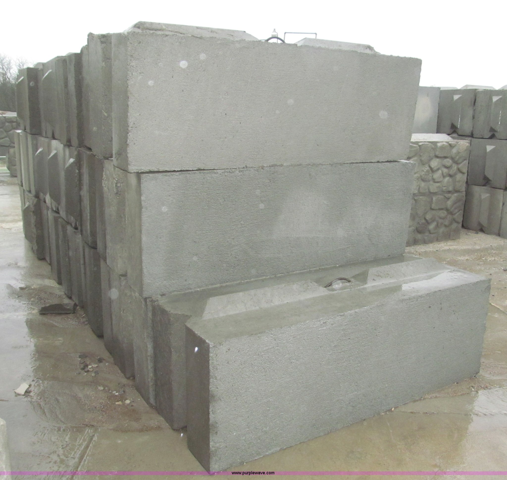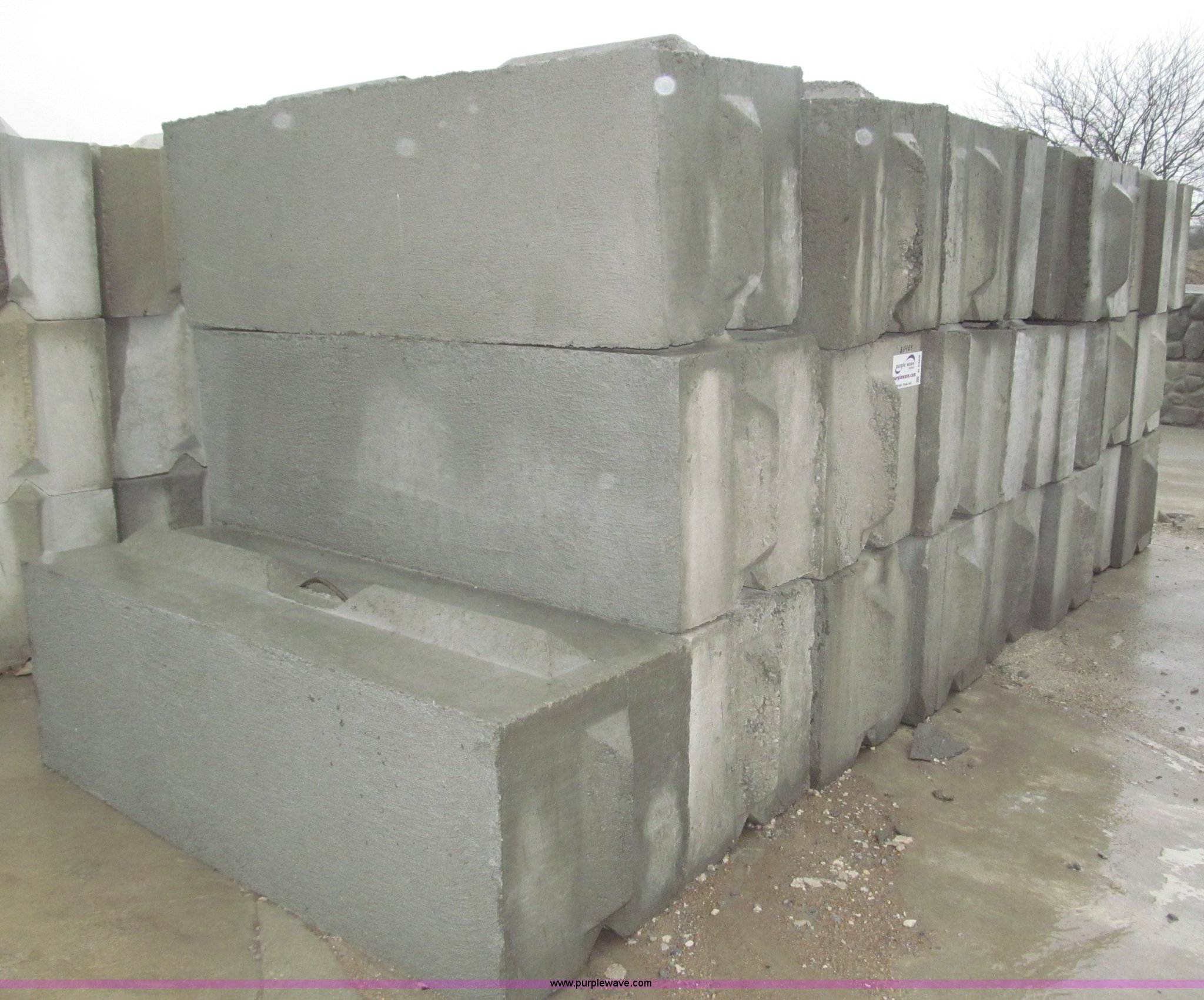 Purple Wave is selling a used Building Materials in Nebraska. This item is a (16) Concrete bunker blocks with the following: 6'L x 2'W x 2'H, Interlocking keyway design, Approximately 3,200 lbs each, Lifting eye, Smooth plain face design