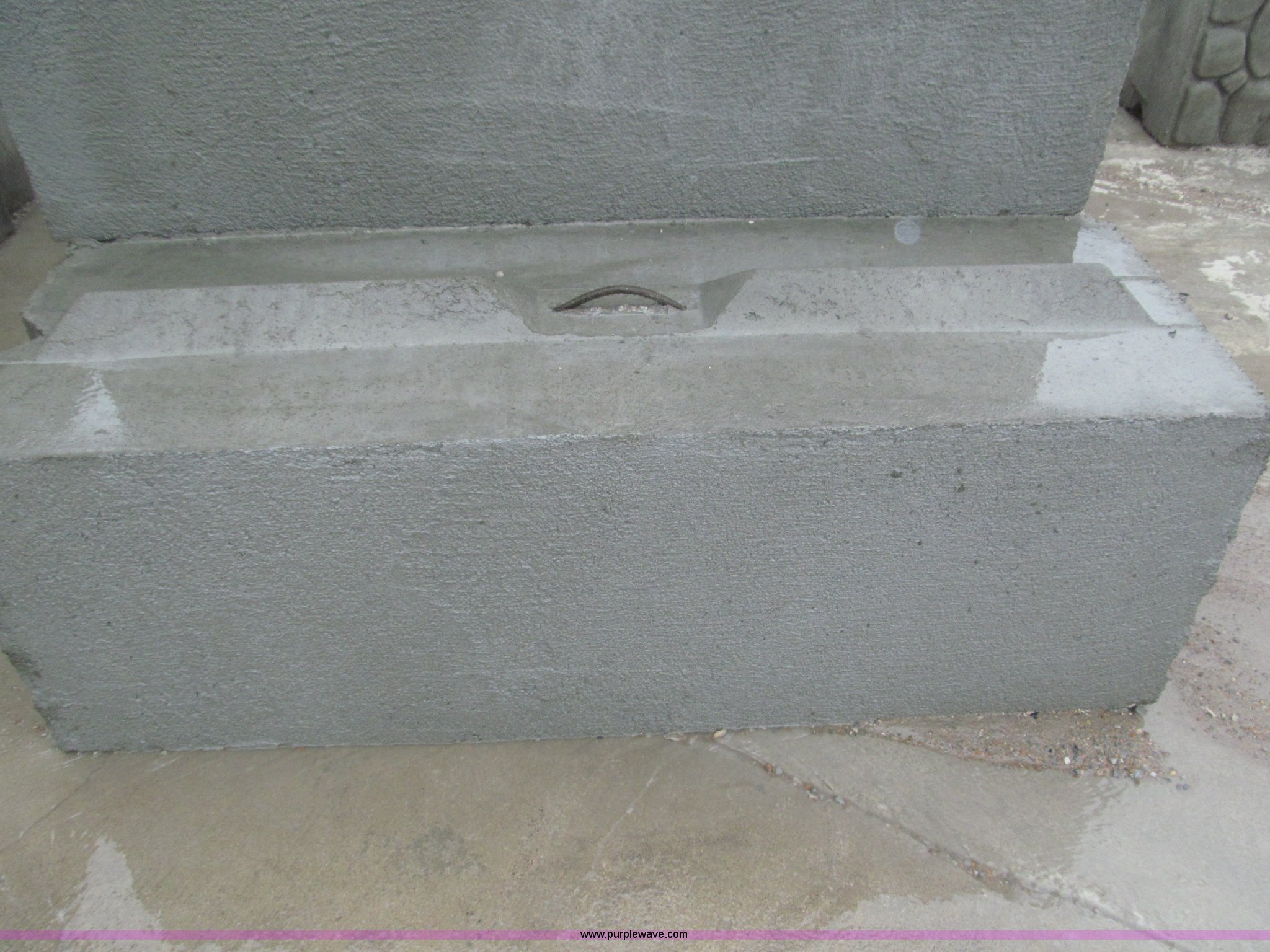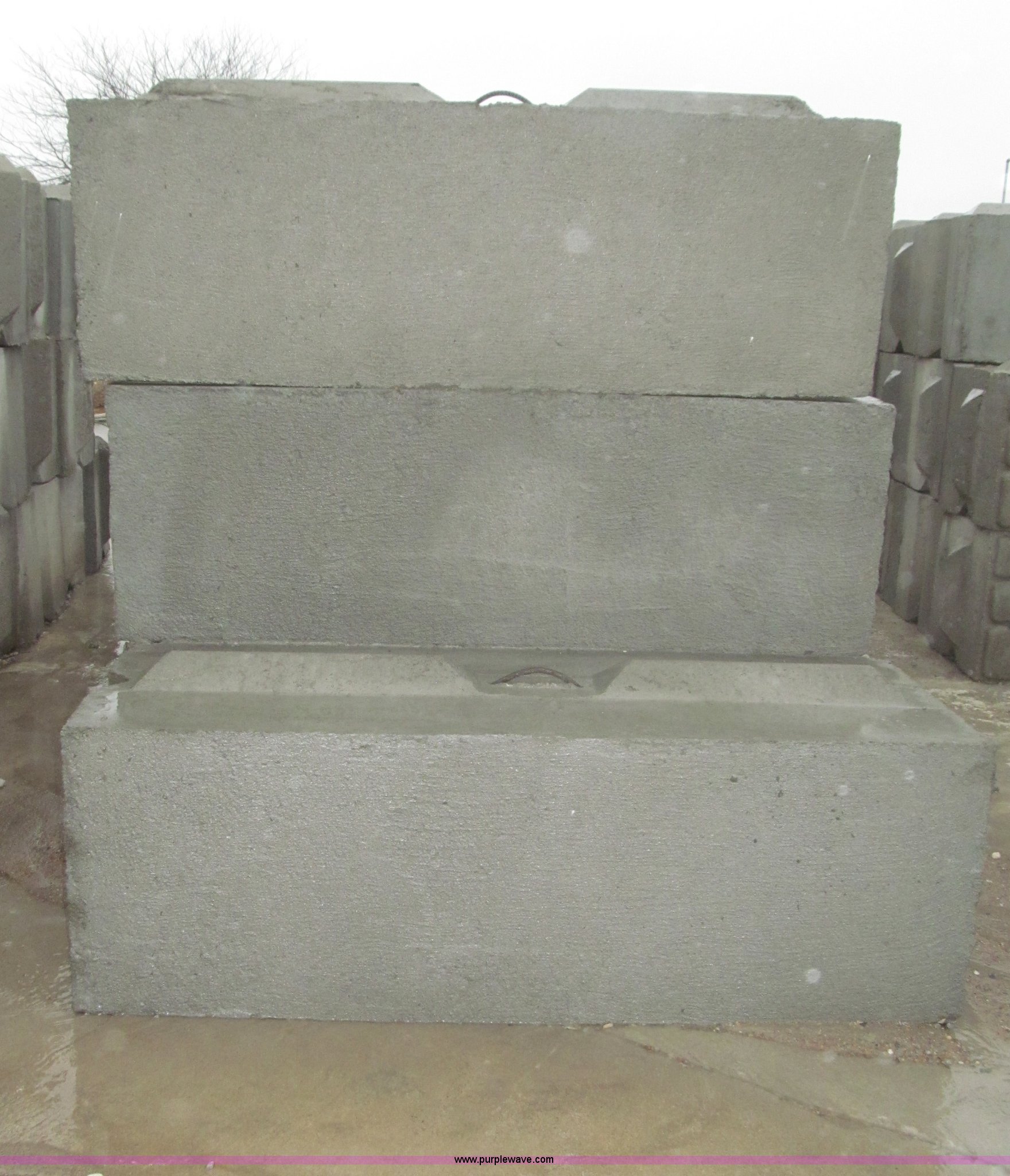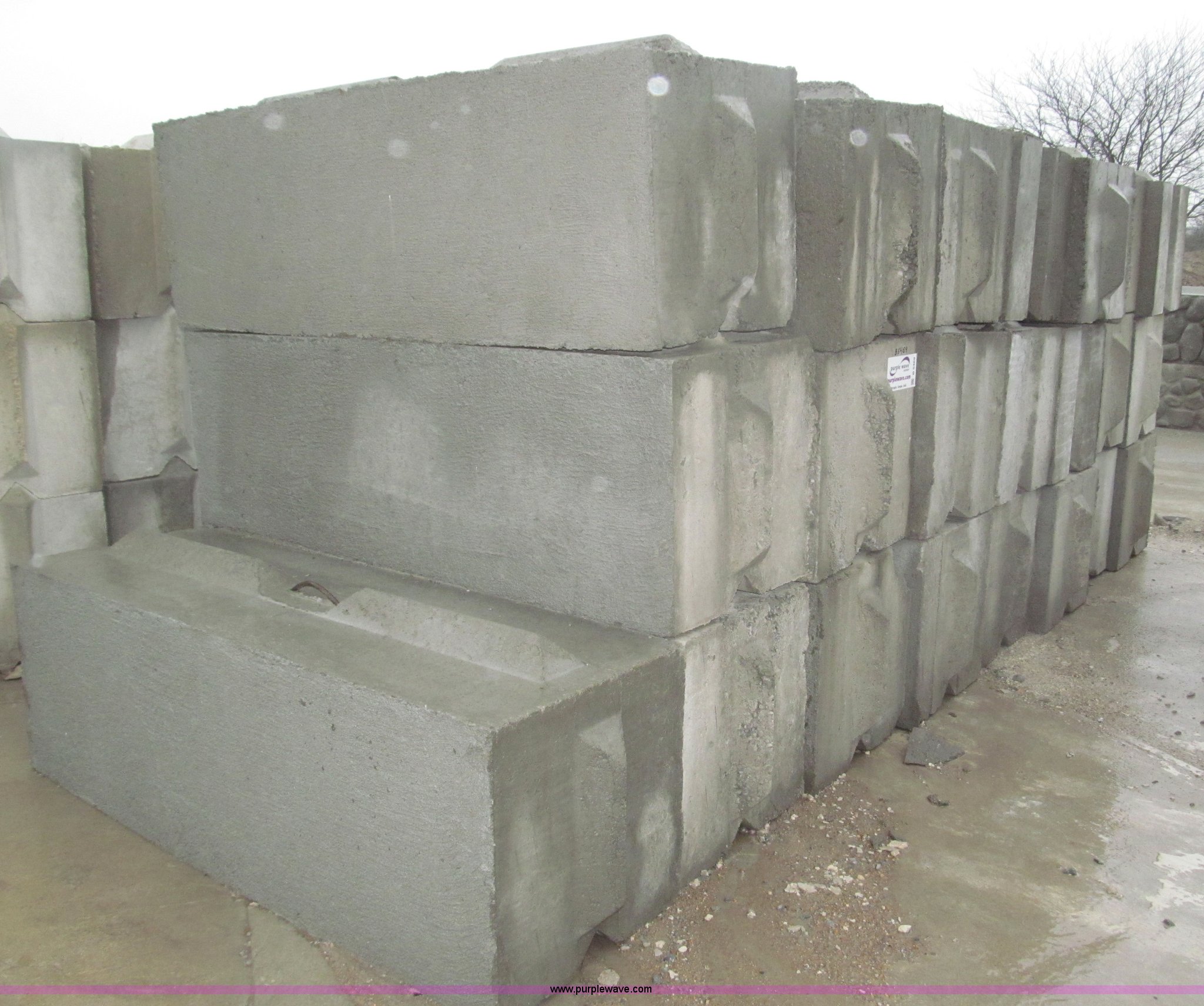 Purple Wave is selling a used Building Materials in Nebraska. This item is a (16) concrete bunker blocks with the following: 6'L x 2'W x 2'H, Interlocking keyway design, Approximately 3,200 lbs each, Lifting eye, Smooth plain style face