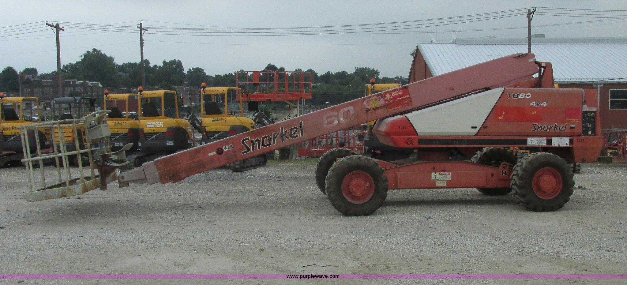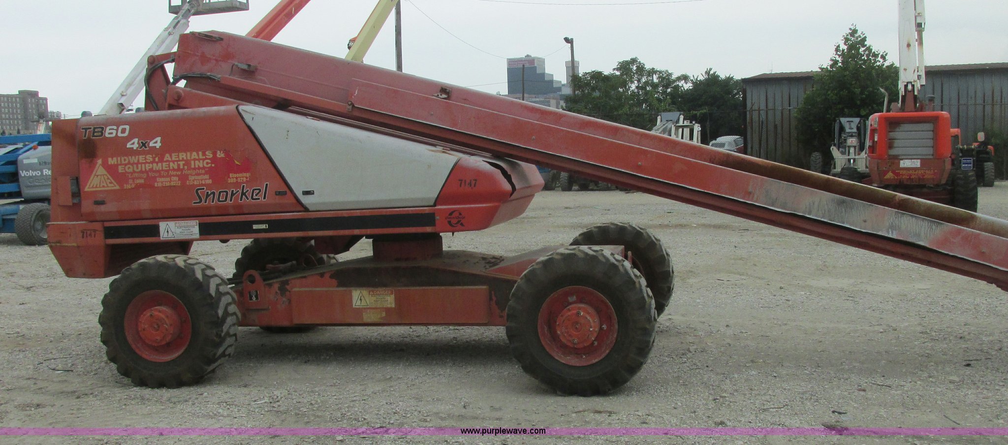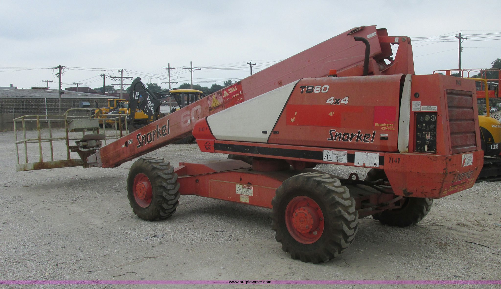 2001 Snorkel TB60 boom lift has sold in Omaha, Nebraska for $6270. Item E7338 sold on November 21st, 2013.