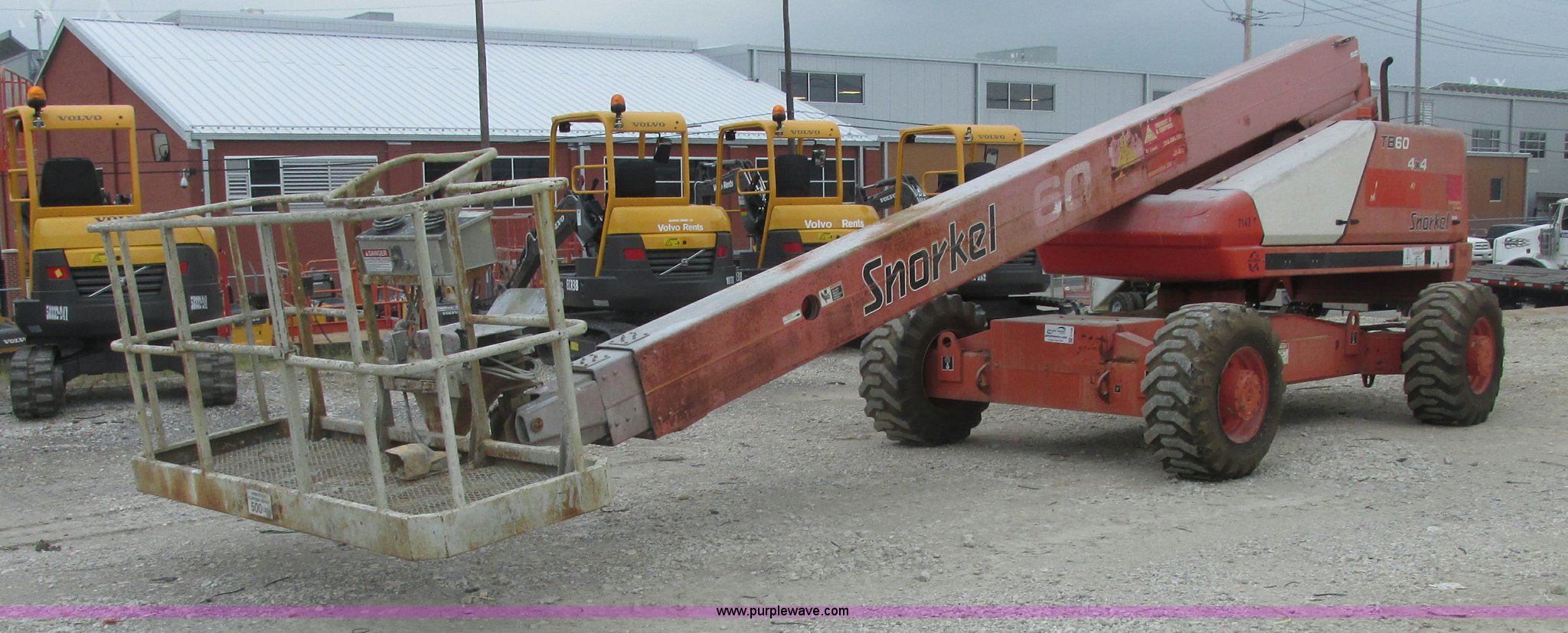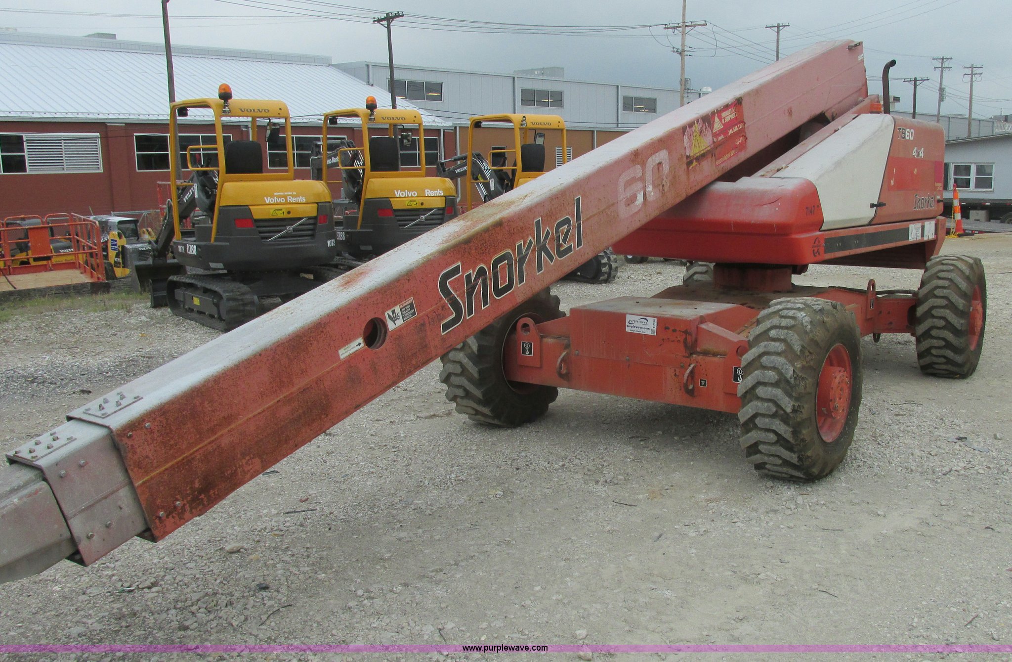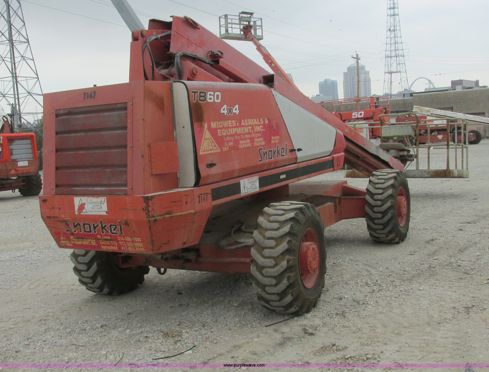 2001 Snorkel TB60 boom lift has sold in Omaha, Nebraska for $6270. Item E7338 sold on November 21st, 2013.