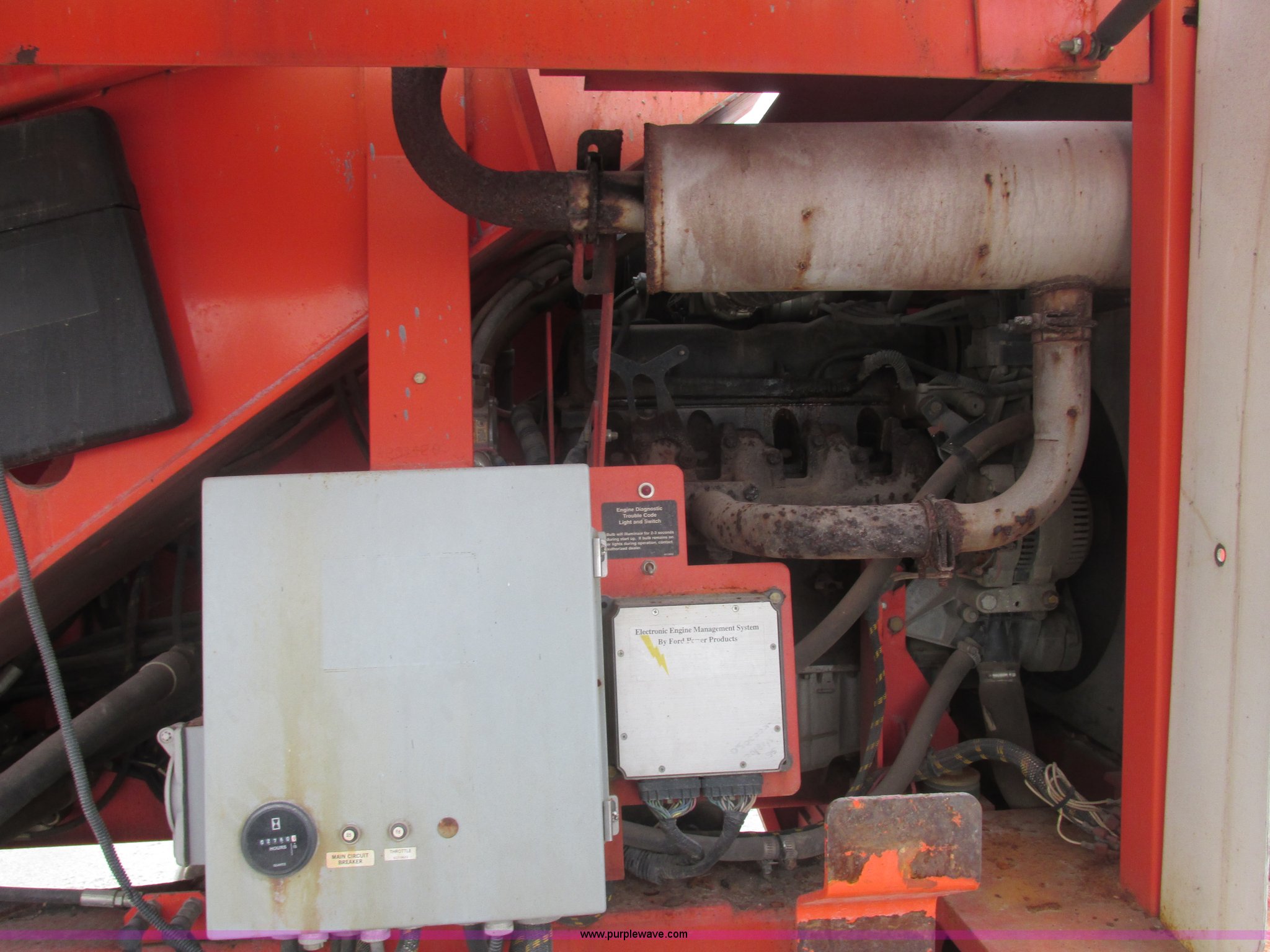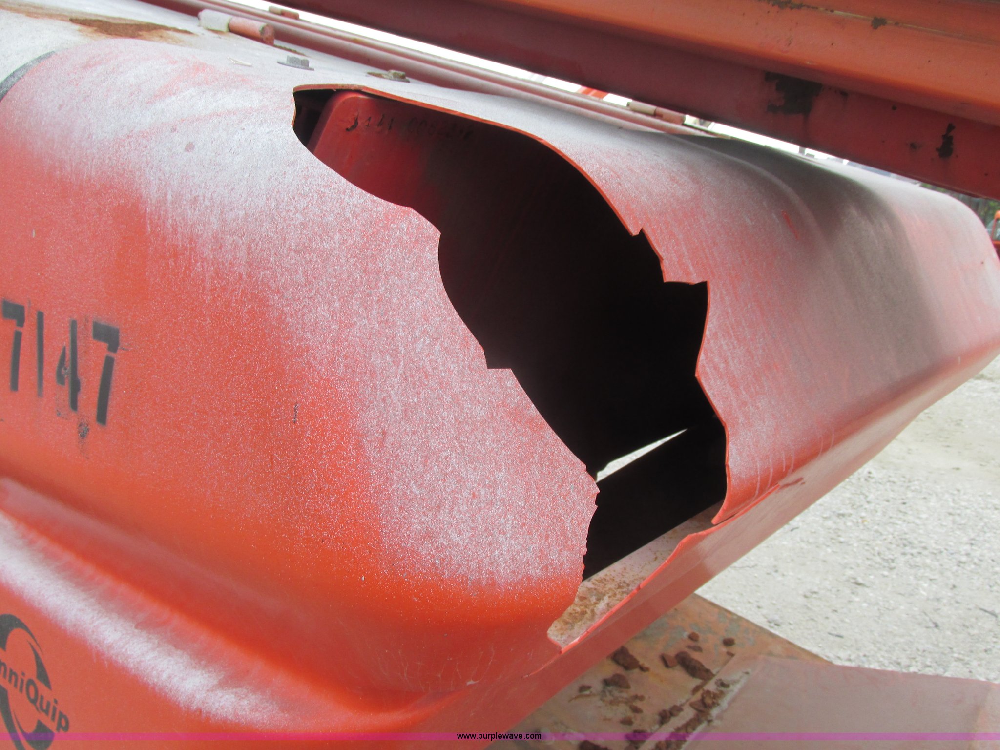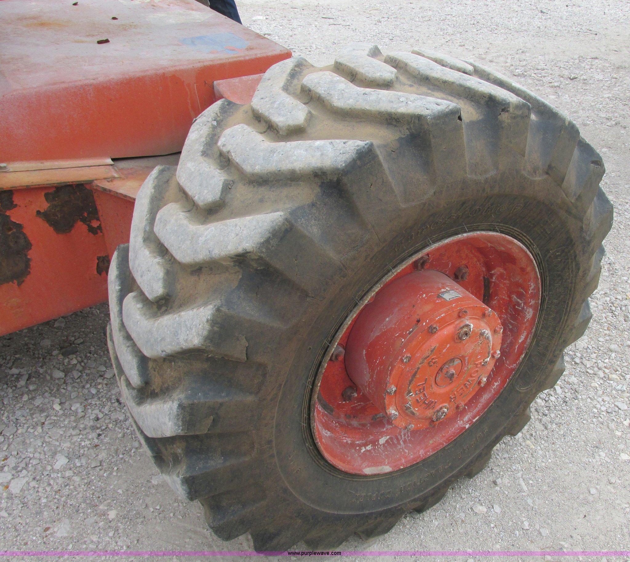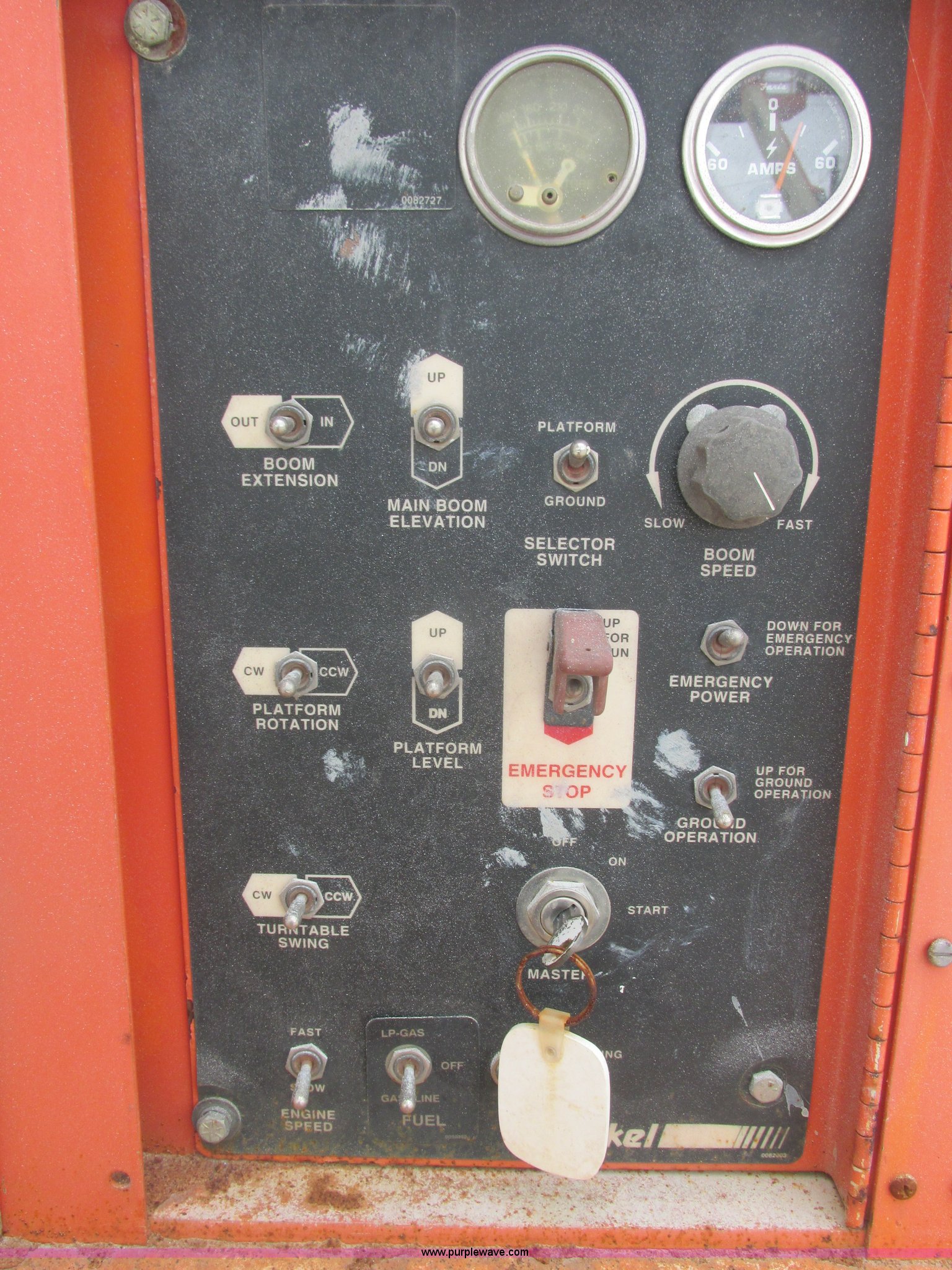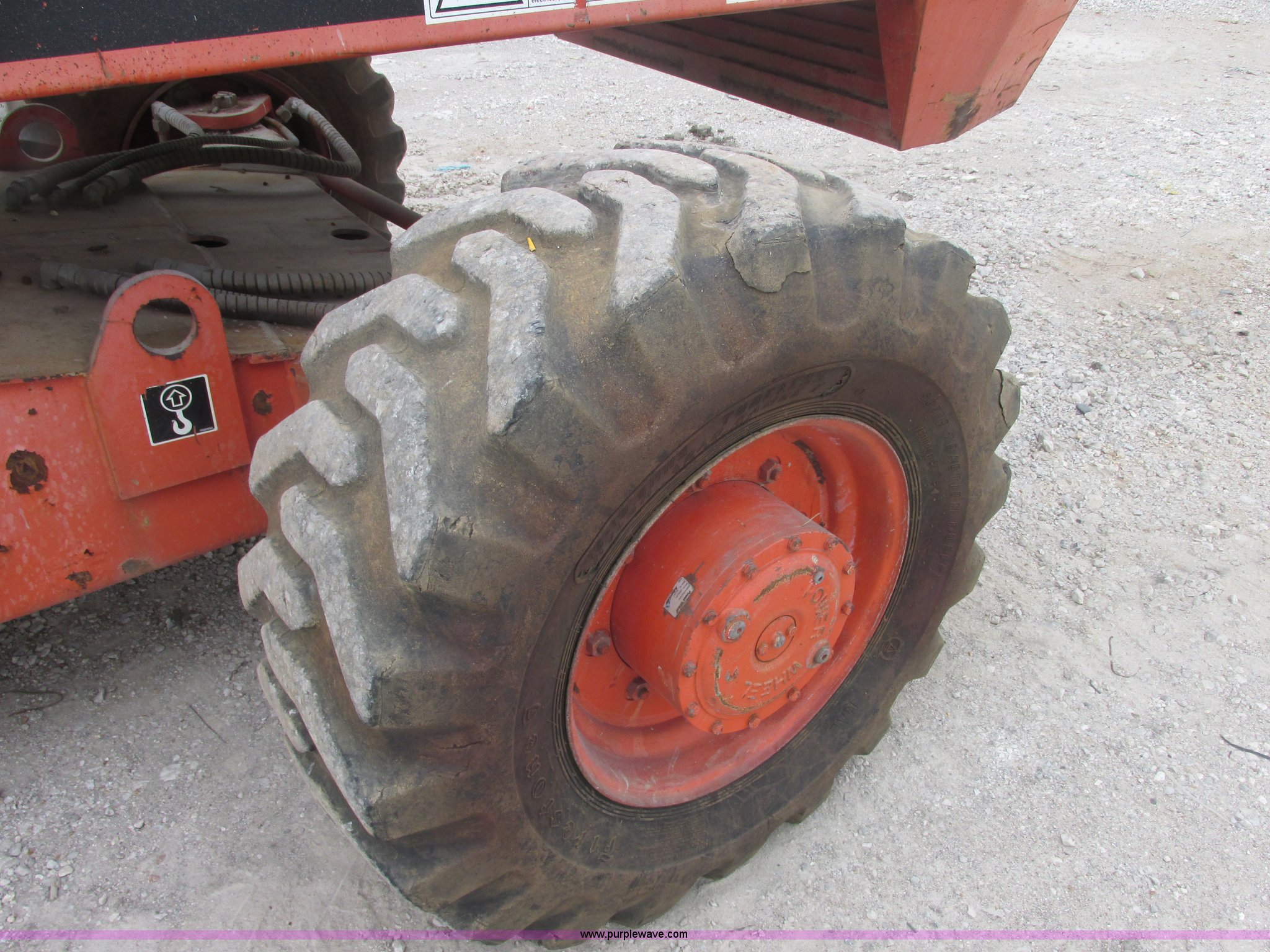 Purple Wave is selling a used Boom Lift in Nebraska. This item is a 2001 Snorkel TB60 boom lift with the following: 2,762 hours on meter, Ford four cylinder dual fuel gas or LP engine, Serial 90178-1-11-00, Hydrostatic transmission, Four wheel drive, Rotating platform, 8'W platform, 60' max platform height, 49.9' max horizontal reach, 500 lbs lift capacity, (3) boom sections, 30.8'L x 8.2'W x 8.9'H overall, Adjustable boom speed, Ground and platform controls, Ground control main boom elevation and turn table swing inoperable, Strobe light, Tie downs, 40 gallon fuel tank, 15 x 19.5 foam filled tires, 20,699 lbs. base operating weight, Front nose plastic housing cracked, Turntable drive motor gear missing three teeth, Unit# 7147