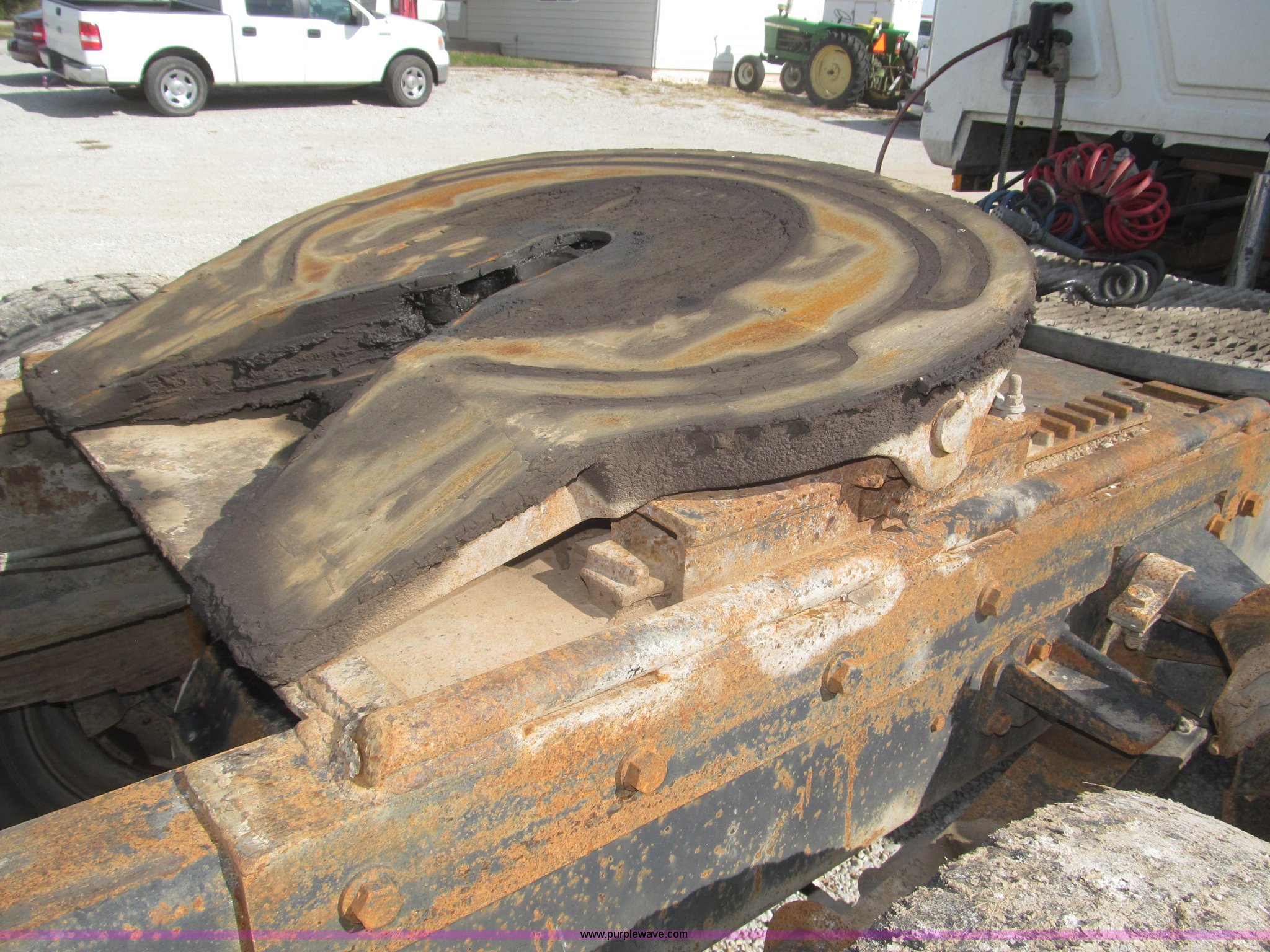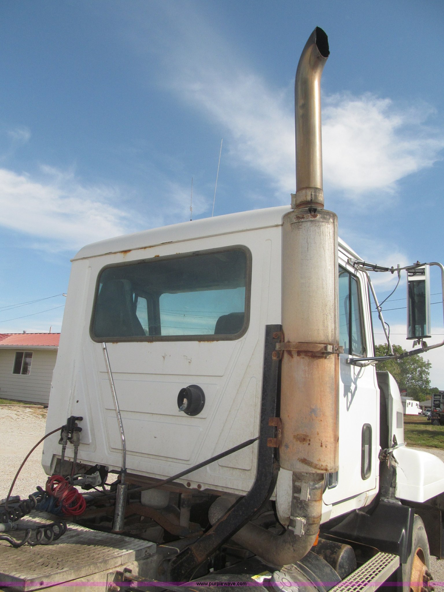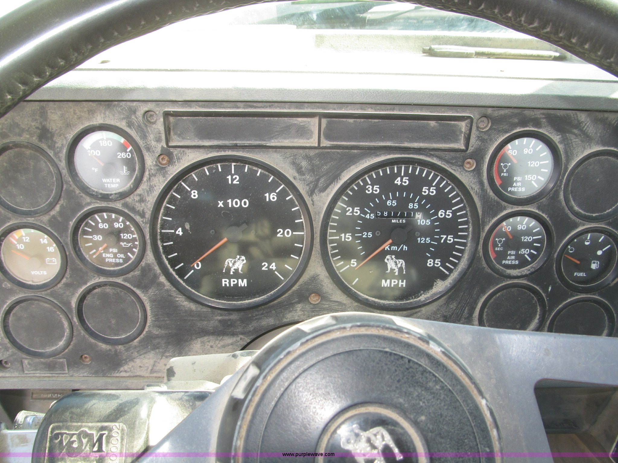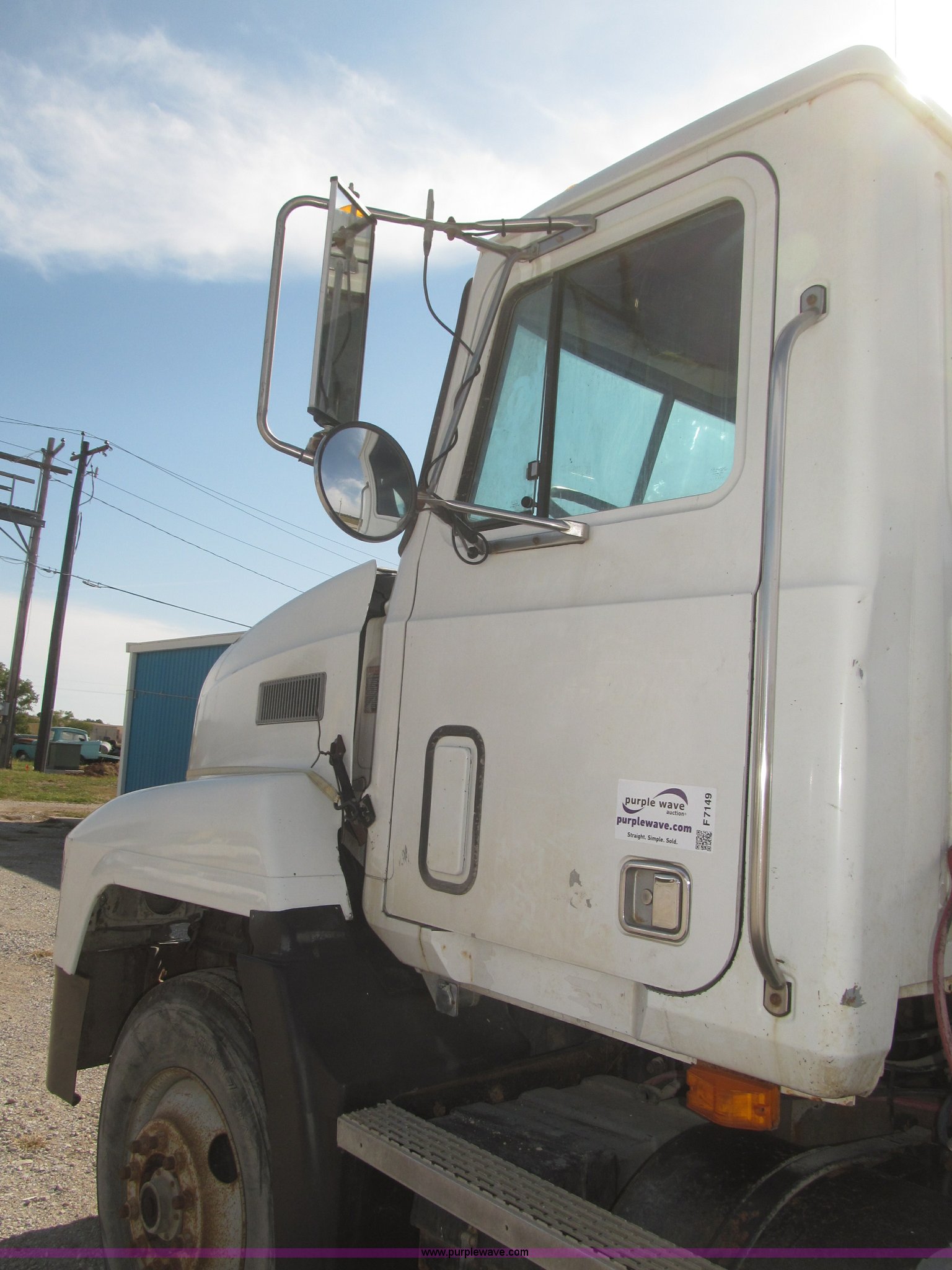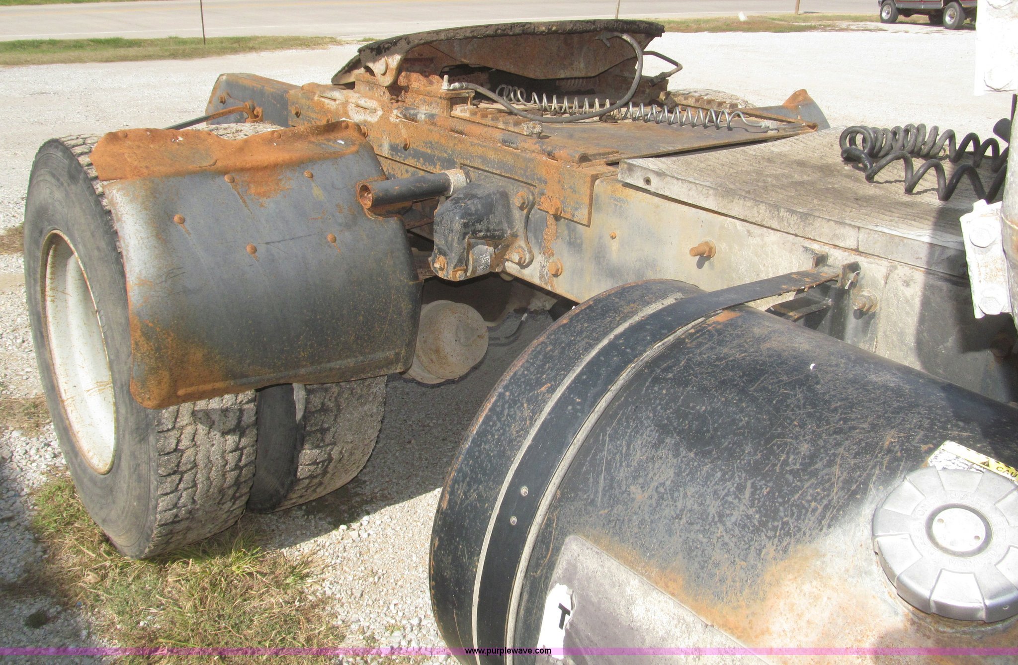 Purple Wave is selling a used Truck Chassis in Nebraska. This item is a 1990 Mack CH612 semi truck with the following: 581,711 miles on odometer, Mack E6 11.0L L6 turbo diesel engine, Serial 061724, Maxitorqe T2050 five speed manual transmission, AC and heat, Panasonic AM/FM/cassette, Dual air suspension seats, Air ride cab, Heated mirrors, Passenger daylight door, 14 gauge instrument panel, Kenwood CB radio, Block heater, Powered fifth wheel slide, D-ring tow hooks, Passenger side air tanks, Steel quarter fenders, Damaged, Steel deck plate, Roof mounted clearance lights, Roof mounted horn, Fire extinguisher, Highway safety triangles, Spring suspension, Air brakes, 145" wheelbase, 11R22.5 tires, Grill replacement behind set, Hood strapped on, Rear exterior cab work light broken, Driver's side windshield cracked, Steering wheel broken, Operable, Driver's seat torn
