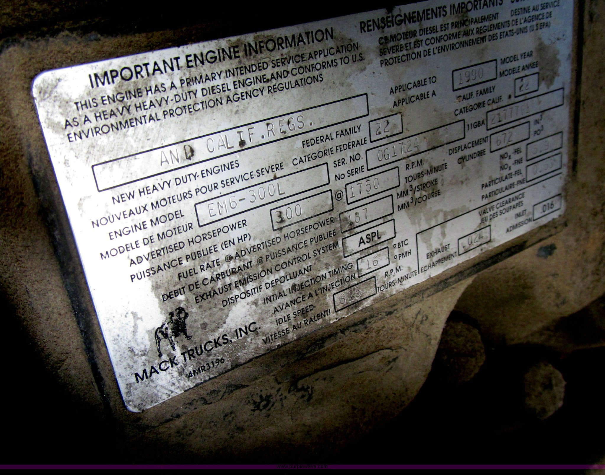- Mack E6 11.0L L6 turbo diesel engine